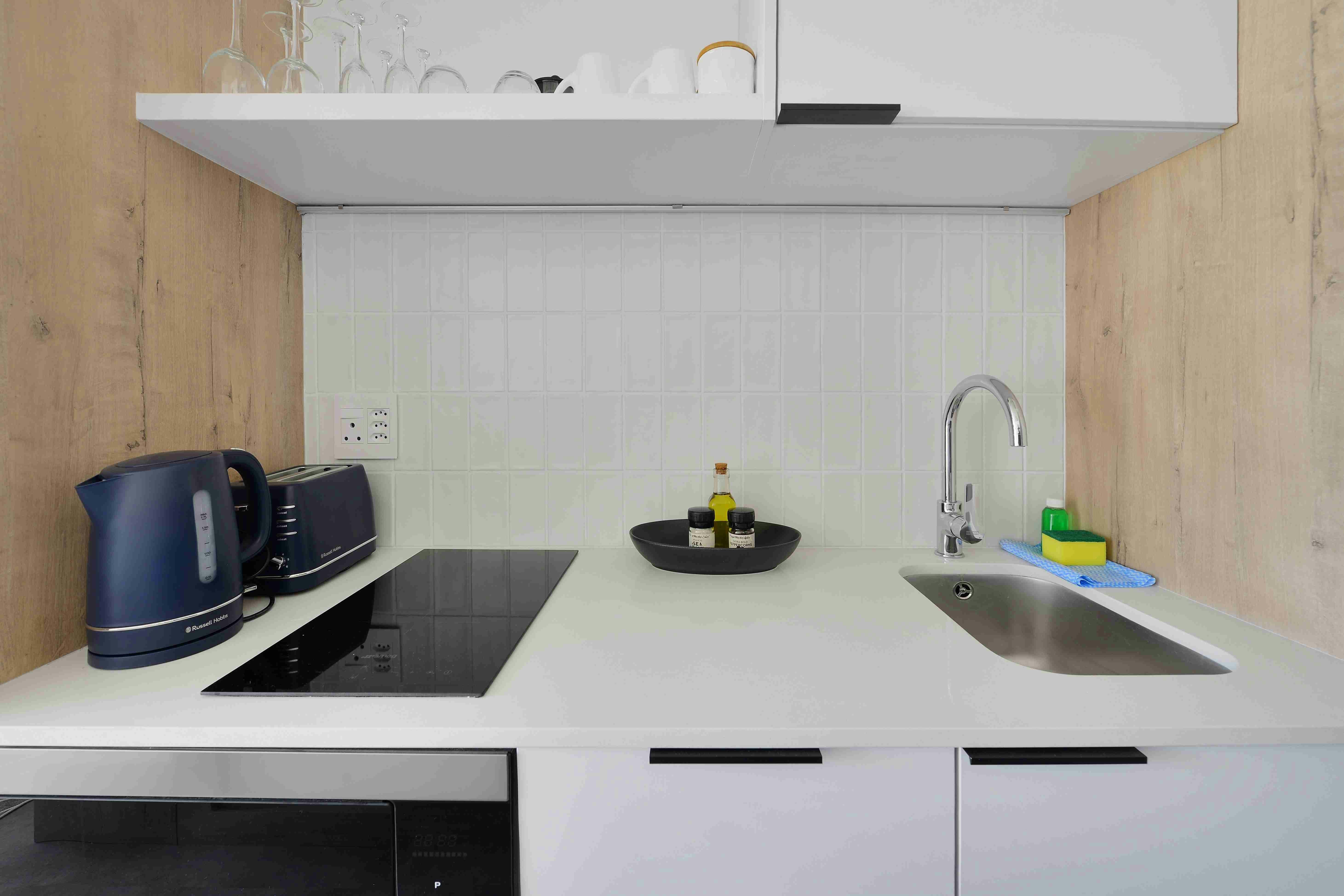 The unit includes a modern kitchen equipped with a fridge-freezer, 2-plate stove, microwave, cutlery, and crockery, as well as tea- and coffee-making facilities. Adjacent to the kitchen, the lounge offers a comfortable couch, and a wall-mounted smart TV with streaming services. Complimentary Wi-Fi is also available.