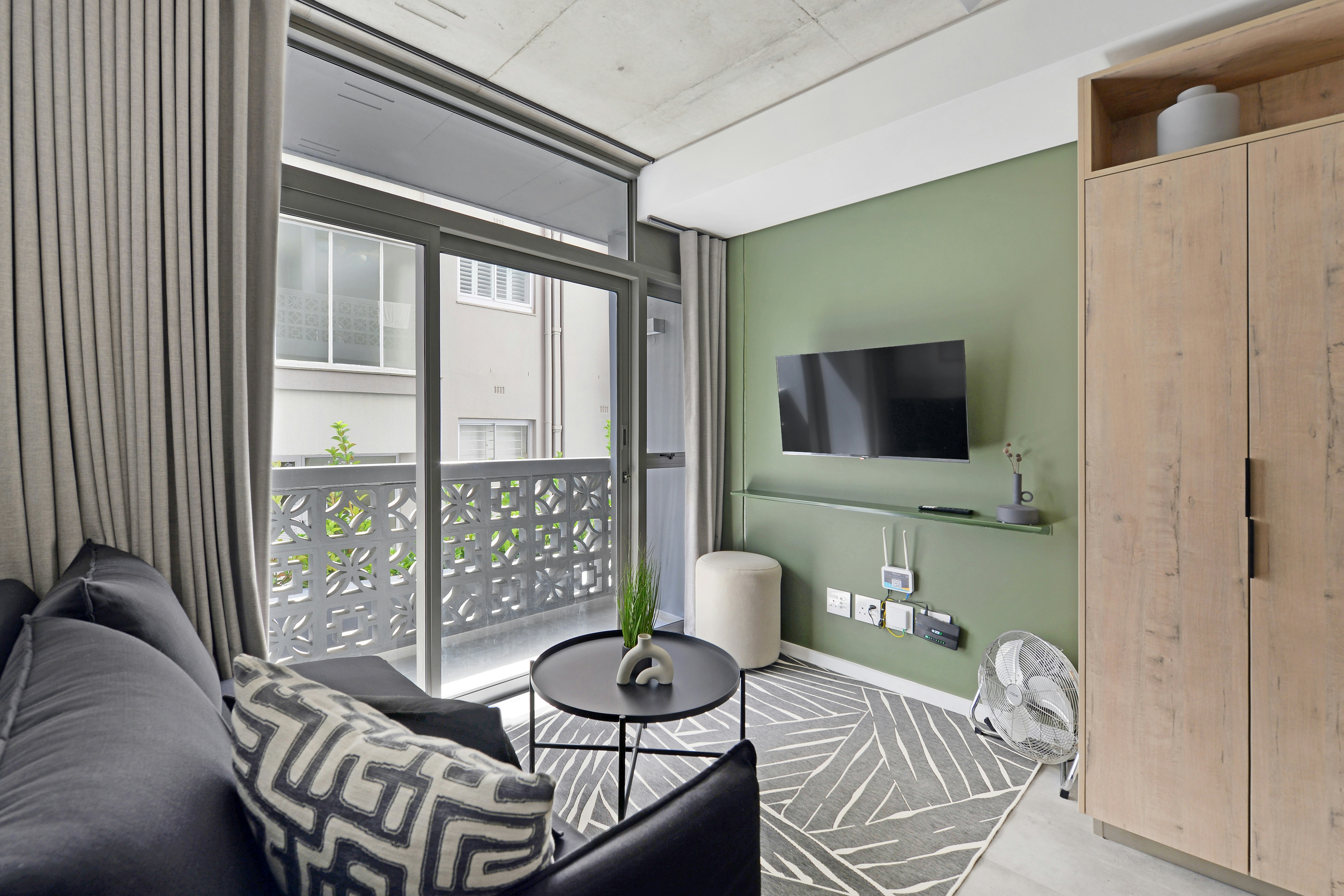 Guests have access to a communal rooftop deck that boasts a swimming pool with panoramic views of Table Mountain and the Atlantic Ocean. Additional on-site facilities include secure paid parking, a gym, communal lounges, shared working spaces, private boardrooms, and self-service laundry facilities. The popular promenade is within close reach and is ideal for walking, jogging, or enjoying the sunset over the ocean.