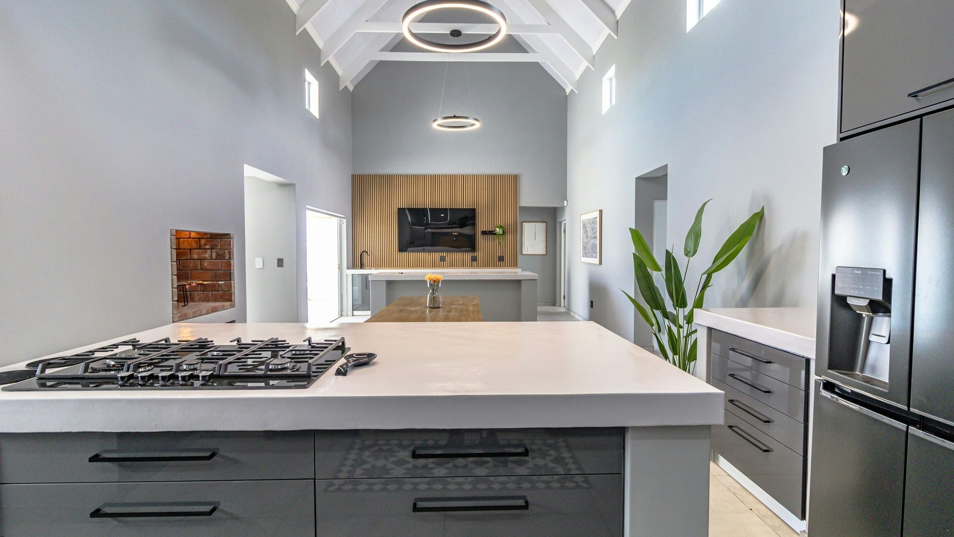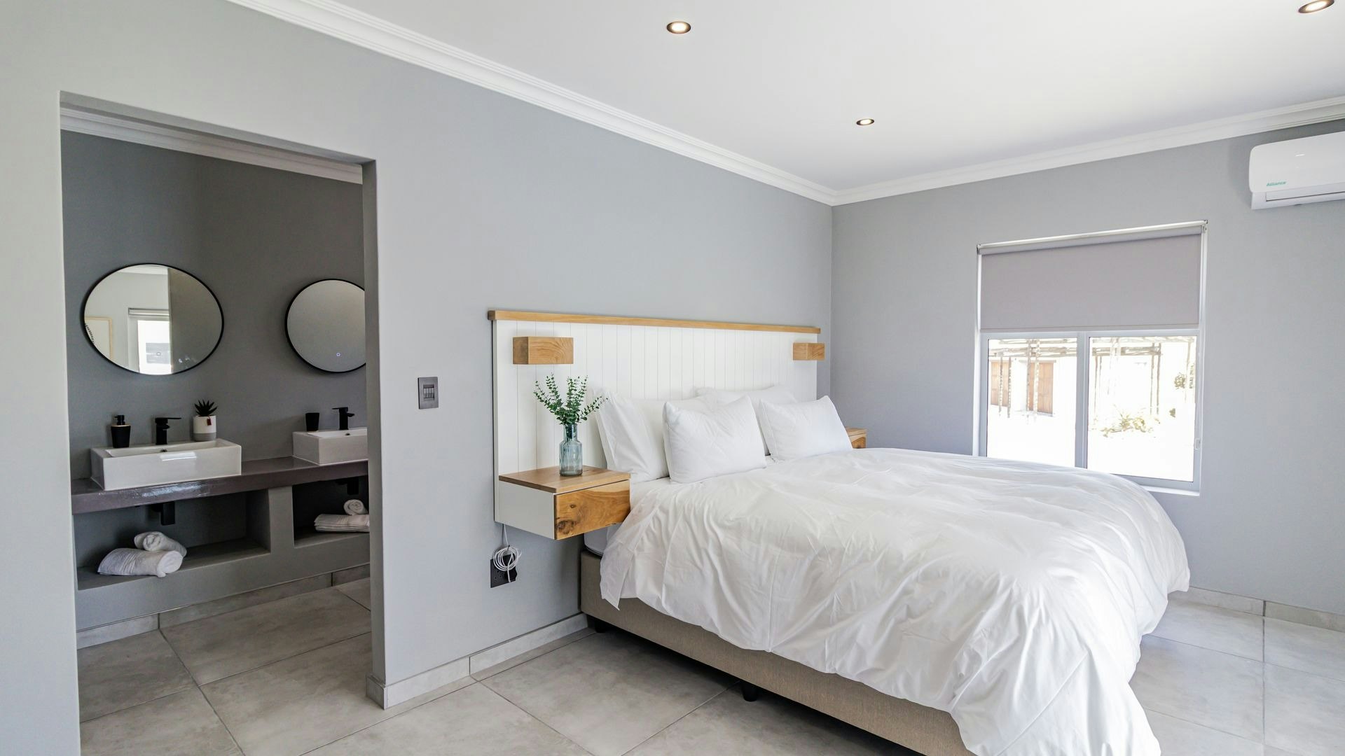 The open-plan kitchen is equipped with a fridge-freezer, gas hob, oven, air fryer, microwave, cutlery, crockery, and tea- and coffee-making facilities, and features a dishwasher and washing machine for guests’ convenience. It extends to the dining area with an indoor braai and a TV, perfect for entertaining. The lounge is furnished with comfy seating. Other in-room amenities include air-conditioning in some rooms and complimentary Wi-Fi.