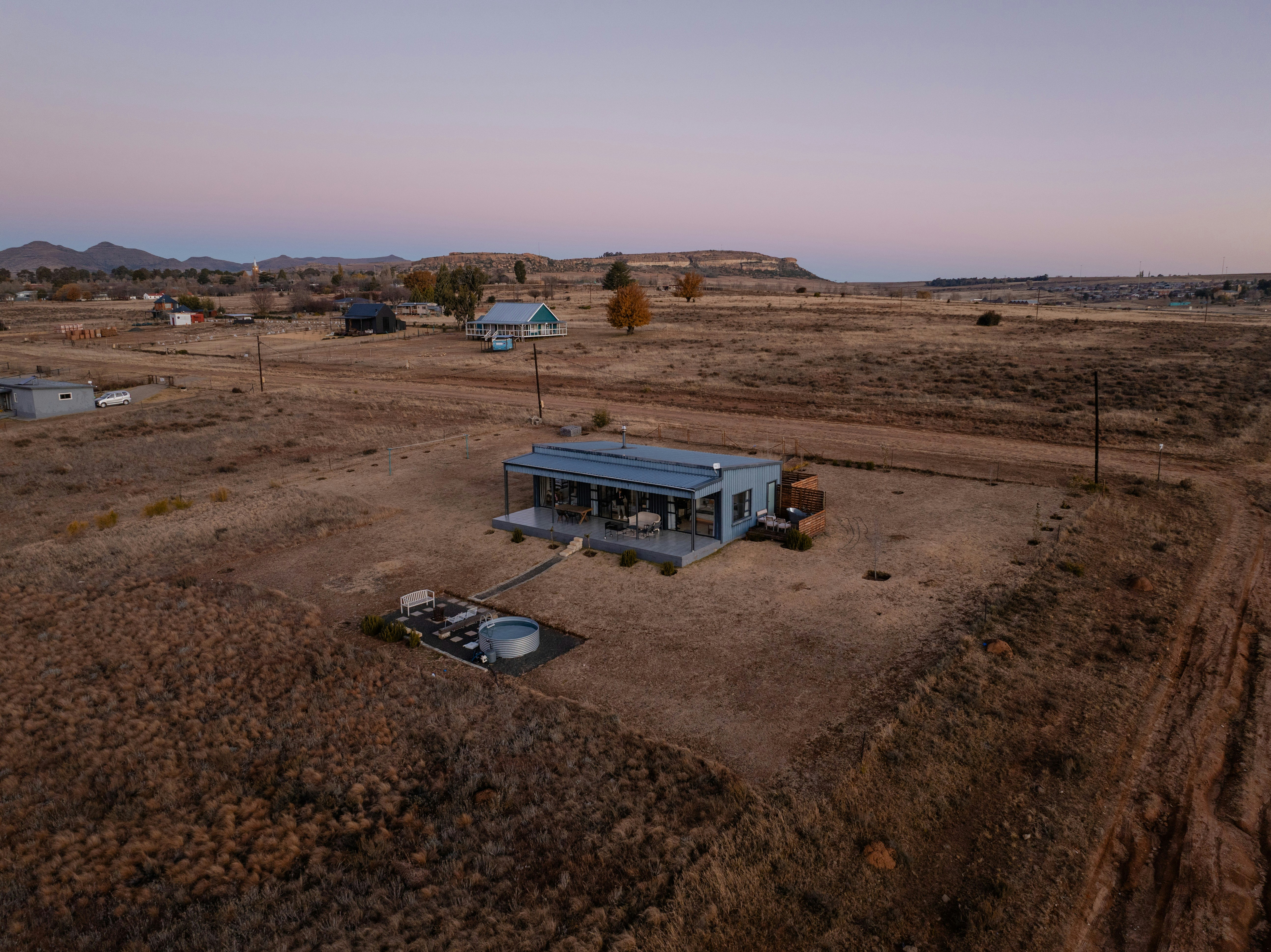 Hierdie stylvolle huisie bied slaapplek aan 4 gaste en beskik oor 2 slaapkamers, 2 badkamers, 'n kombuis en 'n leefarea. Elke slaapkamer het 'n koninggrootte-bed en 'n en-suite badkamer met 'n stort, toilet en wasbak. Daar is ook 'n gegalvaniseerde staalbad buite waarin gaste kan ontspan terwyl hulle die sonsondergang bewonder, asook 'n pragtige plaasstyl-plonspoel met 'n pragtige uitsig.