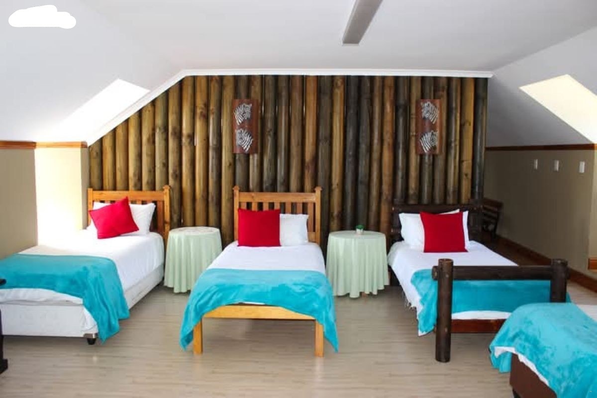 The lodge has a pool area with communal braai facilities, outdoor seating, and a jungle gym for children. The farm is home to a variety of wildlife including camp ponies, impalas, zebras, nyalas, red hartebeests, blesboks, blue wildebeests, and warthogs.