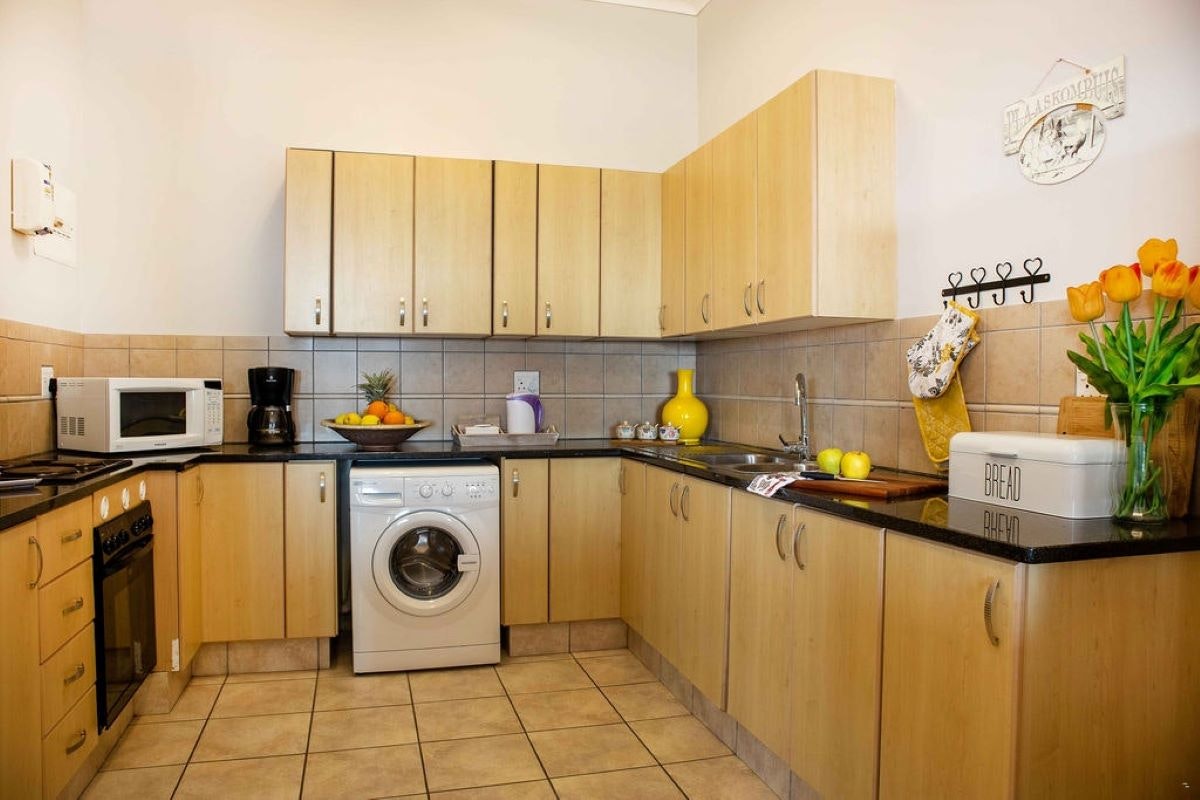 Die kombuis is toegerus met 'n stoof, oond, yskas-vrieskas, mikrogolfoond, koffie- en teemaakgeriewe, breekware en eetgerei. Dit beskik ook oor 'n wasmasjien en tuimeldroër, ideaal vir langer verblyf.