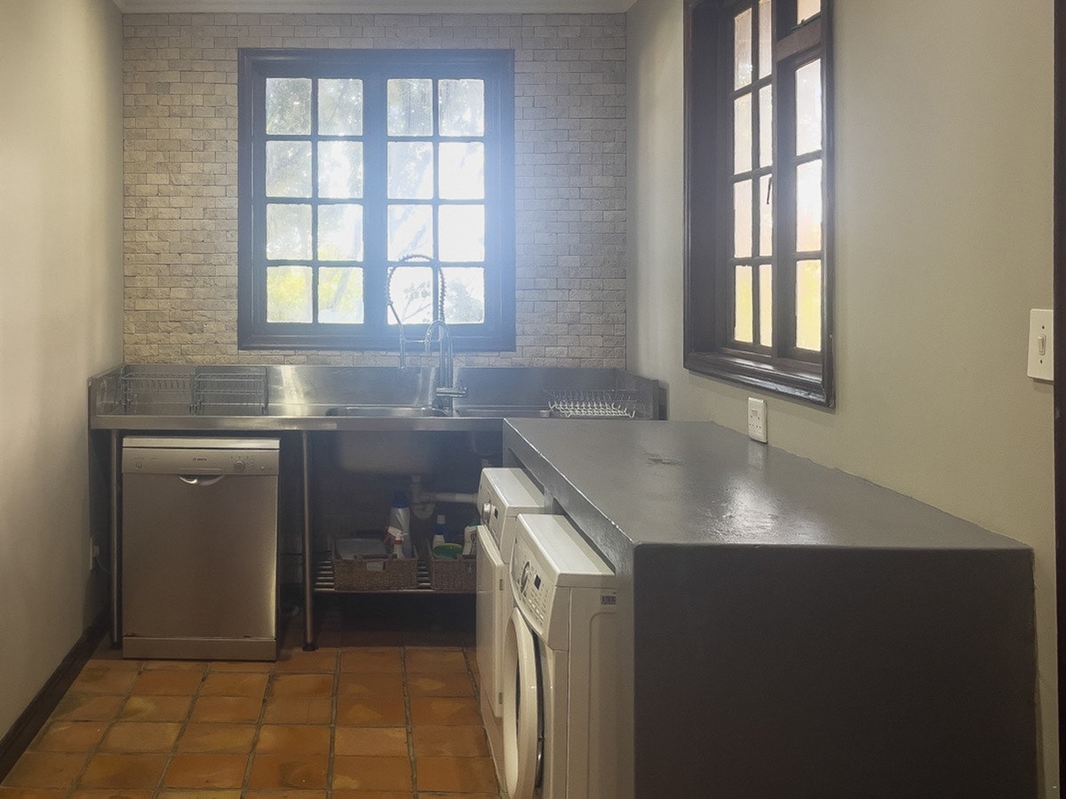Die kombuis is goed toegerus met 'n gas- en elektriese stoof, oond, lugbraaier, mikrogolfoond, ketel, broodrooster, yskas-vrieskas, skottelgoedwasser, wasmasjien en tuimeldroër. Die sitkamer en eetkamer bied gemaklike sitplek, 'n kaggel en ruimte vir gaste om te eet en te ontspan. Vir vermaak is 'n slim-TV met 'n volledige DStv-pakket, stromingsdienste en gratis WiFi beskikbaar.