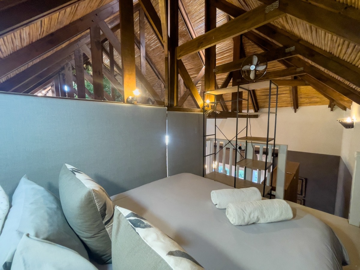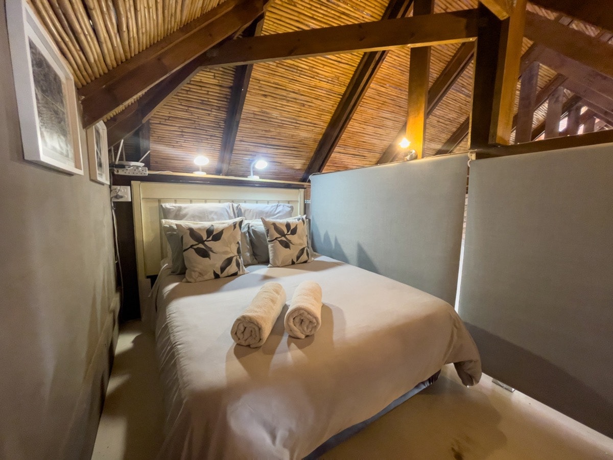 Die huis bied slaapplek vir 6 volwassenes en 2 kinders en bestaan uit 2 ruim slaapkamers met see-uitsigte en en suite-badkamers, sowel as 'n buitestort. Die eerste slaapkamer is gemeubileer met 'n koninggrootte-bed en 'n kinderbed, en die en suite-badkamer is toegerus met 'n spa-bad. Die tweede slaapkamer bevat 'n dubbelbed en 'n kinderbed, en die en suite-badkamer is toegerus met 'n bad en het toegang tot 'n buitestort. 'n Bykomende dubbelbed is beskikbaar in 'n klein oop solderkamer, wat blindings vir privaatheid insluit. Linne en badhanddoeke word voorsien.