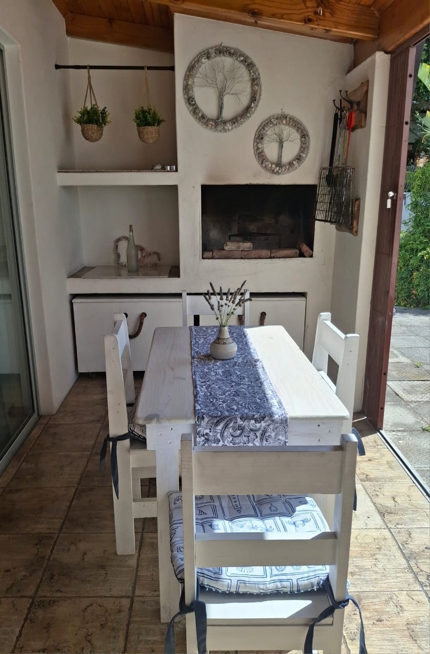 Buite is daar 'n oordekte patio met 'n buite-eettafel en 'n ingeboude braai wat 'n wonderlike plek is vir 'n skemerkelkie in die aand terwyl die vuur brand. Gaste het veilige parkering agter 'n geslote hek op die perseel.