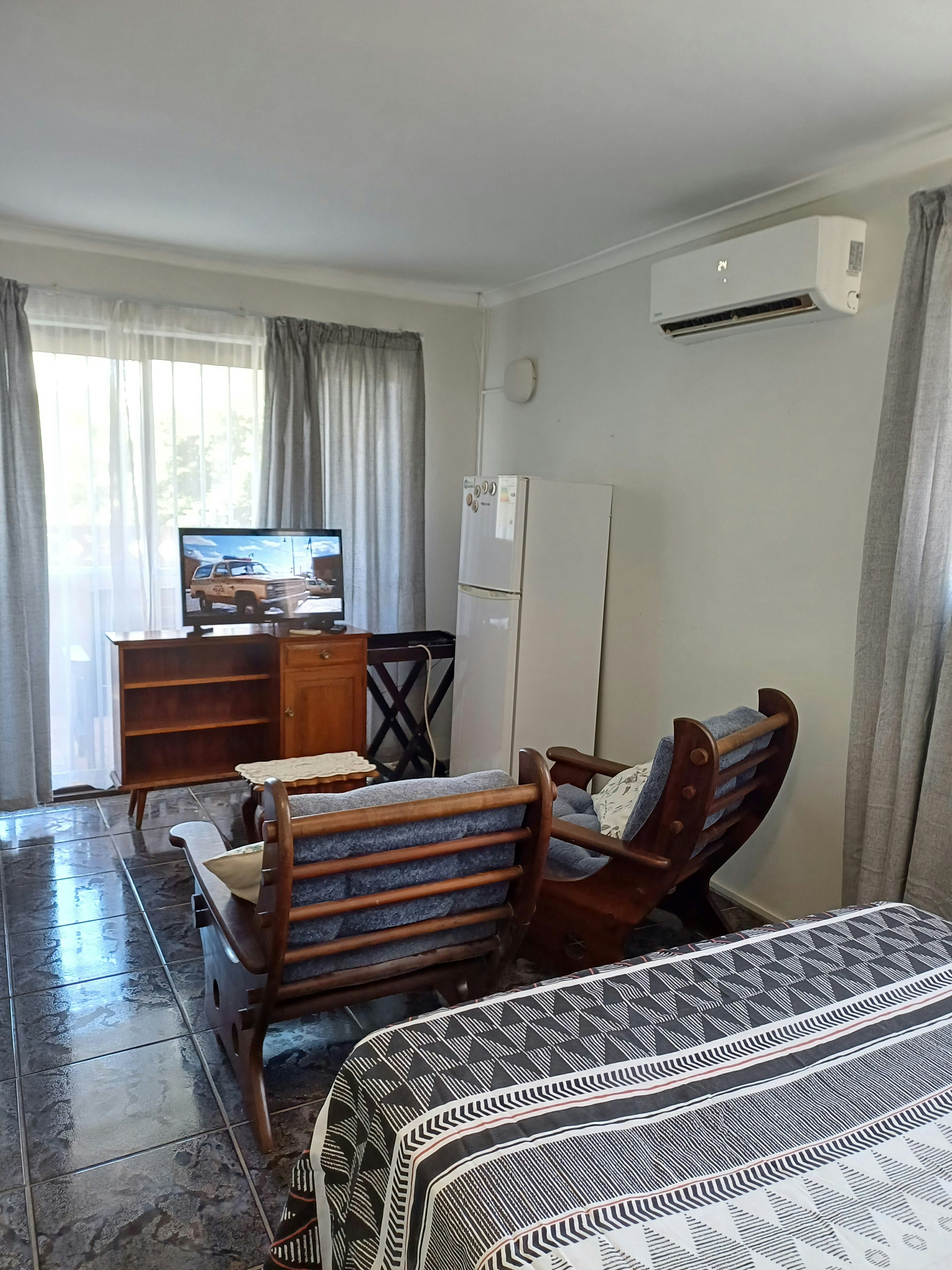 Die leefarea het 'n oopplan-ontwerp met 'n volledig toegeruste kombuis, insluitend 'n mikrogolfoond, yskas-vrieskas, broodrooster, ketel, eetgerei en breekware. Die sitarea is gemeubileer met gemaklike sitplek en 'n slim-TV, asook gratis WiFi.