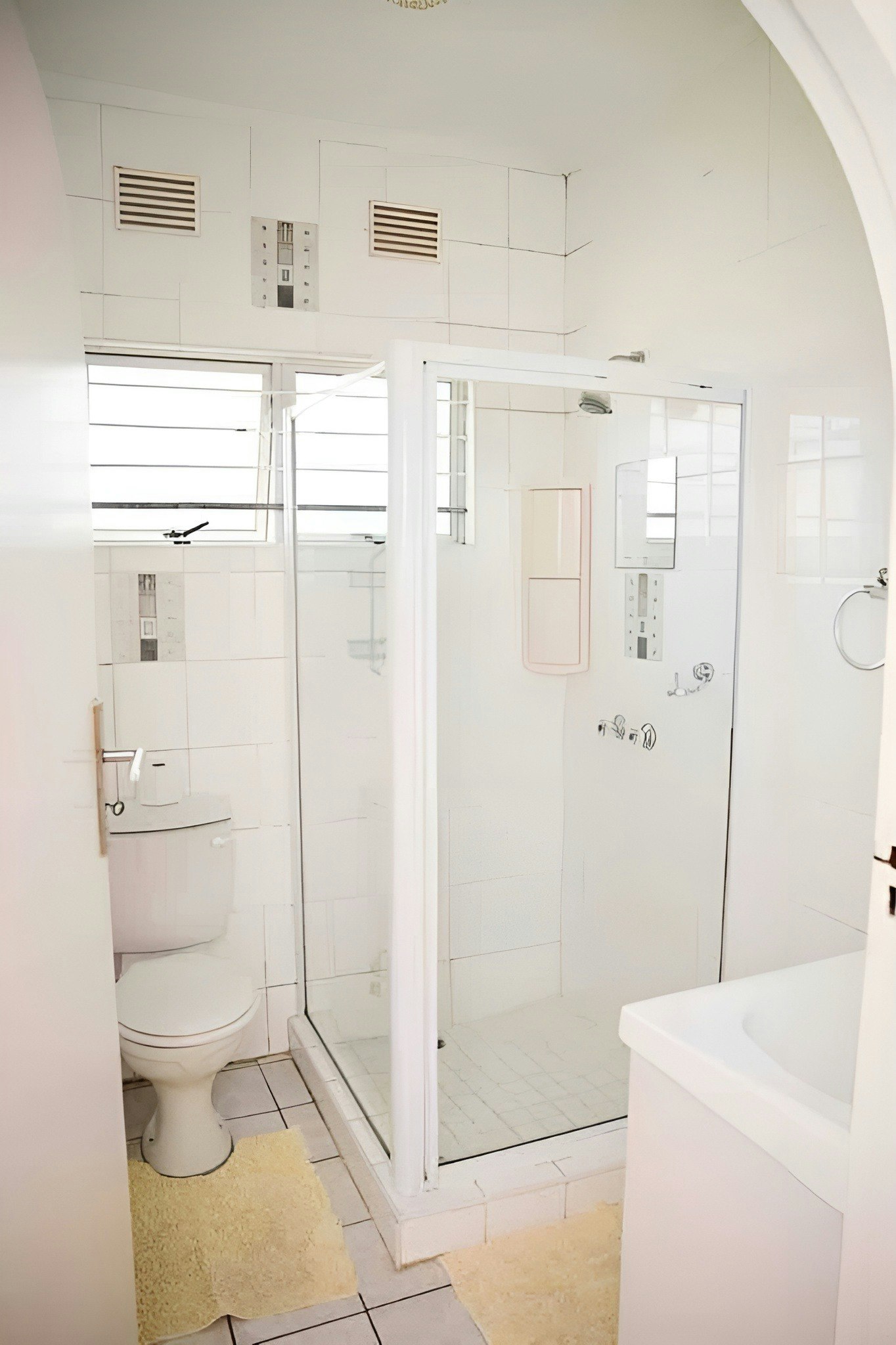 The open-plan living area features comfortable seating, a TV, a dining table, and a fully-equipped kitchen with a fridge-freezer, stove, oven, microwave, and coffee- and tea-making facilities. Guests can unwind on the balcony and enjoy the beautiful sea views, or make use of the private courtyard, refreshing swimming pool, and braai facilities.