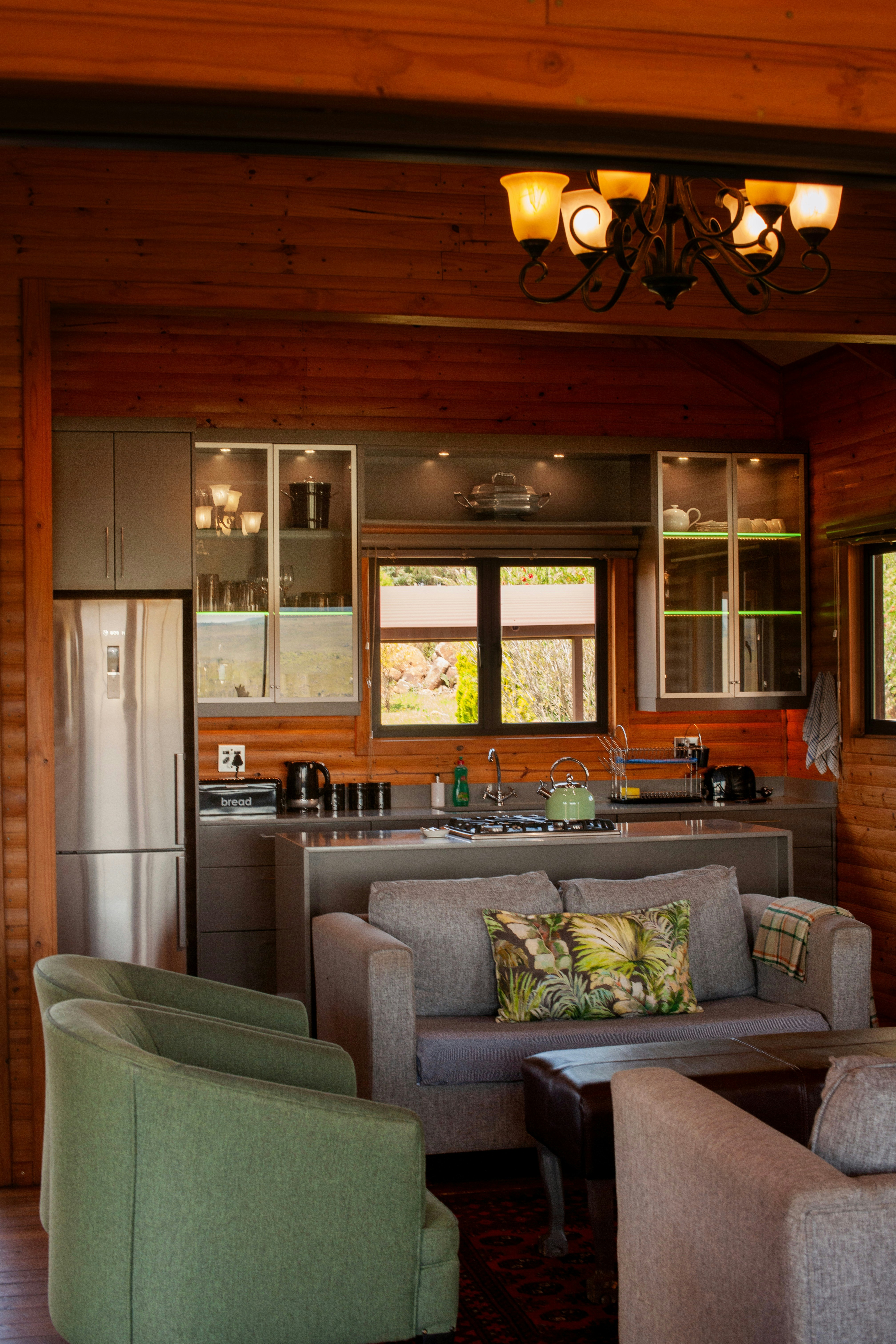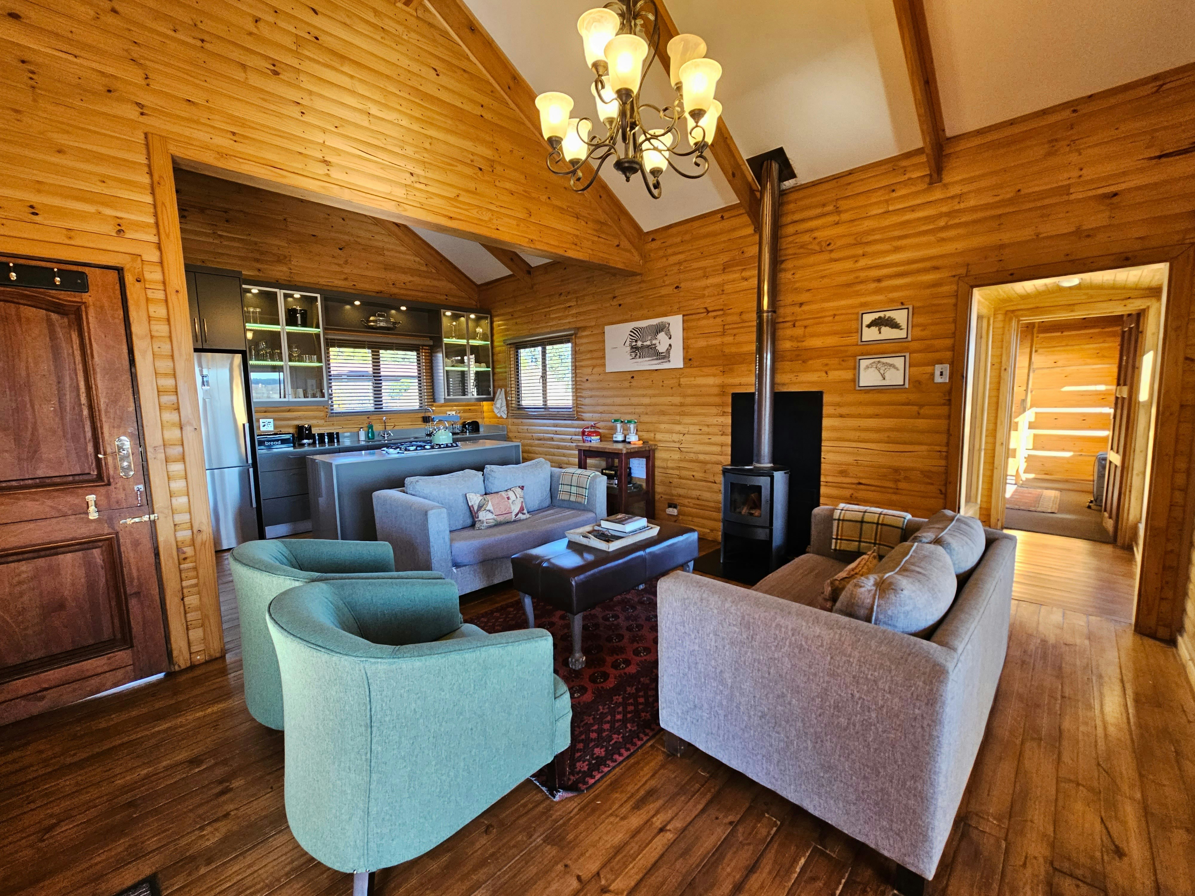 Serengeti bied slaapplek aan 4 gaste en 4 kinders en beskik oor 2 slaapkamers en 2 badkamers. Die hoogtepunt van hierdie verblyf is dat dit vensters met panoramiese uitsigte oor die Dullstroom-heuwels het. Daar is ook 'n eksklusiewe houtvuurwarmbad buite. Elke slaapkamer het gemaklike beddens en 'n en suite-badkamer met 'n bad en 'n stort. Ander geriewe sluit 'n ten volle toegeruste kombuis, sitarea, eetarea en 'n kaggel in. Die kombuis is met 'n gasstoof, oond en yskas-vrieskas toegerus. Die eenheid het 'n privaat ingang.