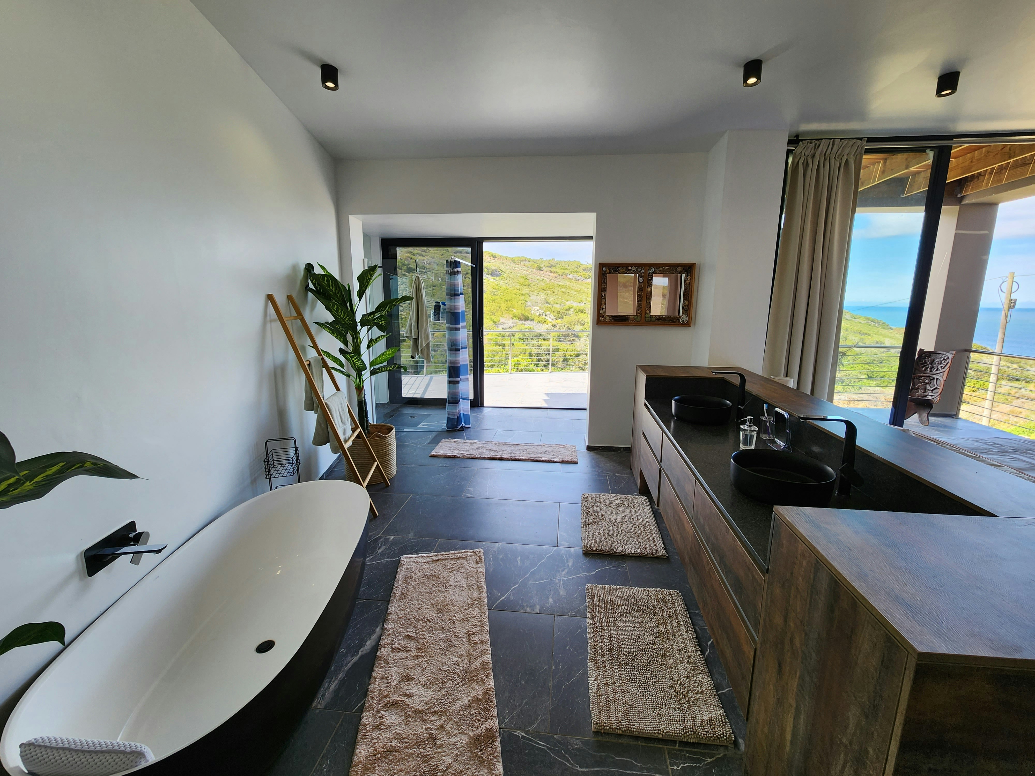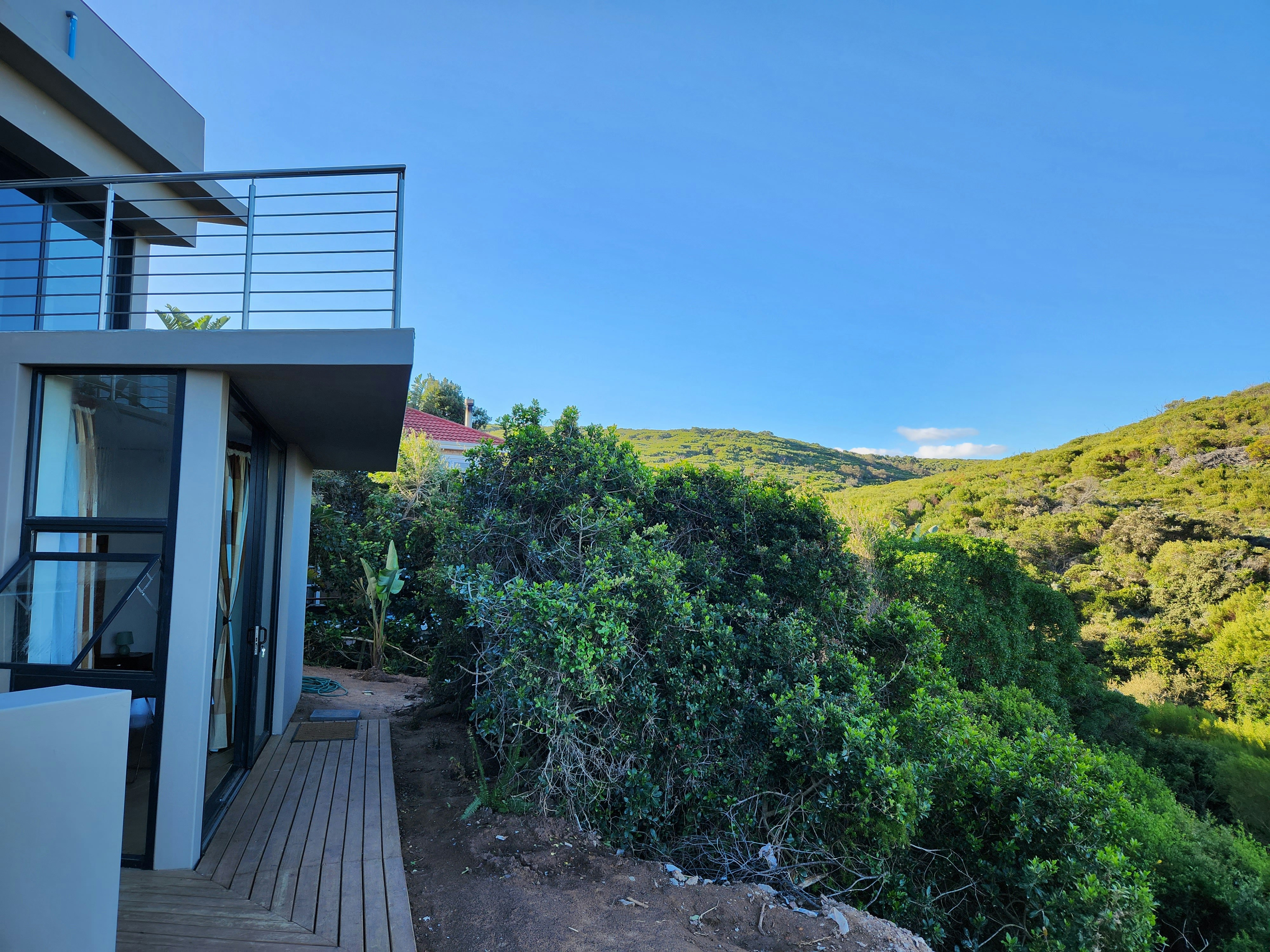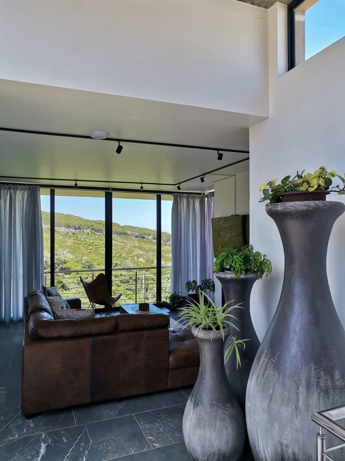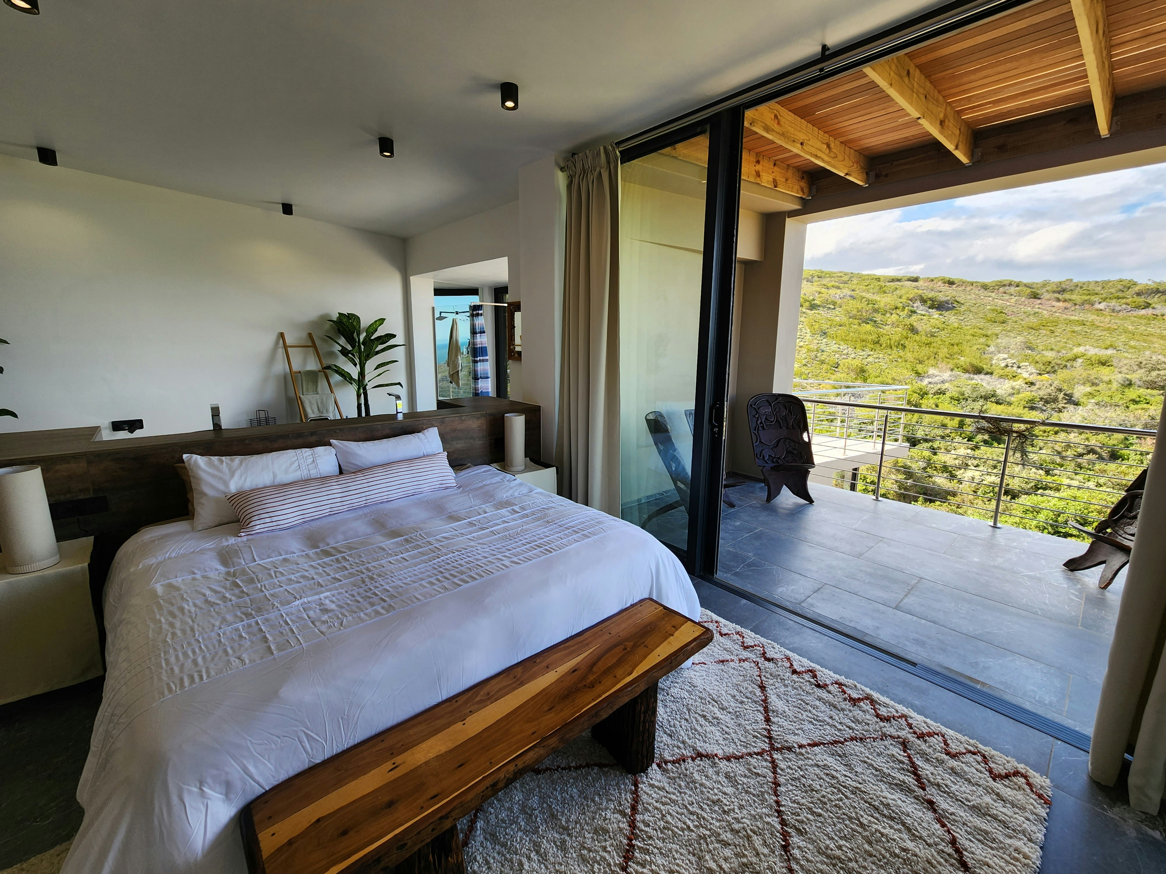 The house was specifically designed to take advantage of the proximity to the nature conservancy with natural materials, floor to floor-to-ceiling windows that slide open to bring nature inside. The gorge is part of the critical conservancy area and the house is front row seat. On a daily basis, you will be visited by bunnies, black mongoose, bushbuck, Guinea fowl and the abundance of bird life too many to mention. Our favourite nightly visitor is Ruan, the spotted eagle owl that hunts in the backyard every night. You have the advantage also of spectacular ocean and breaker views to spot dolphins and whales. Forget about technology and witness nature's full glory.