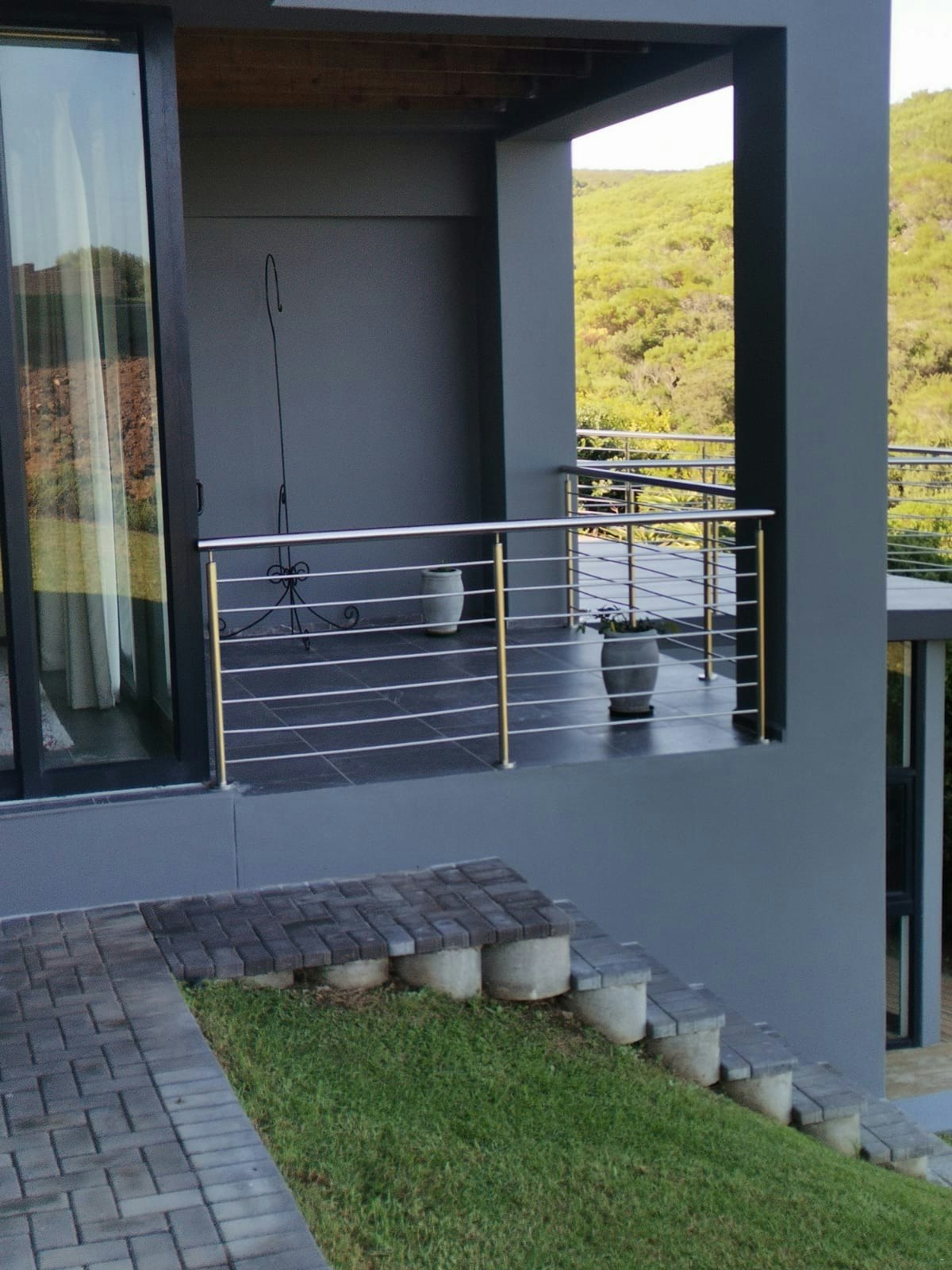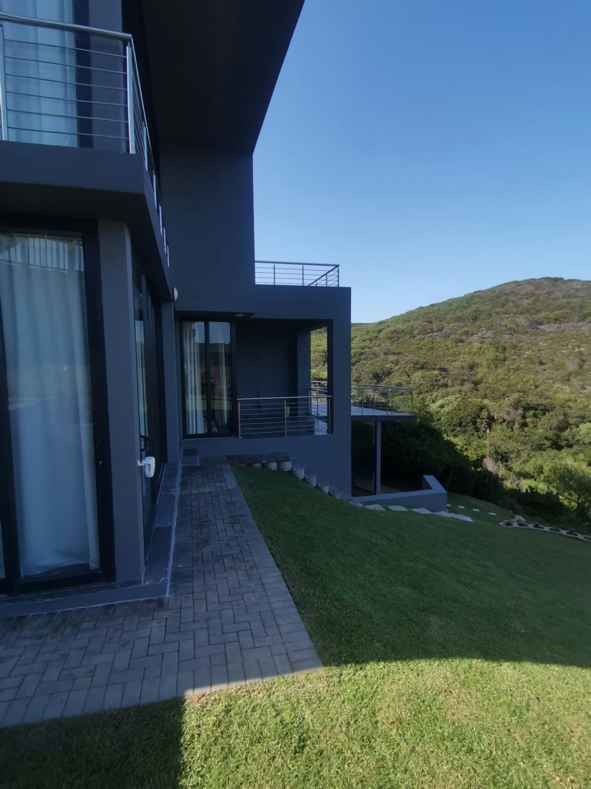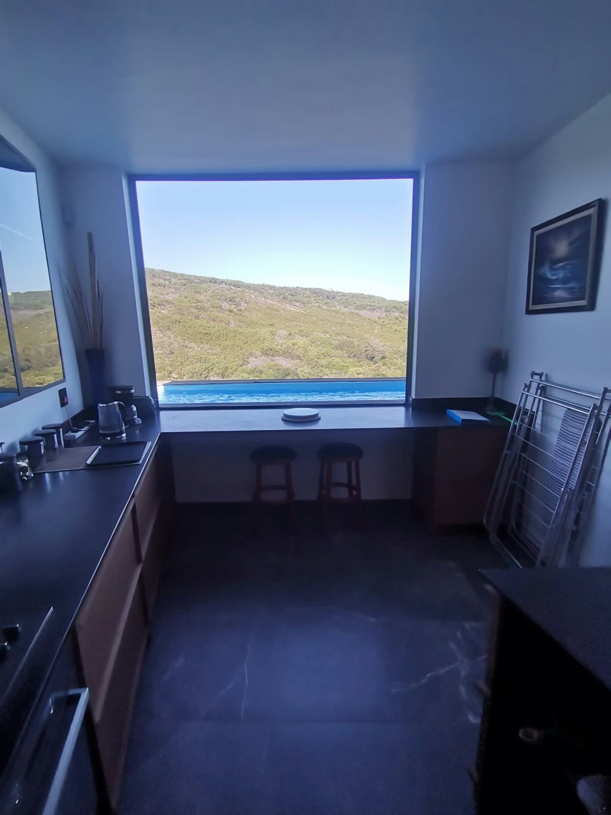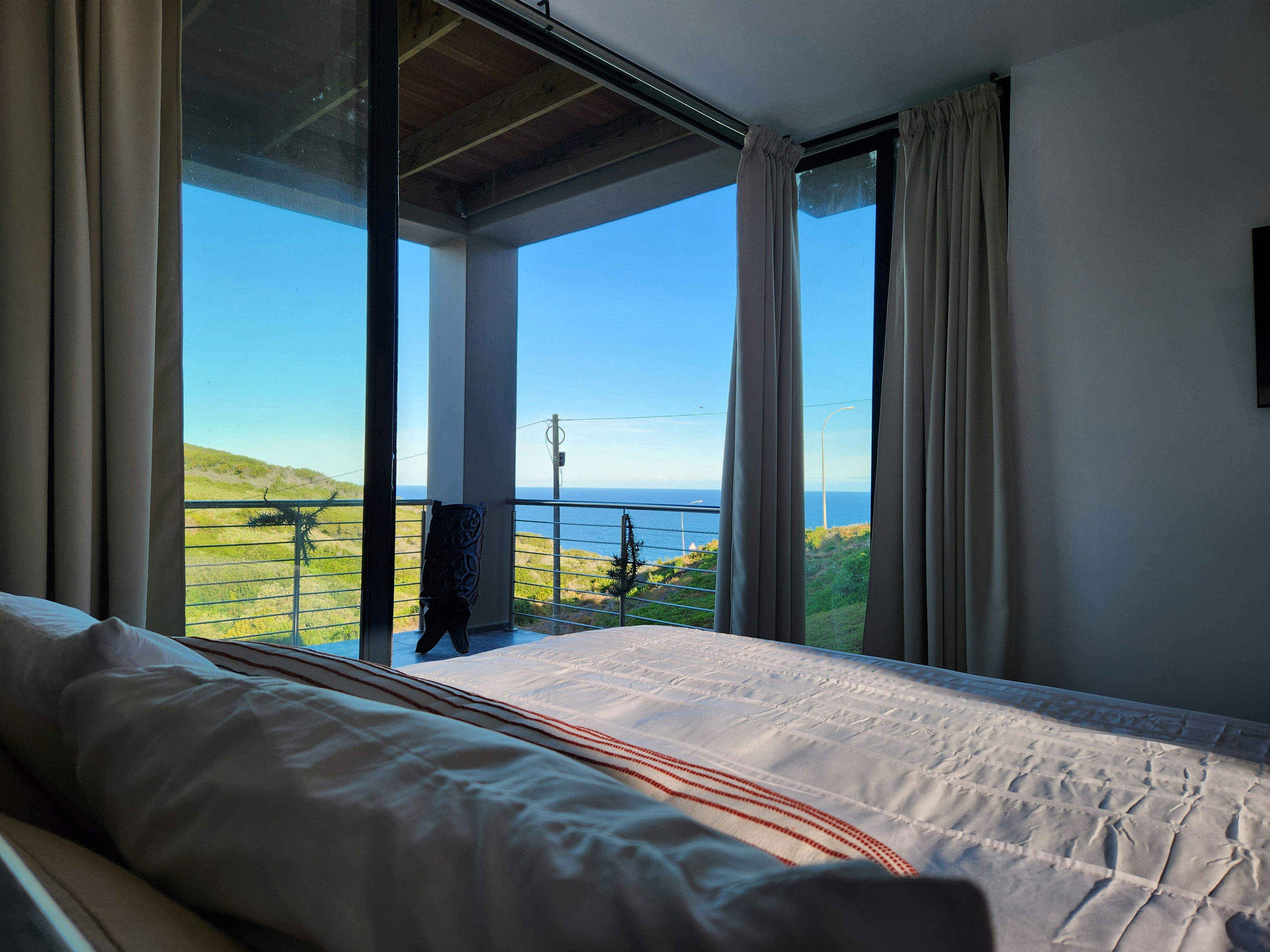 The house was specifically designed to take advantage of the proximity to the nature conservancy with natural materials, floor to floor-to-ceiling windows that slide open to bring nature inside. The gorge is part of the critical conservancy area and the house is front row seat. On a daily basis, you will be visited by bunnies, black mongoose, bushbuck, Guinea fowl and the abundance of bird life too many to mention. Our favourite nightly visitor is Ruan, the spotted eagle owl that hunts in the backyard every night. You have the advantage also of spectacular ocean and breaker views to spot dolphins and whales. Forget about technology and witness nature's full glory.