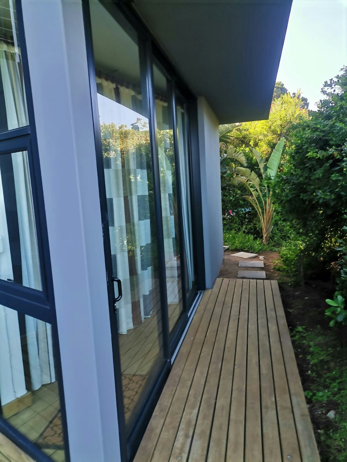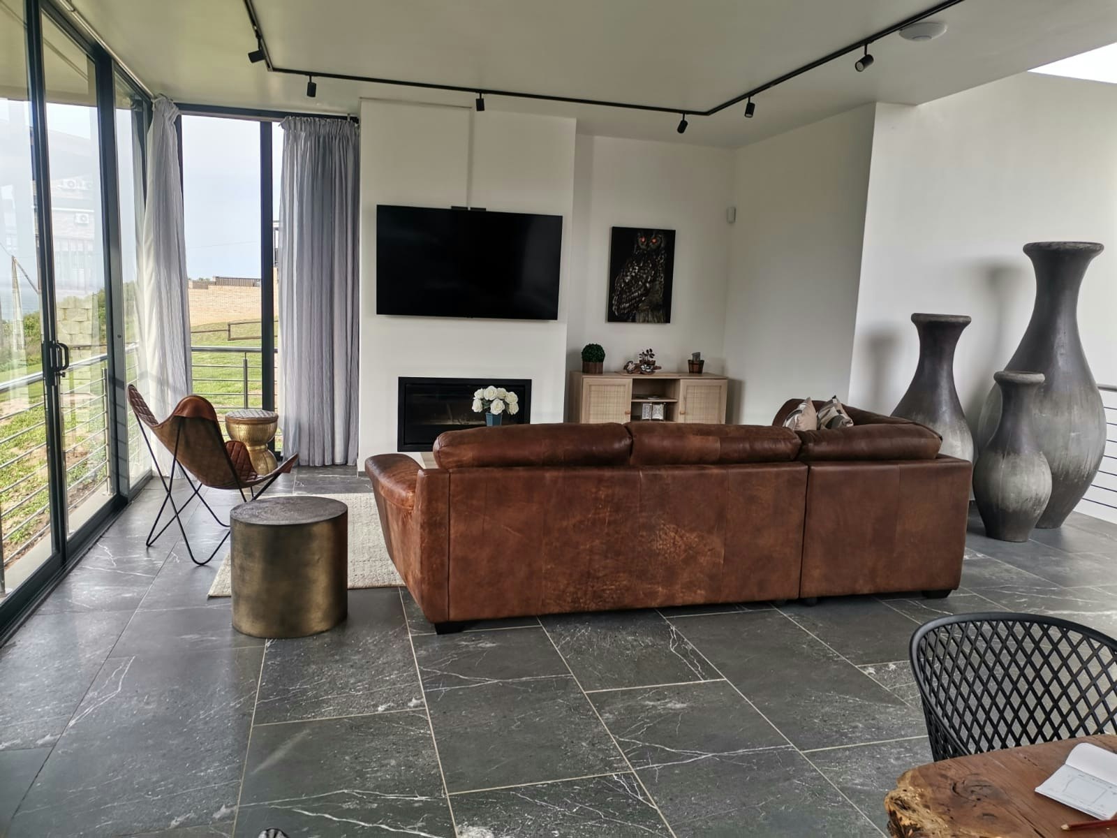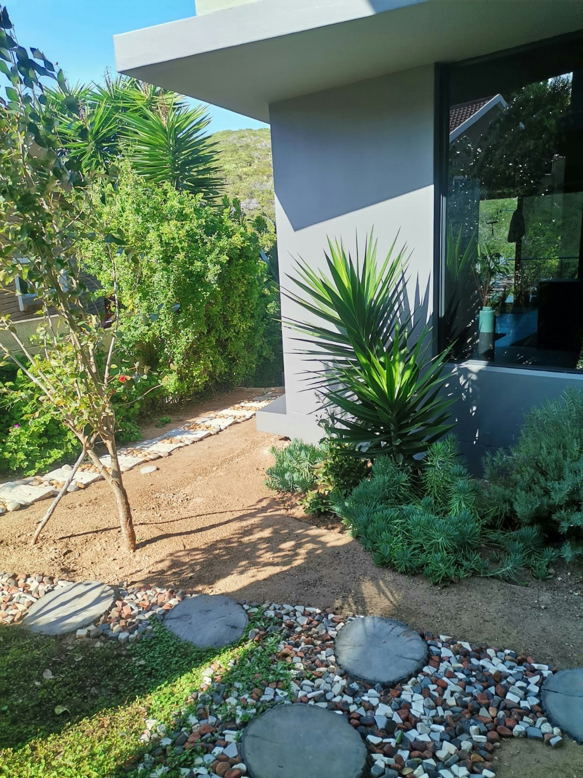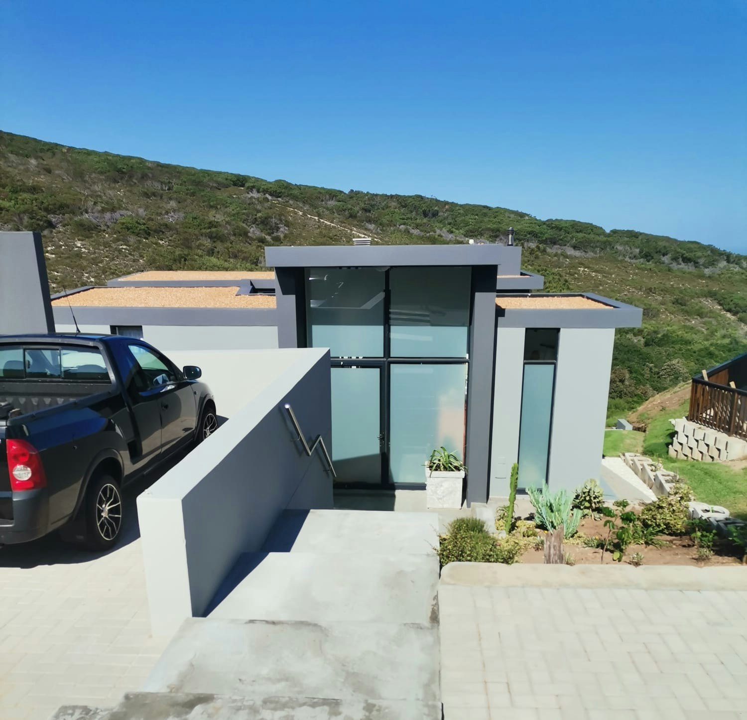 The house was specifically designed to take advantage of the proximity to the nature conservancy with natural materials, floor to floor-to-ceiling windows that slide open to bring nature inside. The gorge is part of the critical conservancy area and the house is front row seat. On a daily basis, you will be visited by bunnies, black mongoose, bushbuck, Guinea fowl and the abundance of bird life too many to mention. Our favourite nightly visitor is Ruan, the spotted eagle owl that hunts in the backyard every night. You have the advantage also of spectacular ocean and breaker views to spot dolphins and whales. Forget about technology and witness nature's full glory.