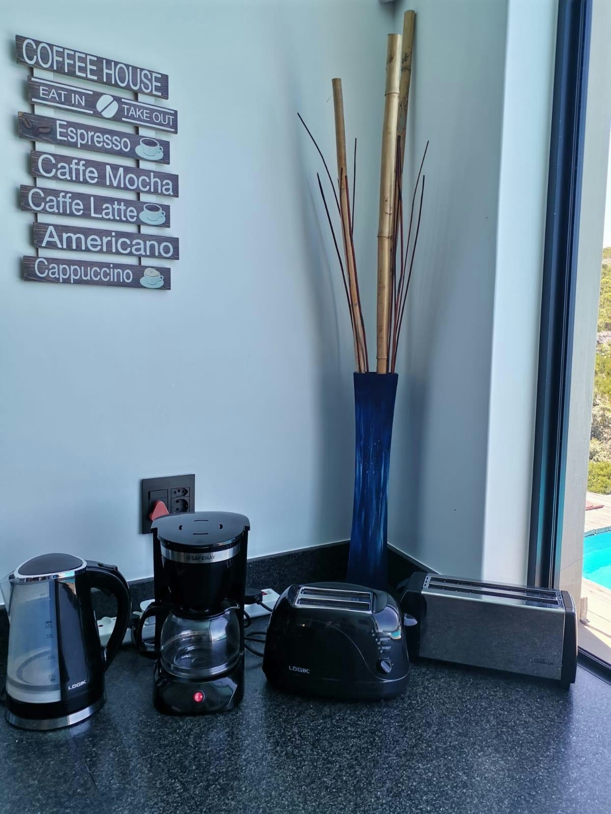 The open-plan living area boasting breathtaking vistas features a lounge, a dining area and a kitchen. The kitchen is equipped with a gas stove, oven, microwave, fridge-freezer, tea- and coffee-making facilities and cutlery and crockery. The dining area is furnished with a dining table suitable for 8 guests. The lounge is furnished with a comfortable lounge suite, a coffee table and a TV. Access to free Wi-Fi is available.