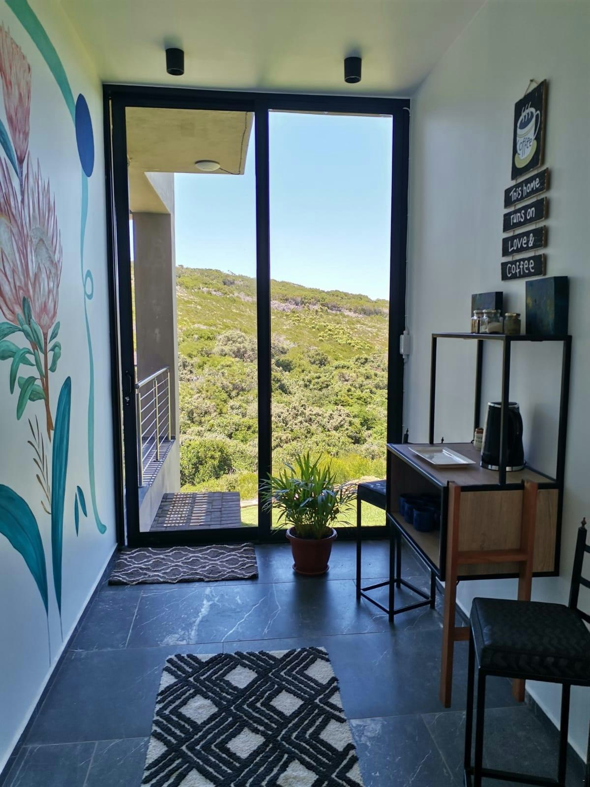 The living area opens onto a patio, boasting stunning views of the valley and sea. Guests can enjoy a dip in the sparkling swimming pool, enjoy a braai or simply lounge on the comfortable outdoor furniture. For those looking to explore the area, guests might catch a glimpse of the passing game and hiking trails are within easy reach. Access to secure parking is available.