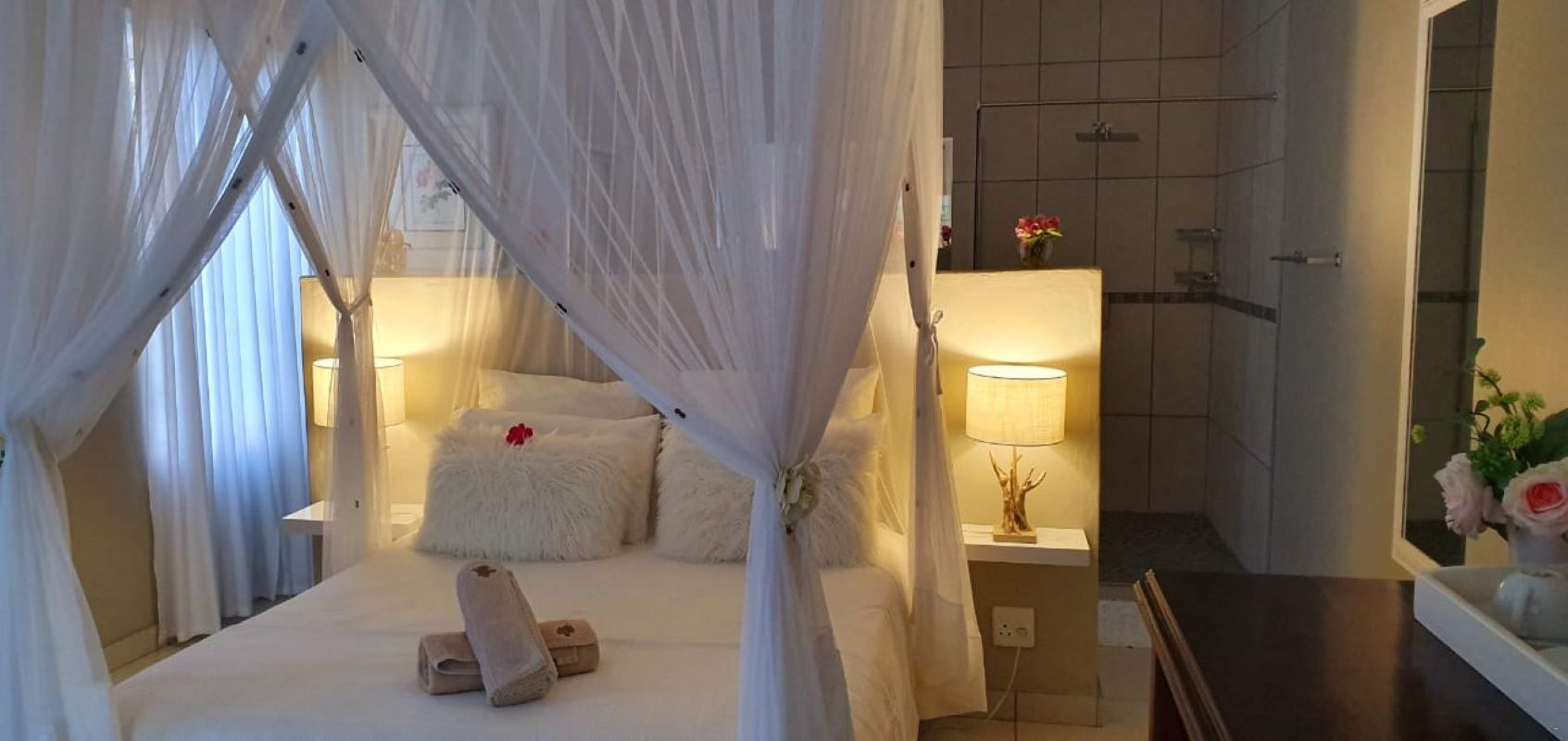 The lodge comprises seven air-conditioned suites, all serviced daily. Each Suite features a private patio overlooking lush tropical gardens. Rooms are furnished with either King / Twin beds or Double beds. all fitted with high-quality cotton linen and ceiling-draped mosquito nets. Each suite has an en-suite bathroom, a bar fridge, tea & coffee making facilities, a hairdryer, and free WiFi. Laundry services and secure parking are available.