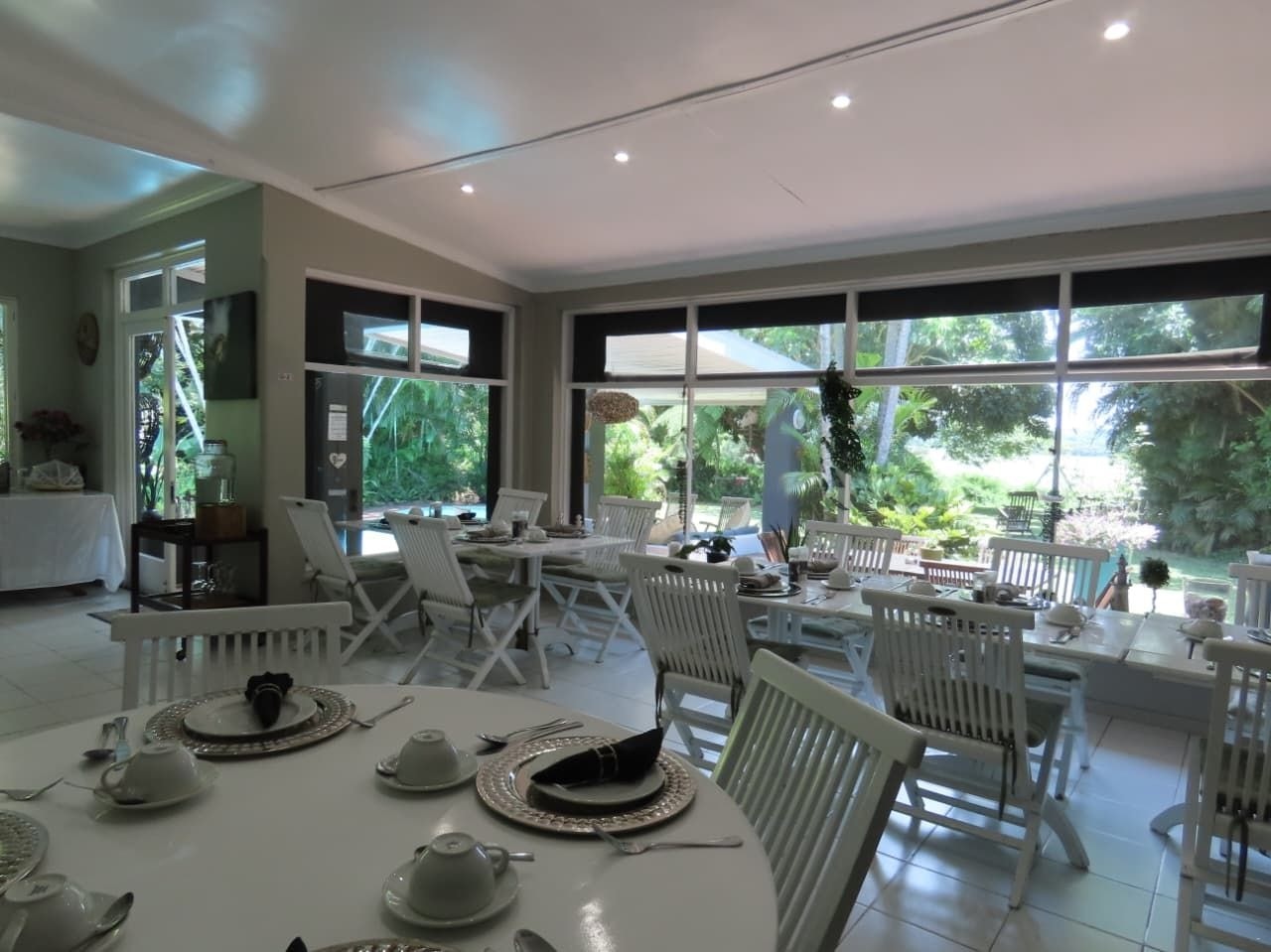 Breakfast is served daily in a dining area overlooking the garden and St Lucia Estuary. Dinner can be arranged on request or enjoyed at nearby restaurants. Guests can also relax by the swimming pool, ideal for cooling off on warm days.
