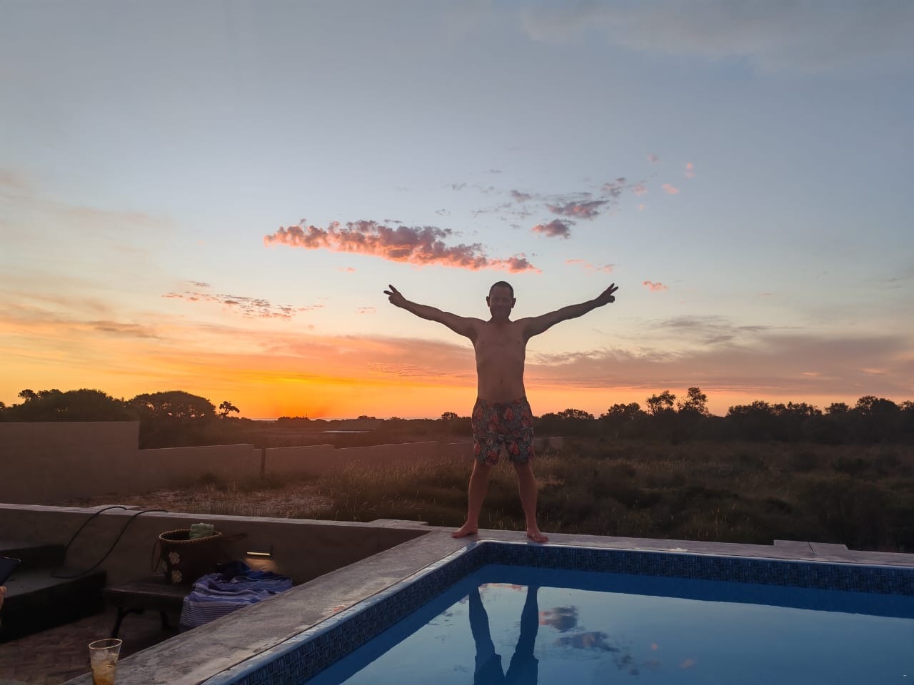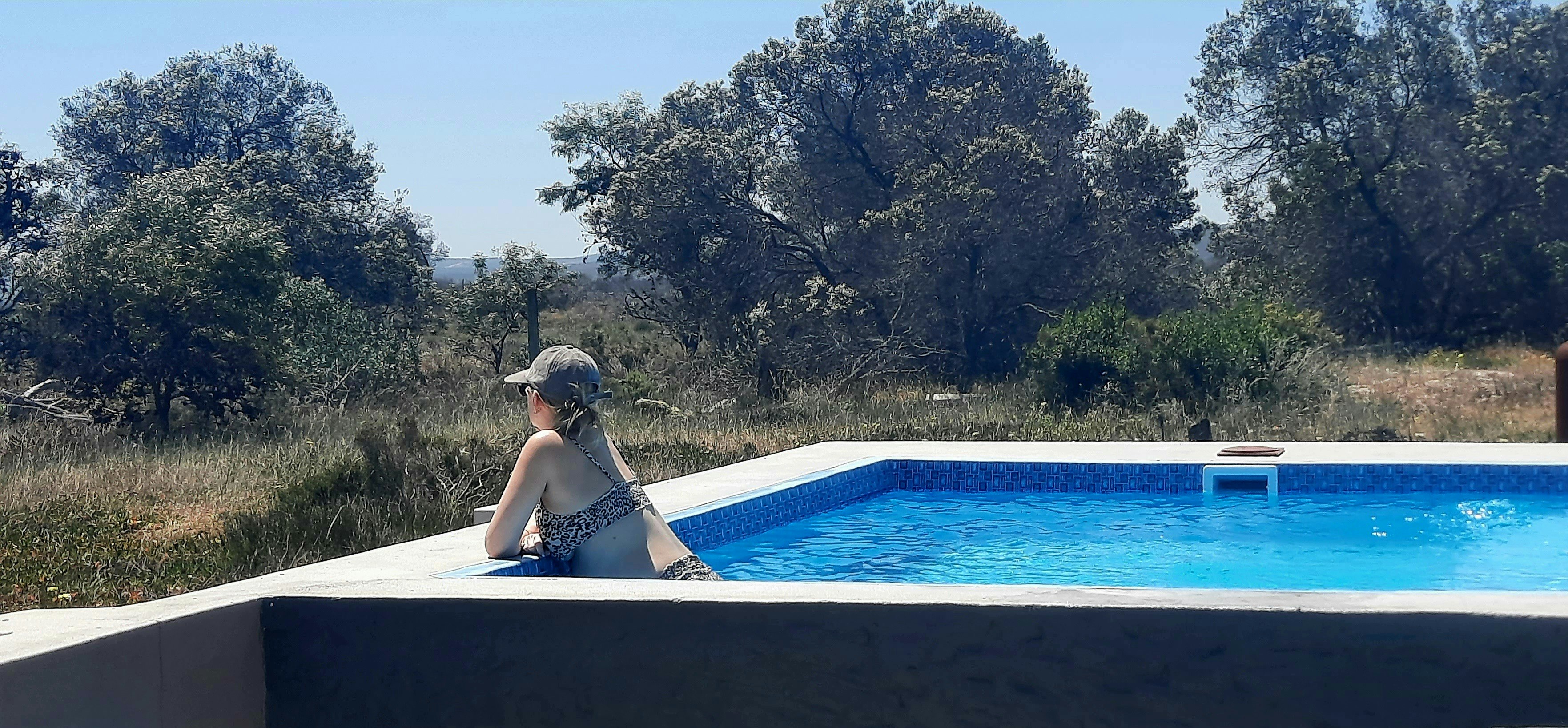 The surroundings include indigenous flora and fauna, and the house borders a game lodge where animals often roam along the fence line.