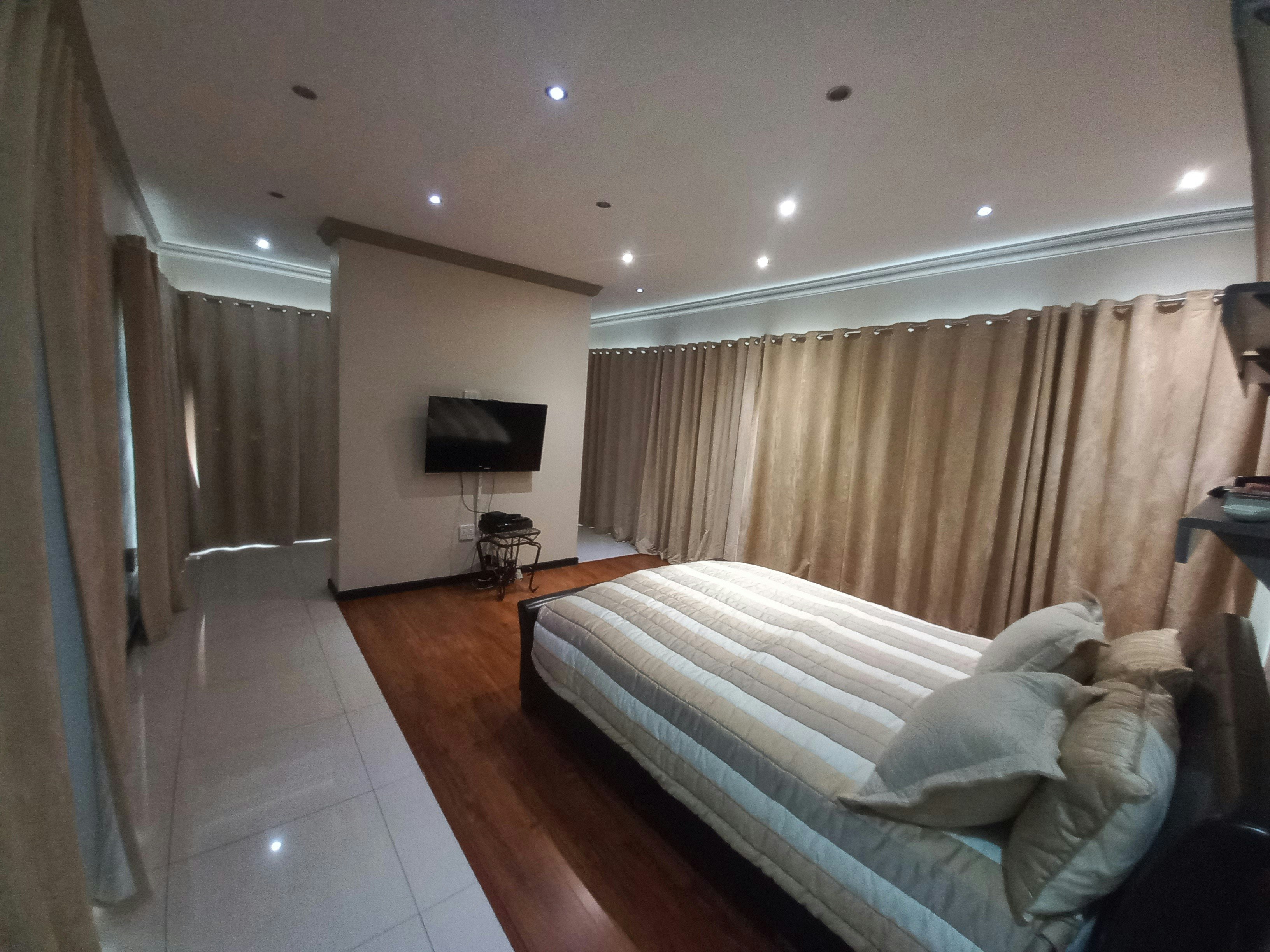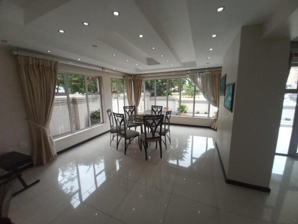 Guests have a choice between 4 beautifully appointed bedrooms, each with their own en-suite bathroom. The rooms feature comfortable beds, quality linen and bath towels, air-conditioning and a TV with selected DStv channels. The guest house provides guests access to a shared kitchen that is equipped with a fridge-freezer, stove, oven, microwave, cutlery and crockery and tea- and coffee-making facilities. The shared dining and lounging areas have comfortable seating for guests to dine and relax, and for guests entertainment there is a TV. Access to Wi-Fi is available.