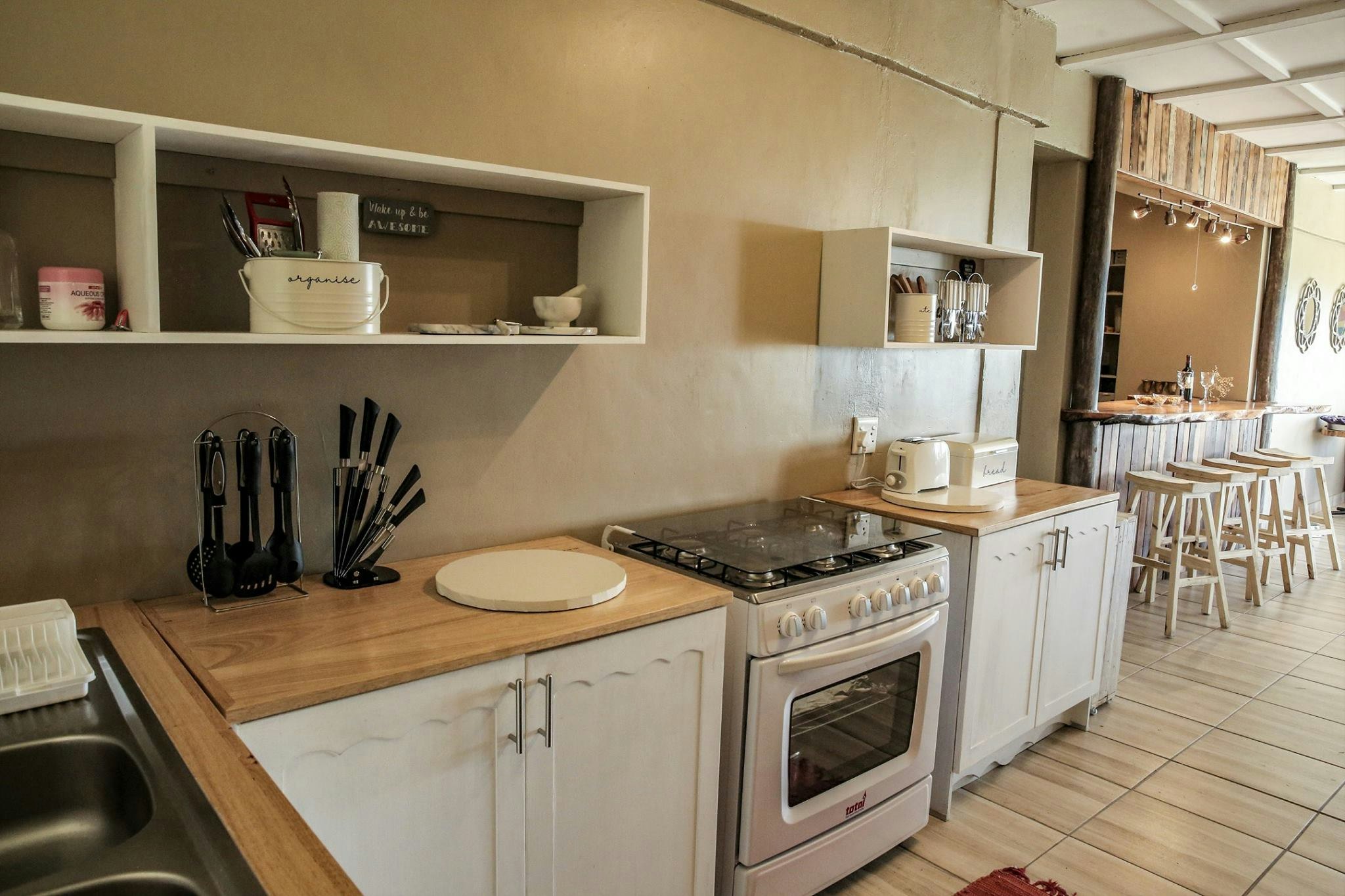 Die kombuis is met 'n yskas, mikrogolfoond, gasstoof, vrieskas, ketel, broodrooster en 'n filterkoffiemasjien toegerus. Die hoofleefarea het 'n etenstafel met sitplek, en daar is 'n aparte TV-sitkamer met sekere DStv-kanale en 'n kaggel. Die huis het ook 'n ingeboude kroeg wat na die patio-sitkamer lei met 'n ingeboude braai-area.