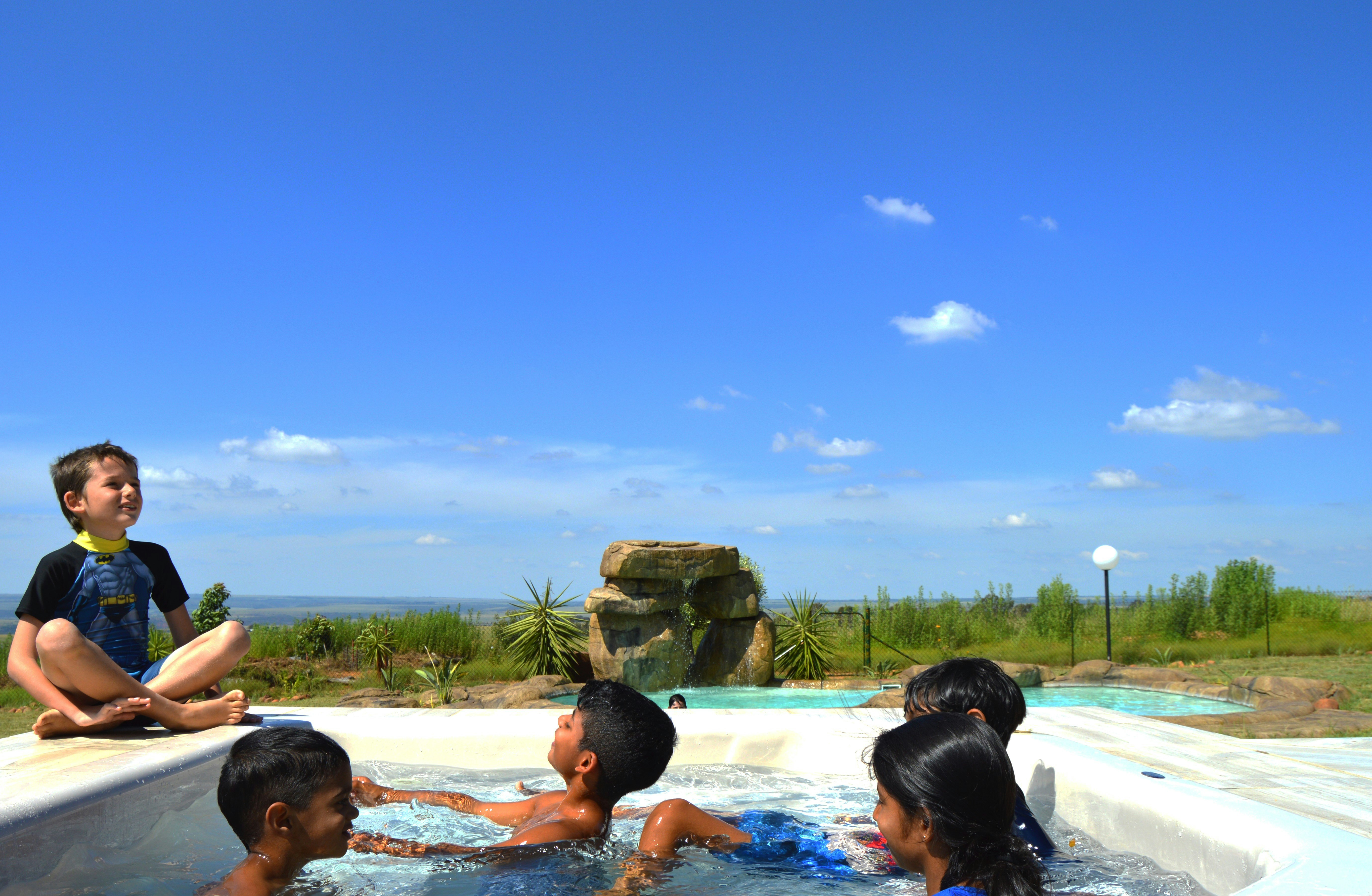 Gaste kan skemerkelkies op die dek, in die Jacuzzi met sitplek vir 6, of by die boma geniet. Gaste kan ook afkoel in die vlak 1,2 m-rotsswembad wat 'n waterval en saans gekleurde ligte het wat verander. Daar is 2 buitetafels met bankies en 'n lieflike hangmat onder 'n skaduryke boom.