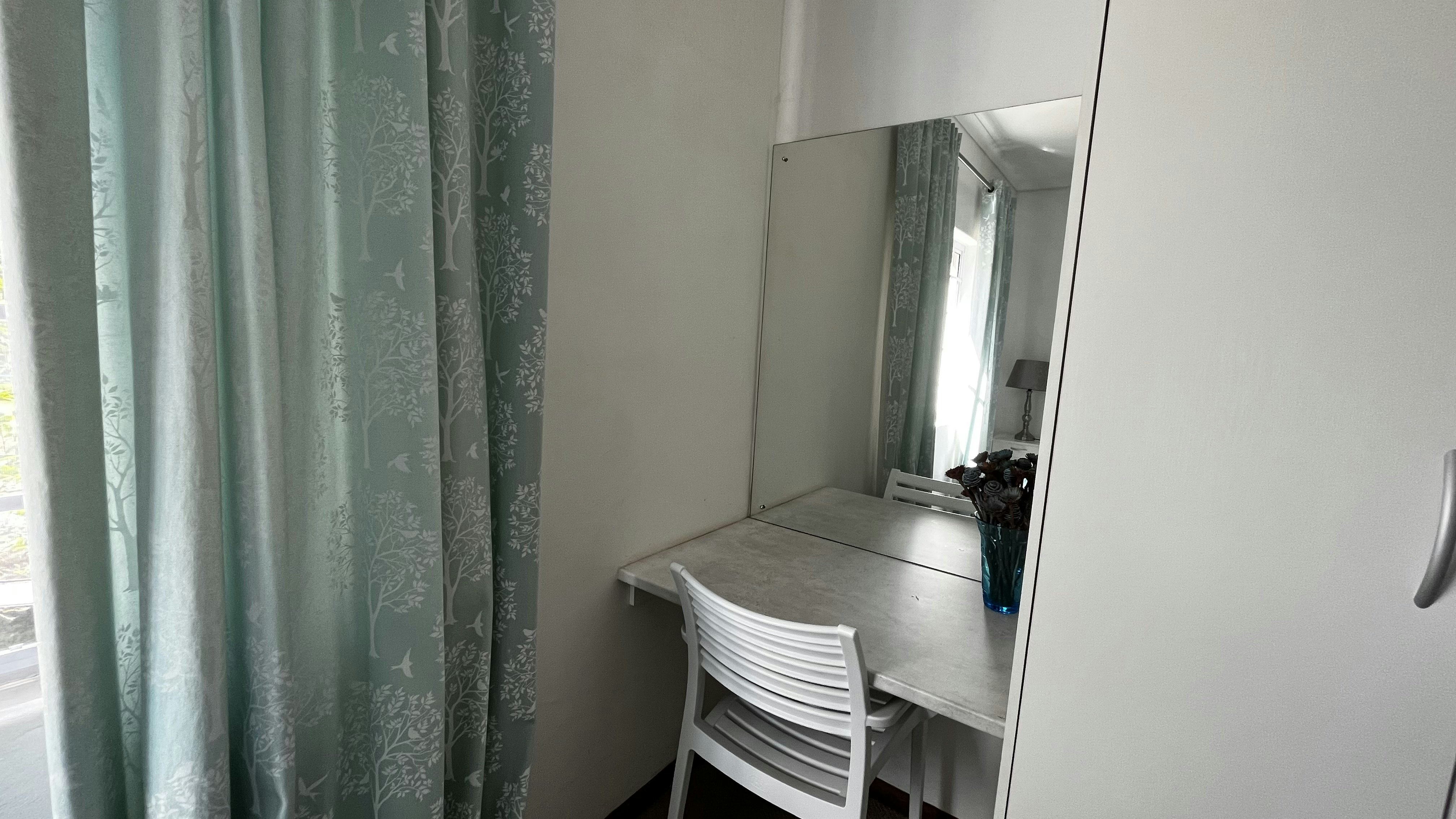 Riverside View is located on the ground floor and comprises 2 bedrooms. The main and second bedroom is furnished with a queen-size bed. The En-suite bathroom is fitted with a shower and toilet and there is a separate bathroom that is also fitted with a shower and toilet. The kitchen is well-equipped for self-catering and features a microwave, kettle, gas stove, one-plate electric hob, and a fridge. Guests also have access to a smart TV with satellite channels. Guests also have access to a braai area.