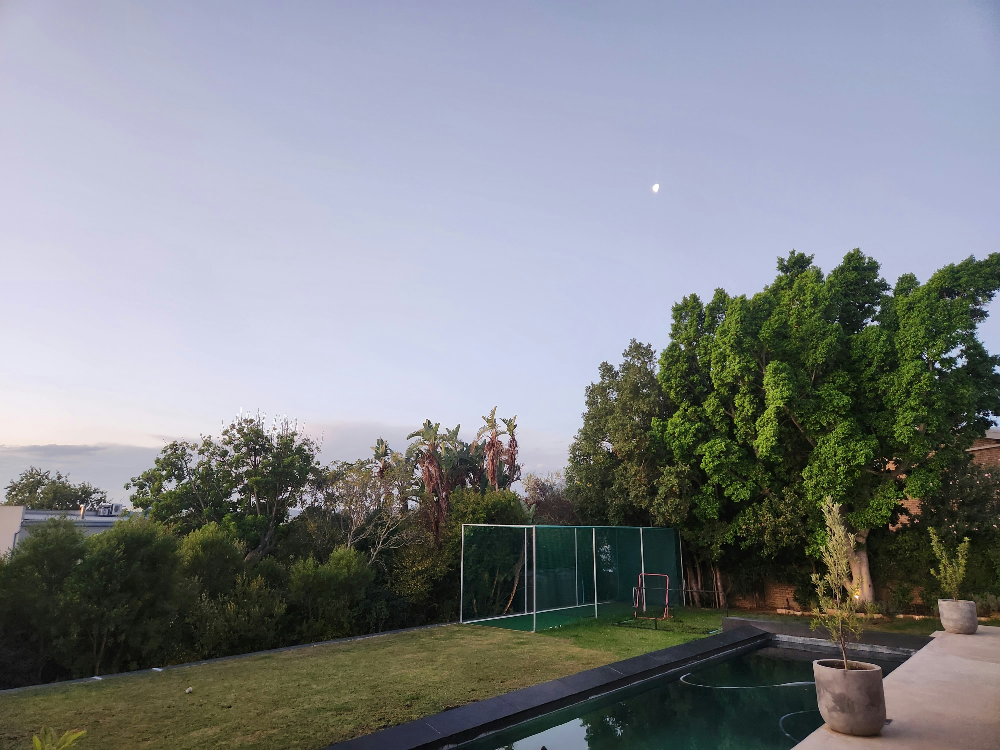 Additional features include a heated infinity swimming pool, sauna, cricket net, and a separate games and exercise area equipped with a stationary bicycle, rowing machine, weights, table tennis table, pool table, and dartboard. Secure on-site parking is available. An on-site live-in domestic worker is available at an additional fee.