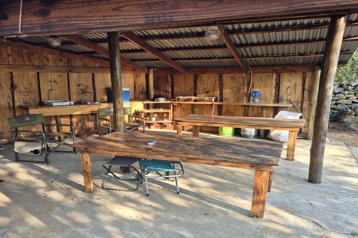 The campsite features a shared ablution block with toilets, showers, and basins available for guest use. A communal kitchen area is also available and is equipped with 2-plate gas stoves and tables for shared use. The grounds provide a relaxed farm-style atmosphere with open spaces and a peaceful environment, making it suitable for guests looking to unwind in a quiet natural setting while still having access to essential amenities.