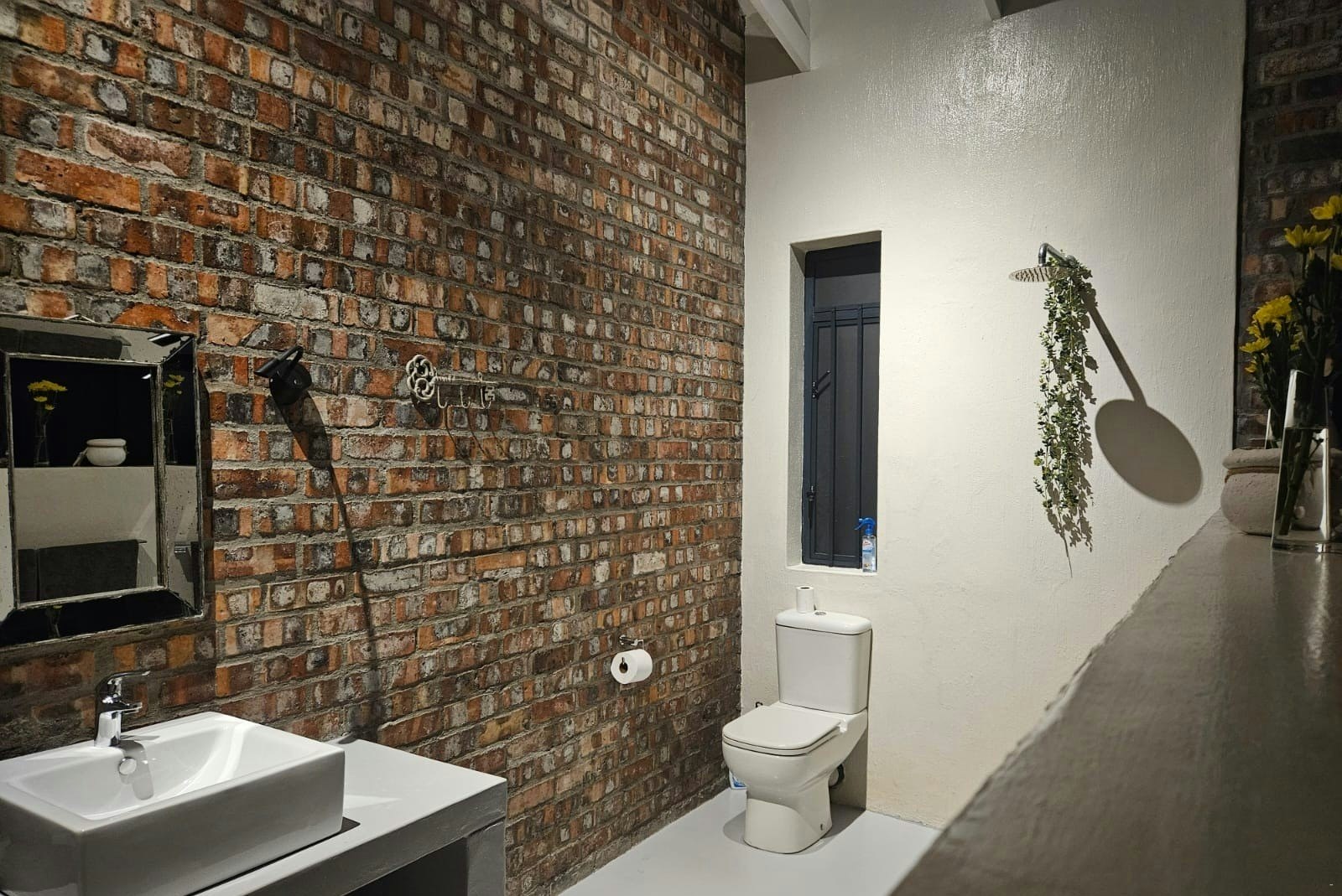 The home boasts a well-equipped kitchen that includes a gas stove, oven, microwave, air fryer, kettle, toaster, cutlery, crockery, fridge-freezer, dishwasher, washing machine, and a breakfast bar with stools. The open-plan living areas offer comfortable couches and a fireplace. Guests can enjoy meals in the dining area, and for entertainment, a smart TV with a full bouquet of DStv channels, a projector screen, and access to free Wi-Fi are available.