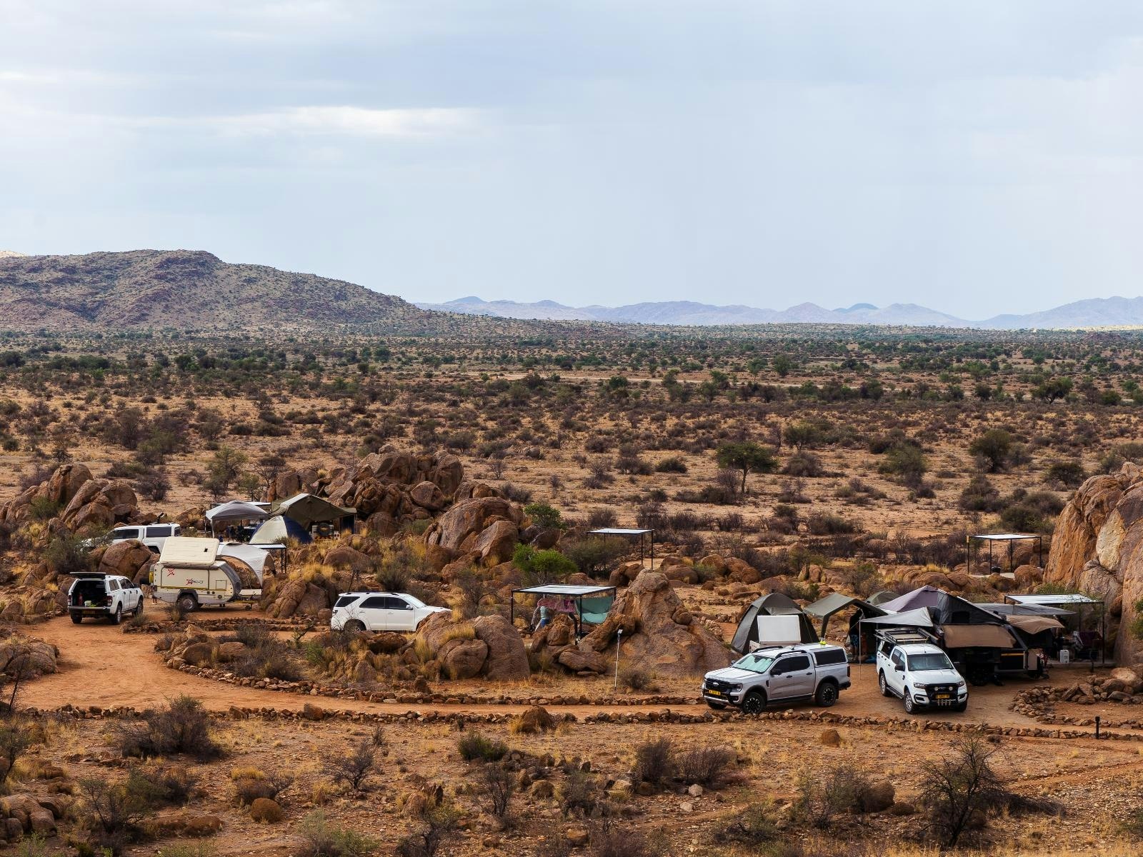 Stofpad Kampeerplek is geleë aan die rand van die Khomas-platorand, omring deur ongerepte berglandskap, net twee uur se ry vanaf Windhoek. Gerieflik geleë op pad na Sossusvlei via Solitaire, is dit die perfekte ontsnapping vir gesinne en vriende wat rustigheid en natuurskoon soek.