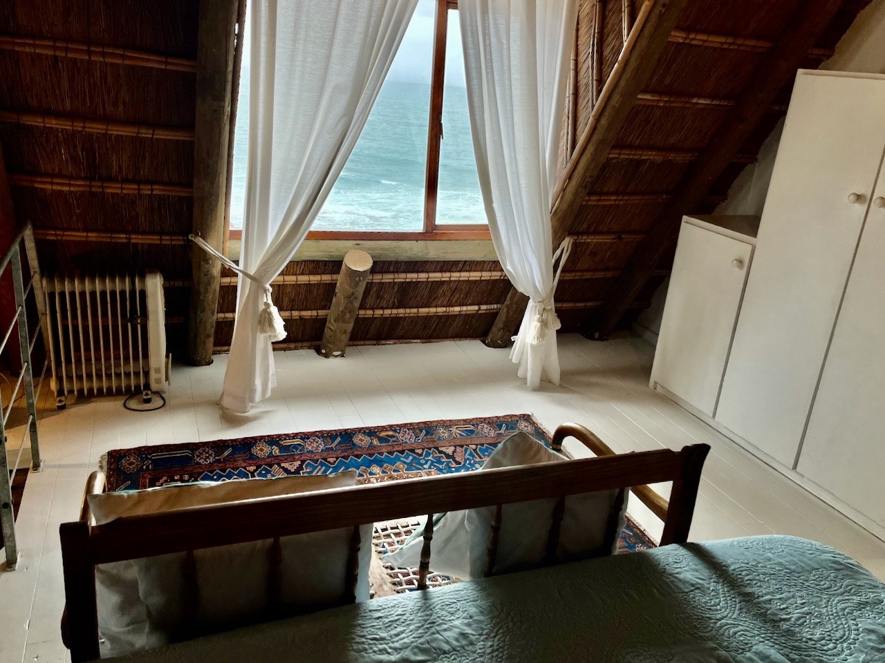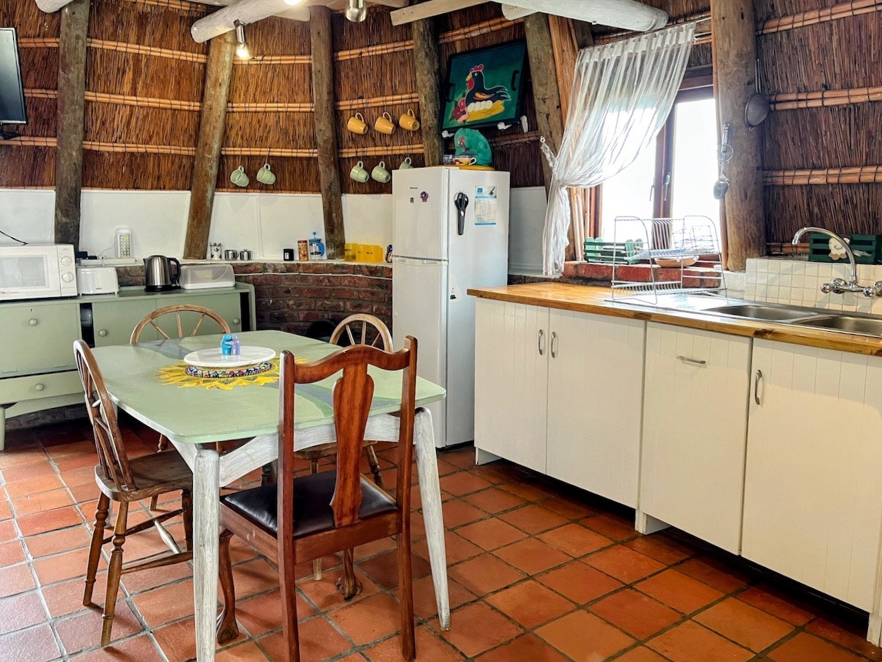 Accommodation comprises a fully equipped unit which can accommodate 4 guests. Two in an en-suite bedroom under Cape thatched eaves on the first floor and 2 in a reed-screened room with a double bunk bed with separate toilet and basin on the ground floor. The second sleeping area is recommended for children/teenagers.