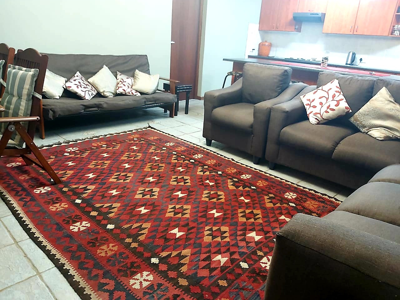 Die huis het 2 en suite-badkamers, 'n ruim oopplan-leefarea en -kombuis. Die slaapkamers het dubbelbeddens en die en suite-badkamers het storte.