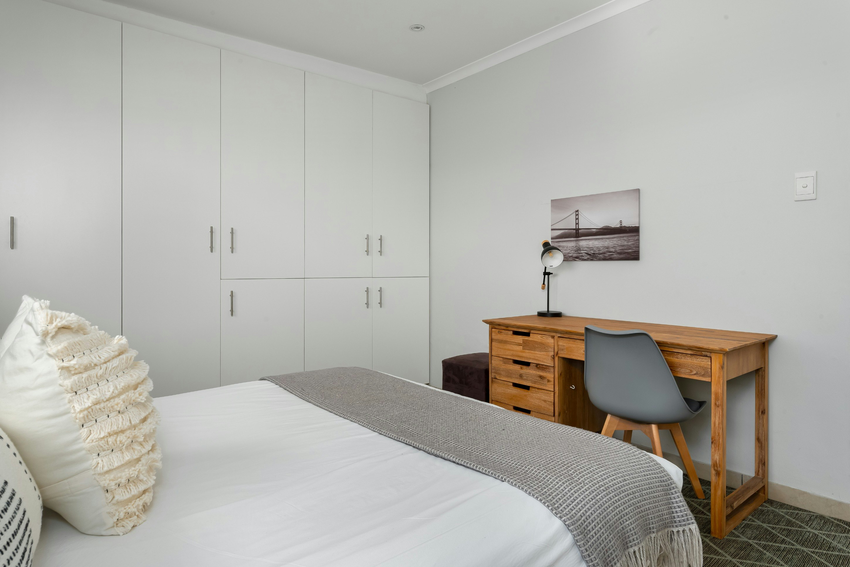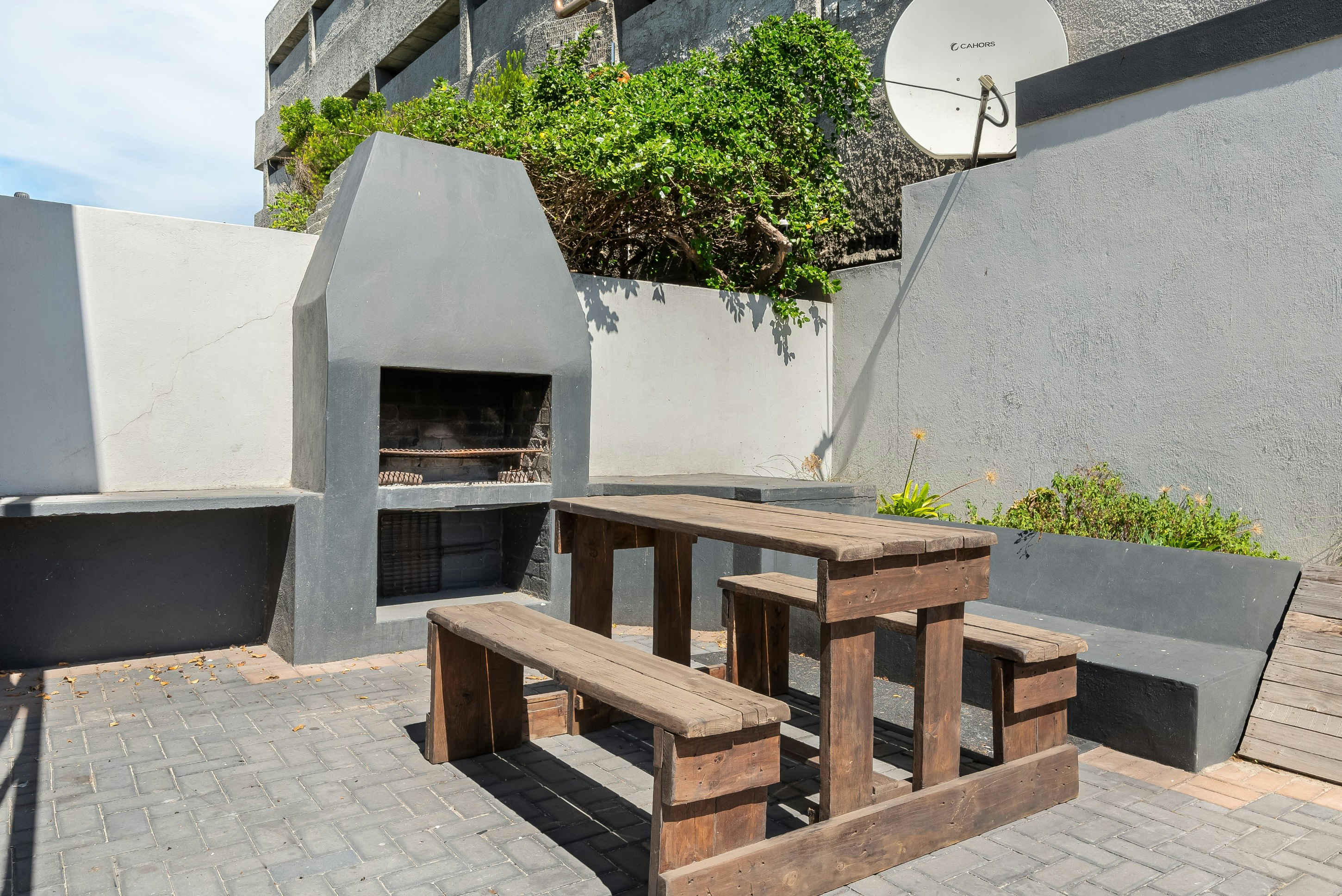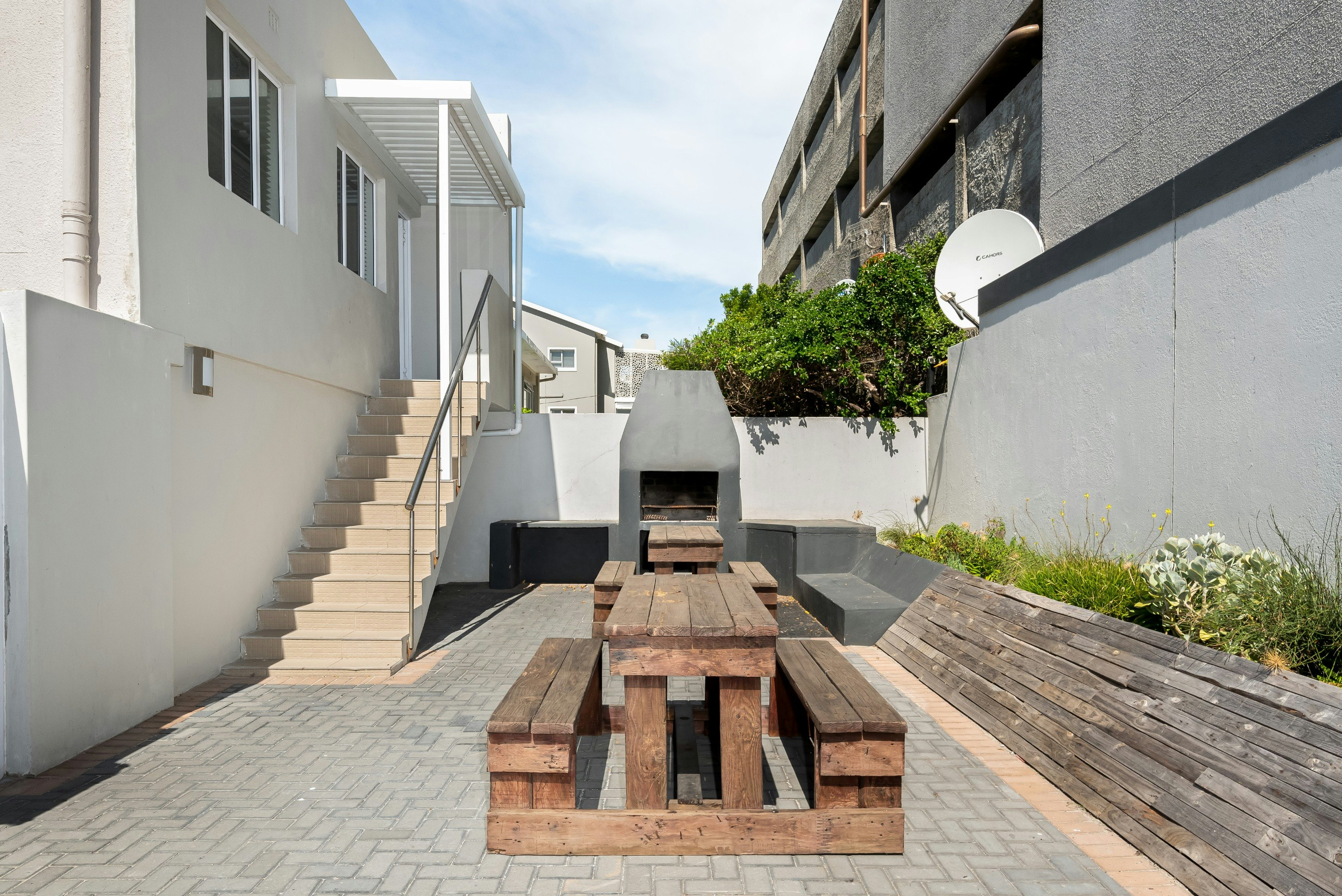 Outside, guests can enjoy a private courtyard with a built-in braai, fire pit, and outdoor seating. Parking is convenient, with a designated bay at the property entrance, ample street parking opposite the building, and additional spaces nearby. Blouberg Beach is a short walk away and is famous for its white sandy beaches, views of Table Mountain, and a variety of beachfront restaurants.