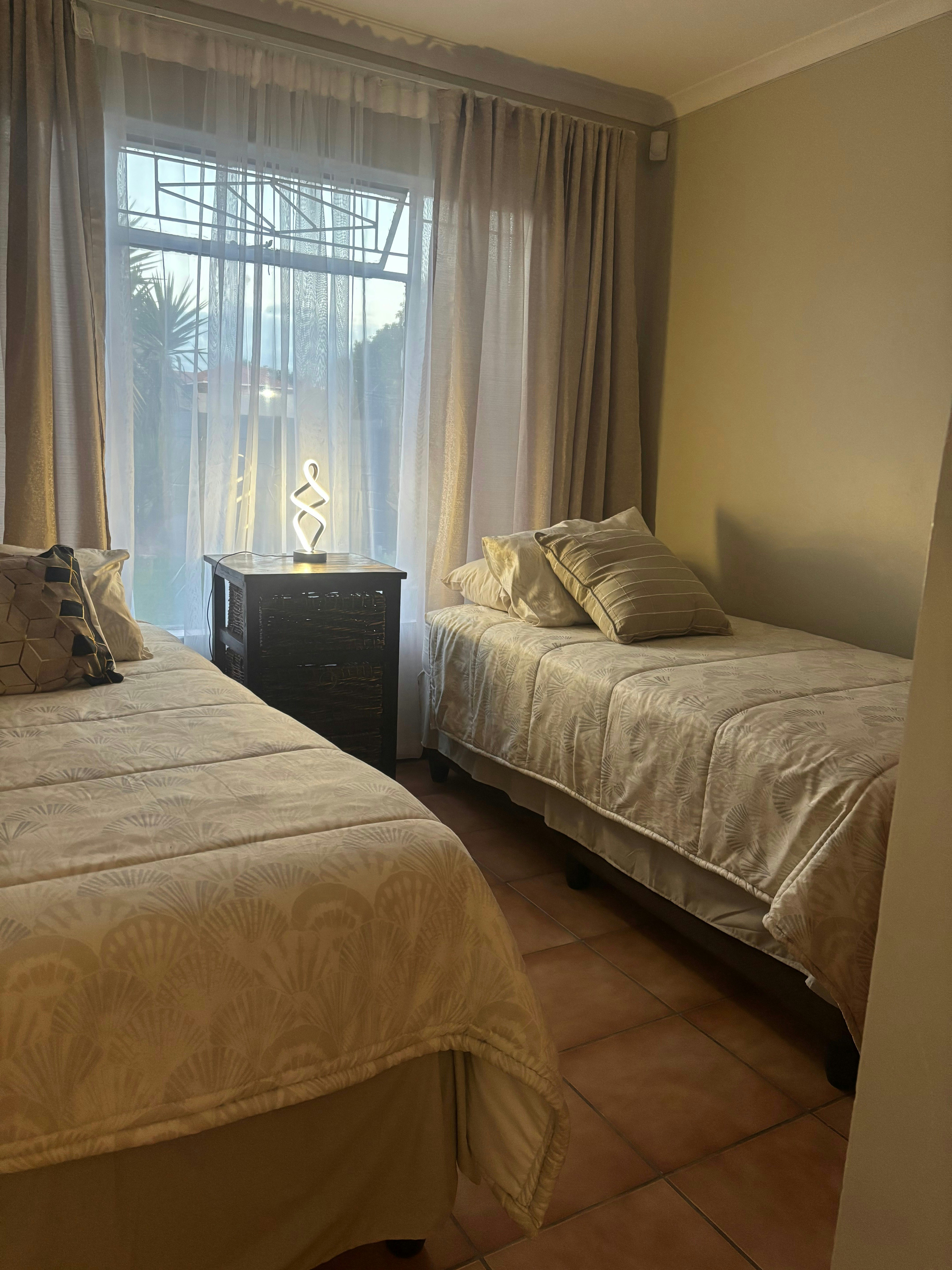 Unit 4 Stylus Self Catering comprises a king-size bed and 2 single beds. The private bathroom is fitted with a shower, basin and toilet. The TV has selected DStv channels and the air-conditioning works on a prepaid coupon system which the guest can purchase directly through their banking app or through the owners.