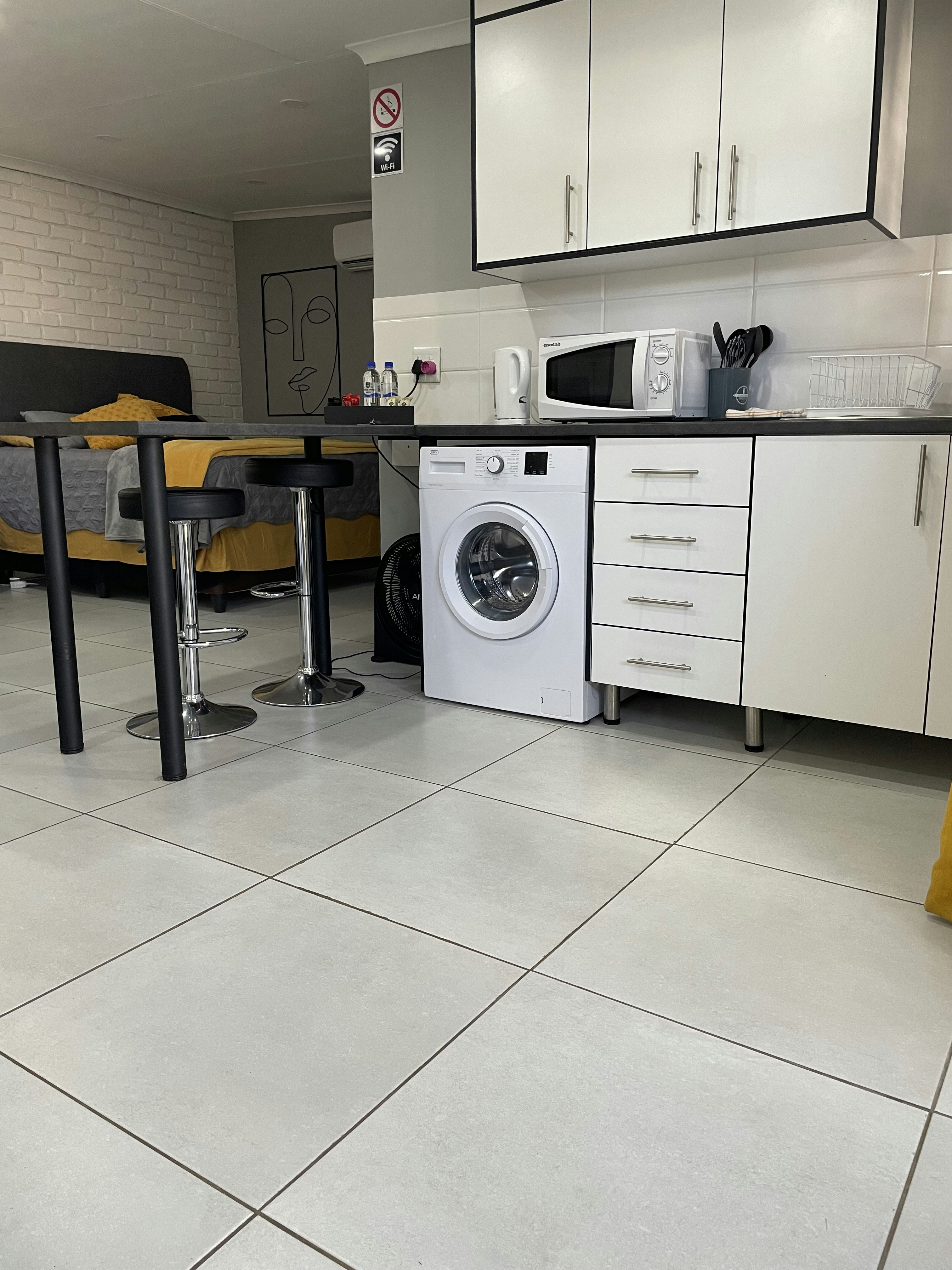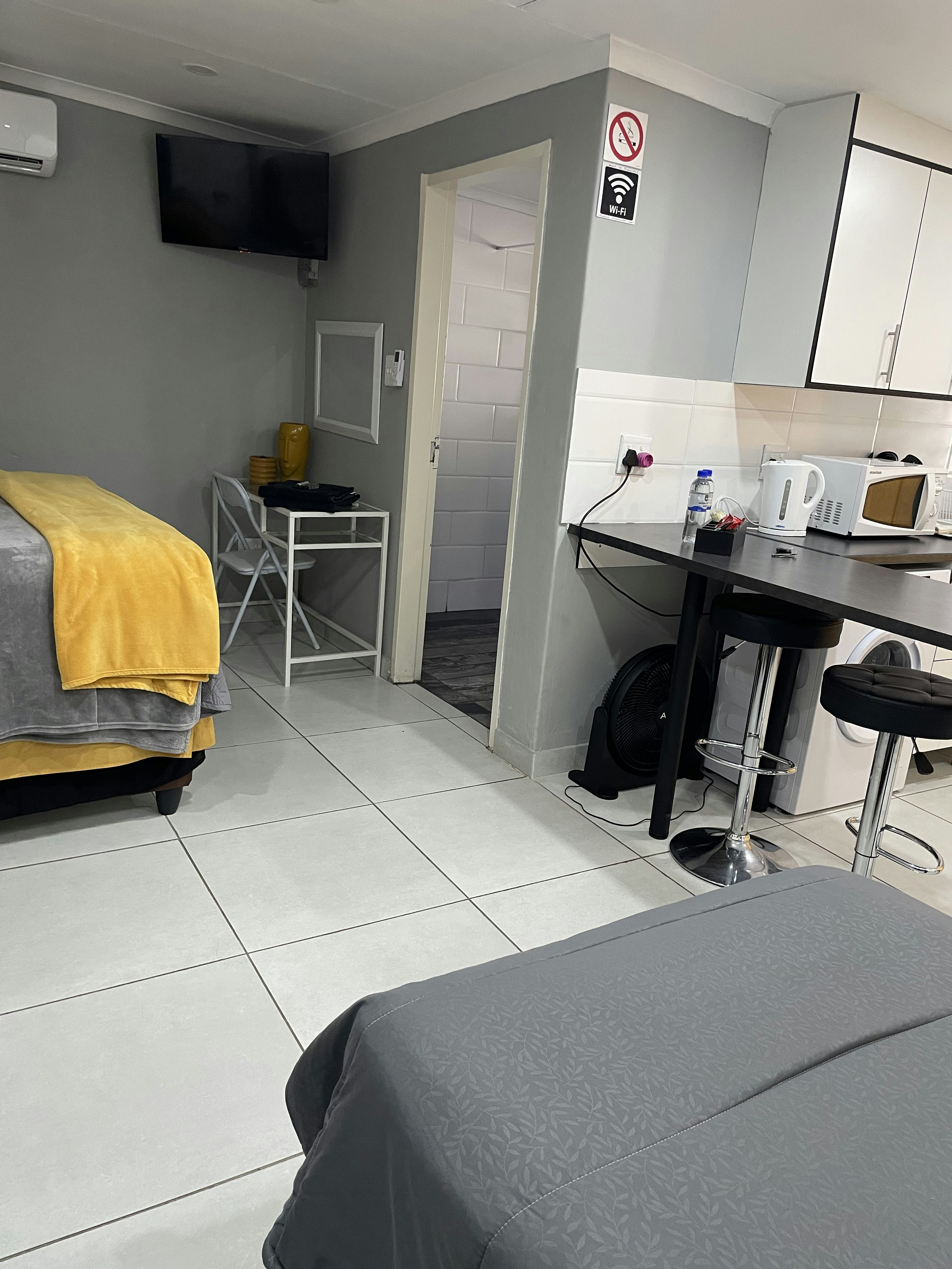 Unit 2 Stylus Self-catering is ideal for business travellers and has 1 bedroom with 2 3/4 beds. There's a TV with DStv, Wi-Fi and a separate bathroom with a shower, toilet and basin. Die kitchenette is equipped with a fridge, single stove plate, microwave, kettle, iron and washing machine. The unit is on the owner's premises with safe parking behind an automatic gate.