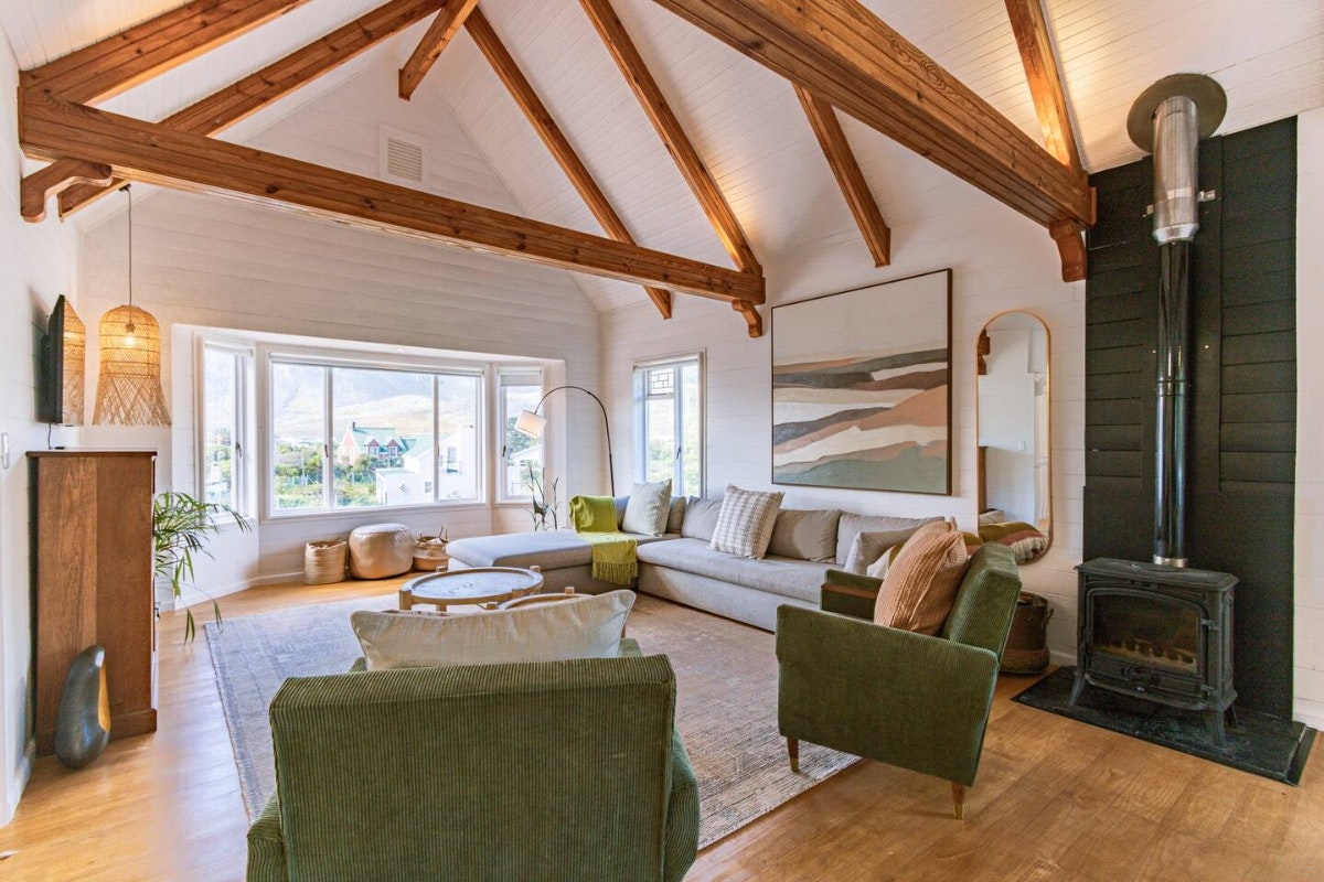 Die oopplan-leefarea beskik oor gemaklike sitplek, 'n TV, 'n knus kaggel en 'n eetkamertafel. Die kombuis is goed toegerus met 'n yskas-vrieskas, stoof, oond, mikrogolfoond, skottelgoedwasser en koffie- en teemaakgeriewe. Gaste kan op die balkon ontspan, die pragtige uitsigte geniet en gebruik maak van die braaigeriewe. Parkering op die perseel word voorsien.