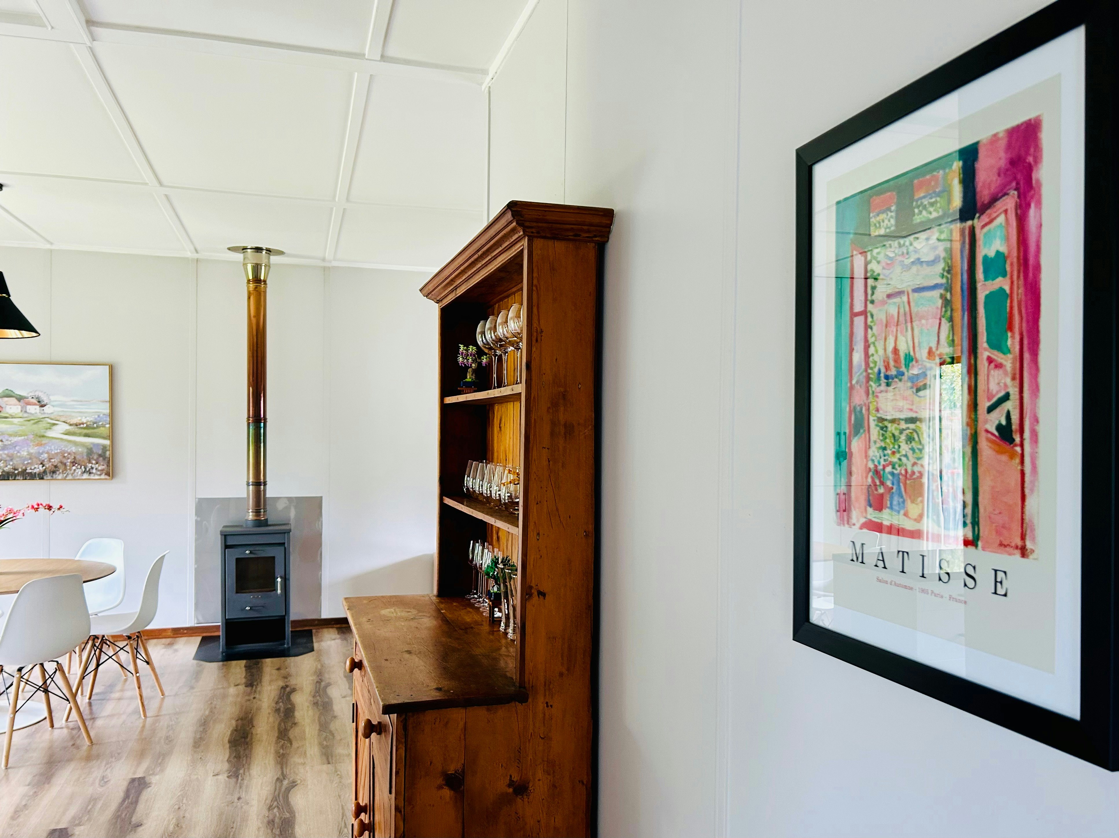 Die goed toegeruste kombuis sluit 'n gasstoof, oond, mikrogolfoond, yskas-vrieskas, ketel, broodrooster en kookgerei in, wat maaltydvoorbereiding 'n plesier maak. Die eetarea bied sitplek vir 6 gaste. Gaste kan ontspan in die ruim oopplan-leefarea, wat 'n kaggel, gemaklike sitplek en 'n TV met volledige DStv het. Gratis WiFi is beskikbaar.
