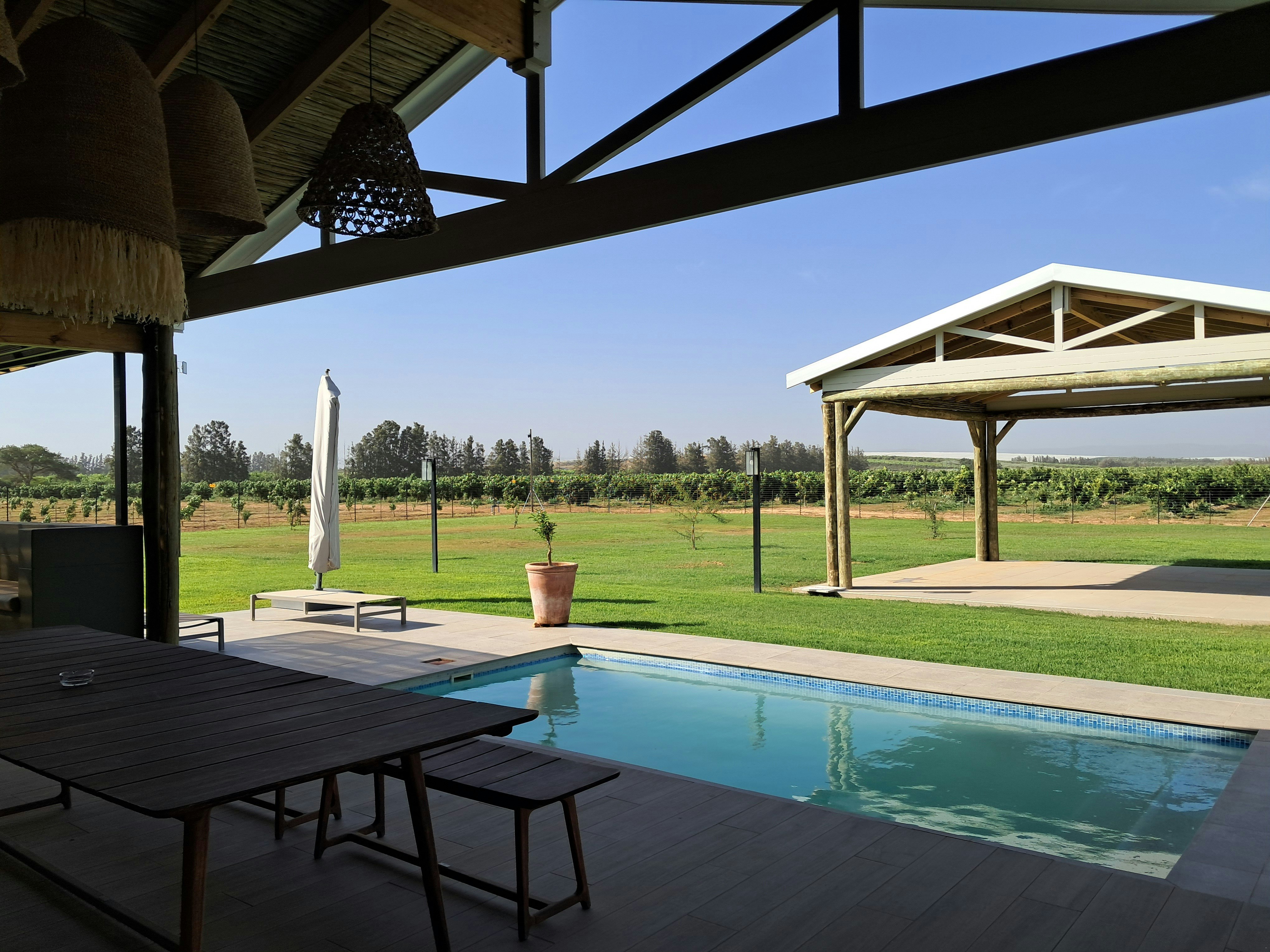 It was a pleasant getaway. Quiet farm atmosphere, beautiful surroundings. Cooled off in the swimming pool and slept very well.