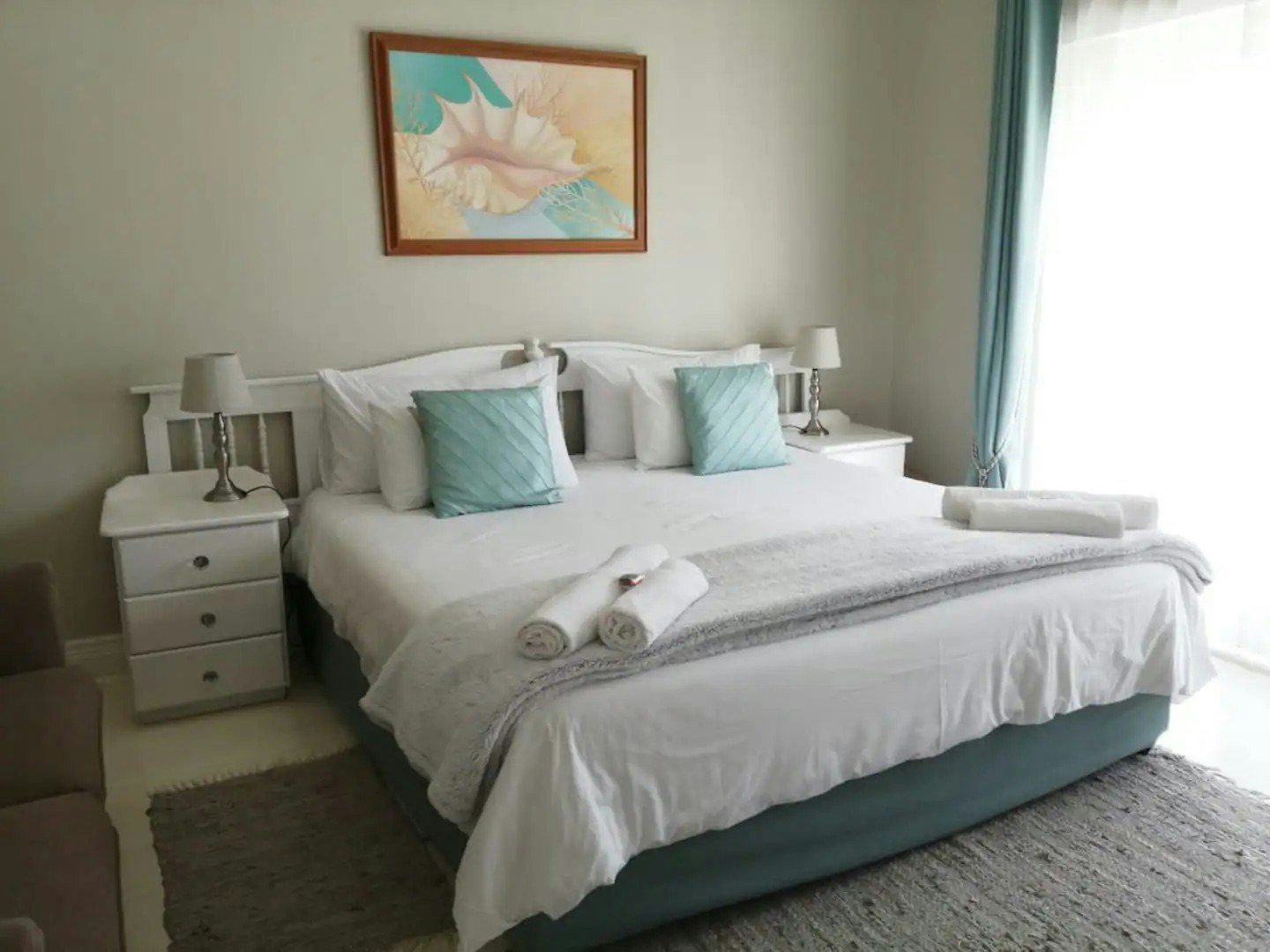 This property can comfortably accommodate 8 guests at a time and comprises 4 bedrooms and 3 en-suite bathrooms. The first bedroom is furnished with a king-size bed, the second bedroom has a king-size bed, the third bedroom has a queen-size bed and the fourth bedroom has a double bed. A bath and shower are available in the main bathroom, while the other 2 bathrooms each have a shower. The fourth bedroom shares a bathroom but with its own entrance. All linen and bath towels are provided. Guests need to bring their own beach towels.