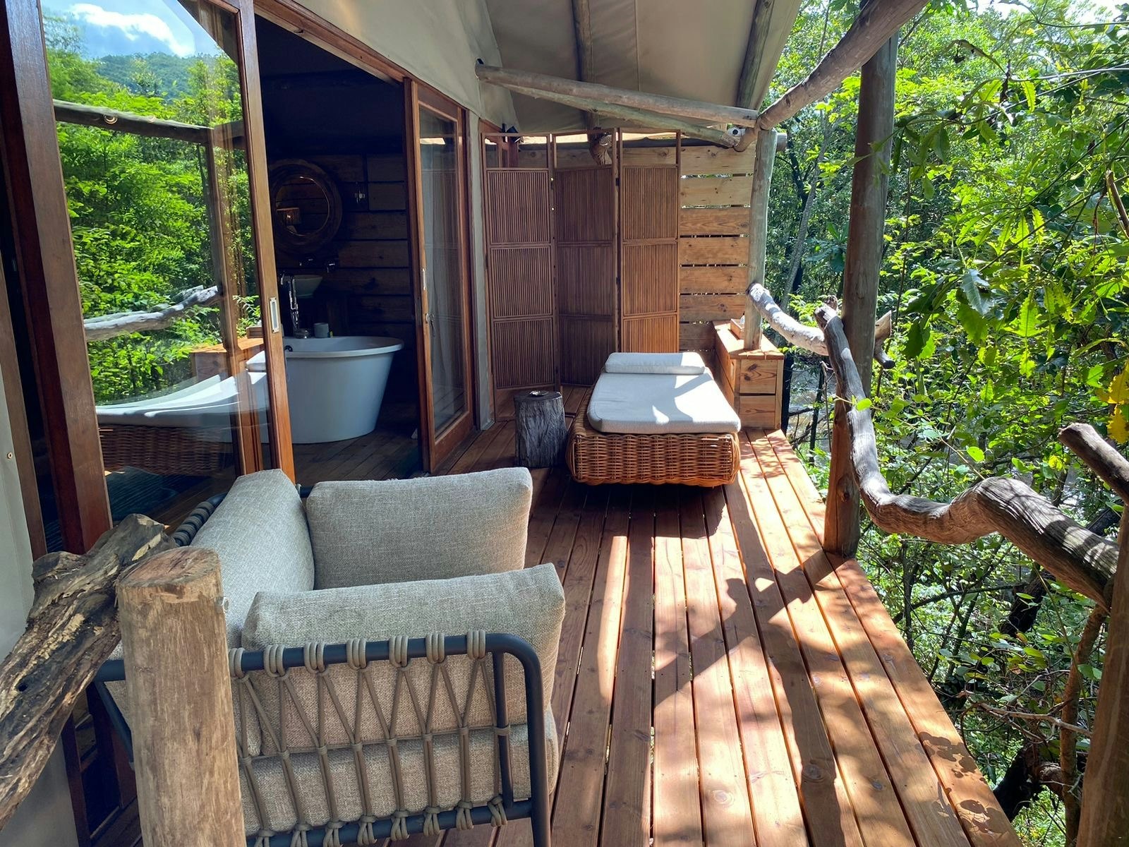 Accommodation at Summerfields Rose Retreat and Spa comprises 14 luxury tented suites. Each suite features an open en-suite bathroom with an outdoor shower and luxury bath. In addition, each suite contains air-conditioning, a ceiling fan, an electronic safe, a bar fridge, bath gowns, quality toiletries, mosquito nets, and other luxuries. Breakfast is served in the fully licensed, award-winning River Café, where other delectable meals can be arranged.