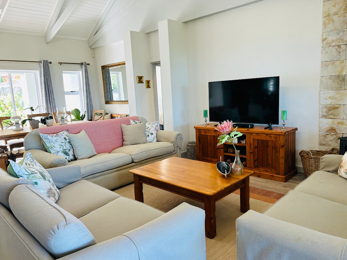Die oopplan-kombuis is volledig toegerus vir selfsorg met 'n yskas-vrieskas, 'n gasstoof en elektriese oond, 'n mikrogolfoond, eetgerei, breekware en tee- en koffiemaakgeriewe. Daarbenewens is daar 'n skottelgoedwasser, tuimeldroër en wasmasjien vir gaste se gerief. Die sitkamer en ingeslote stoep is gemeubileer met gemaklike sitplek en beskik oor slim-TV's met 'n volledige verskeidenheid DStv-kanale en Netflix. Die sitkamer het ook 'n lieflike kaggel.