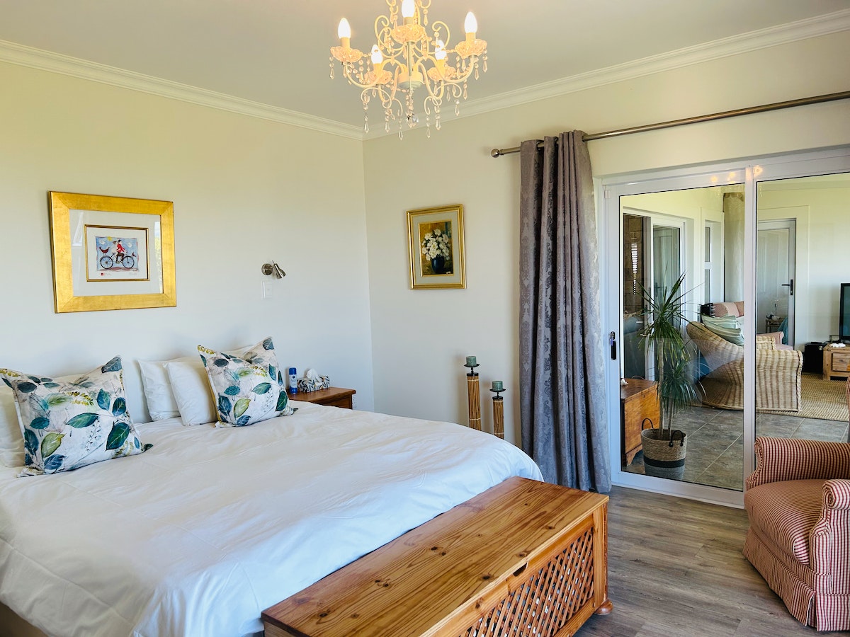 Die huis bied slaapplek vir 6 gaste en bestaan uit 3 gemeubileerde slaapkamers. Die hoofslaapkamer is gemeubileer met 'n koninggrootte bed en het oseaanuitsigte en toegang tot die tuin. Dit het 'n en suite-badkamer met 'n bad, stort, wasbak vir hom en haar, en toilet. Die tweede slaapkamer is gemeubileer met 'n dubbelbed. Dit het 'n aangrensende badkamer met 'n stort, wasbak en toilet. Die derde slaapkamer is gemeubileer met 'n koninggrootte bed wat in twee enkelbeddens omskep kan word. Hierdie slaapkamer is op die berghelling en het 'n aangrensende badkamer met 'n stort, wasbak en toilet. Vars linne en handdoeke word voorsien.