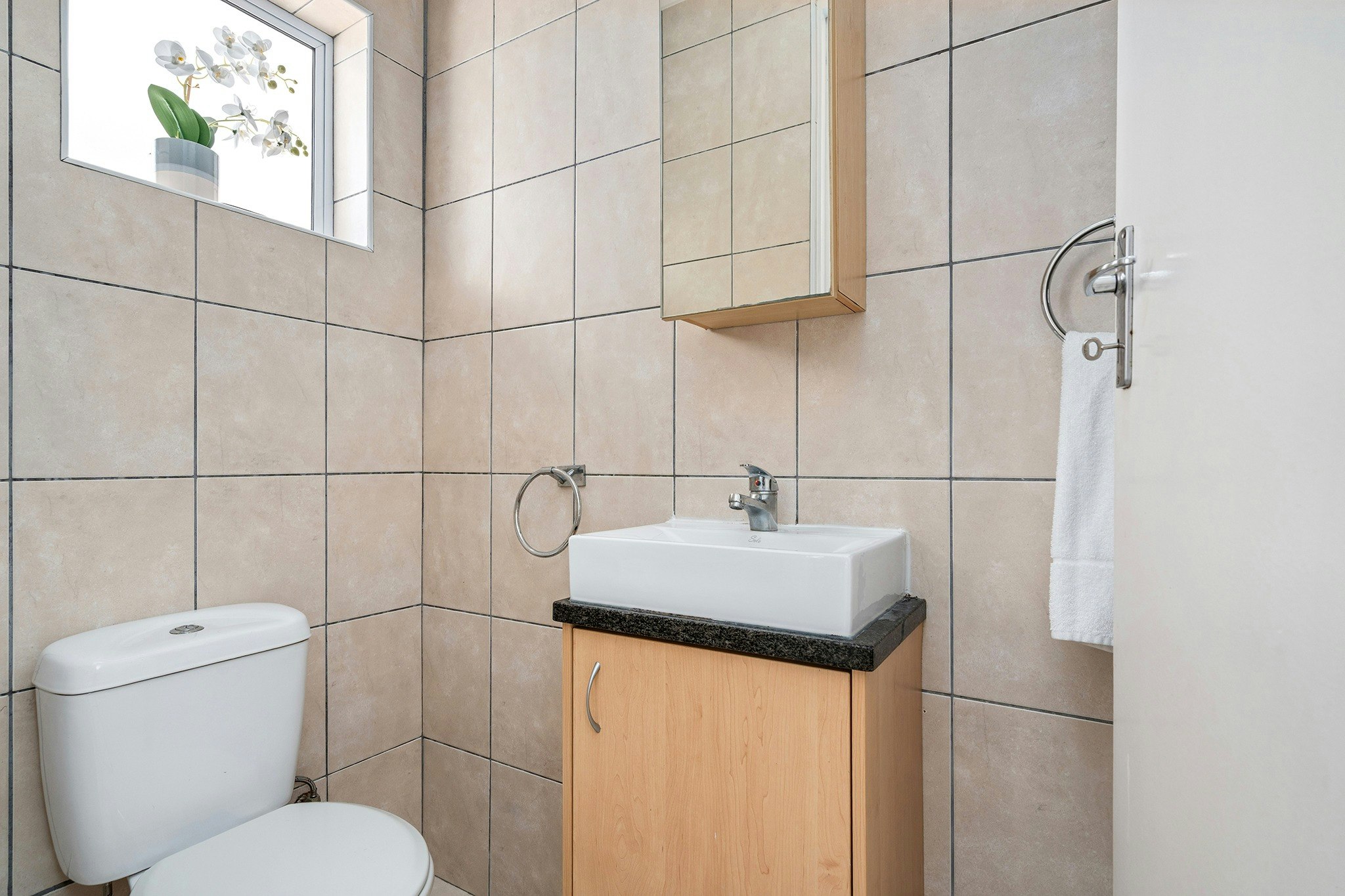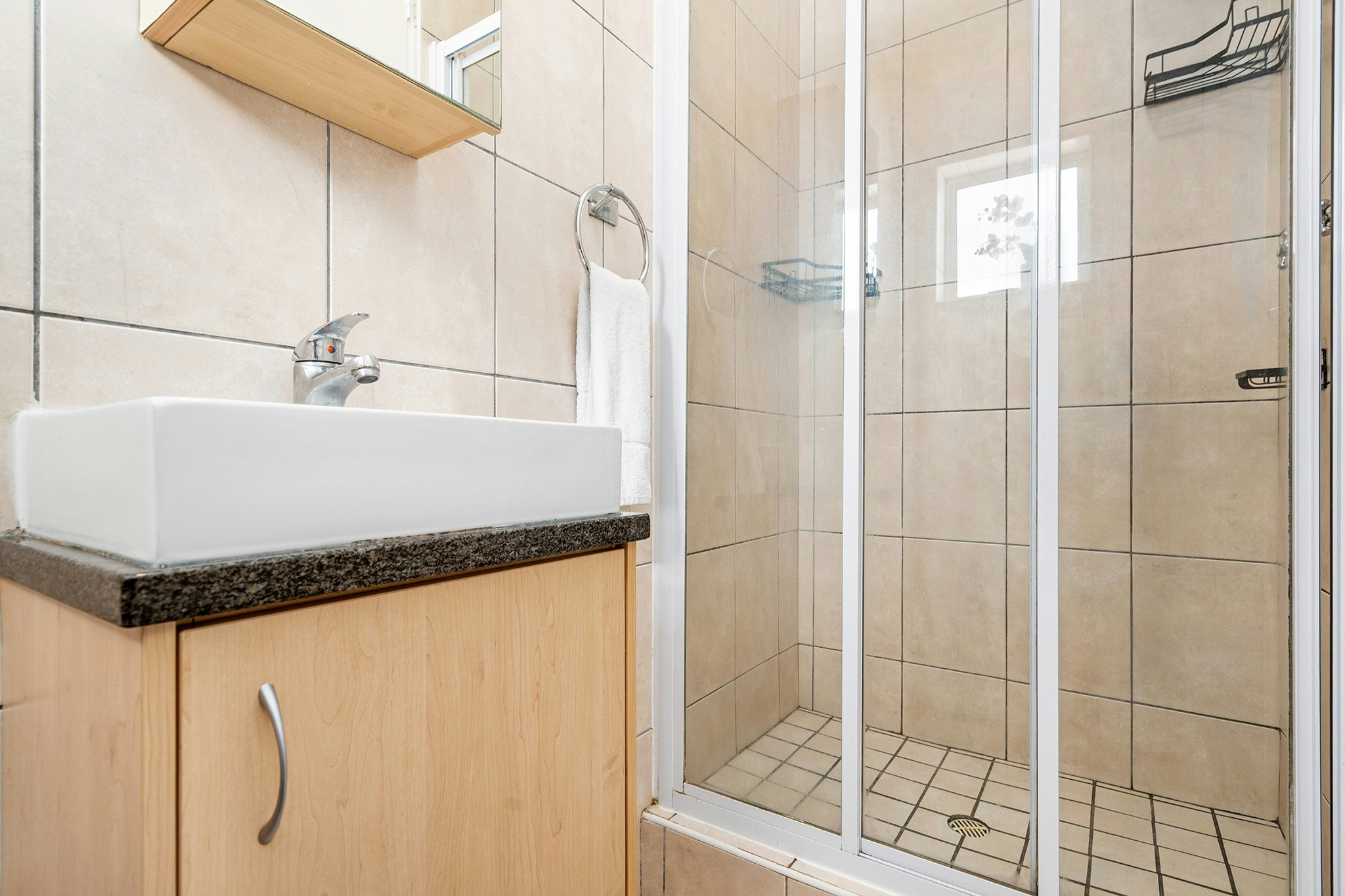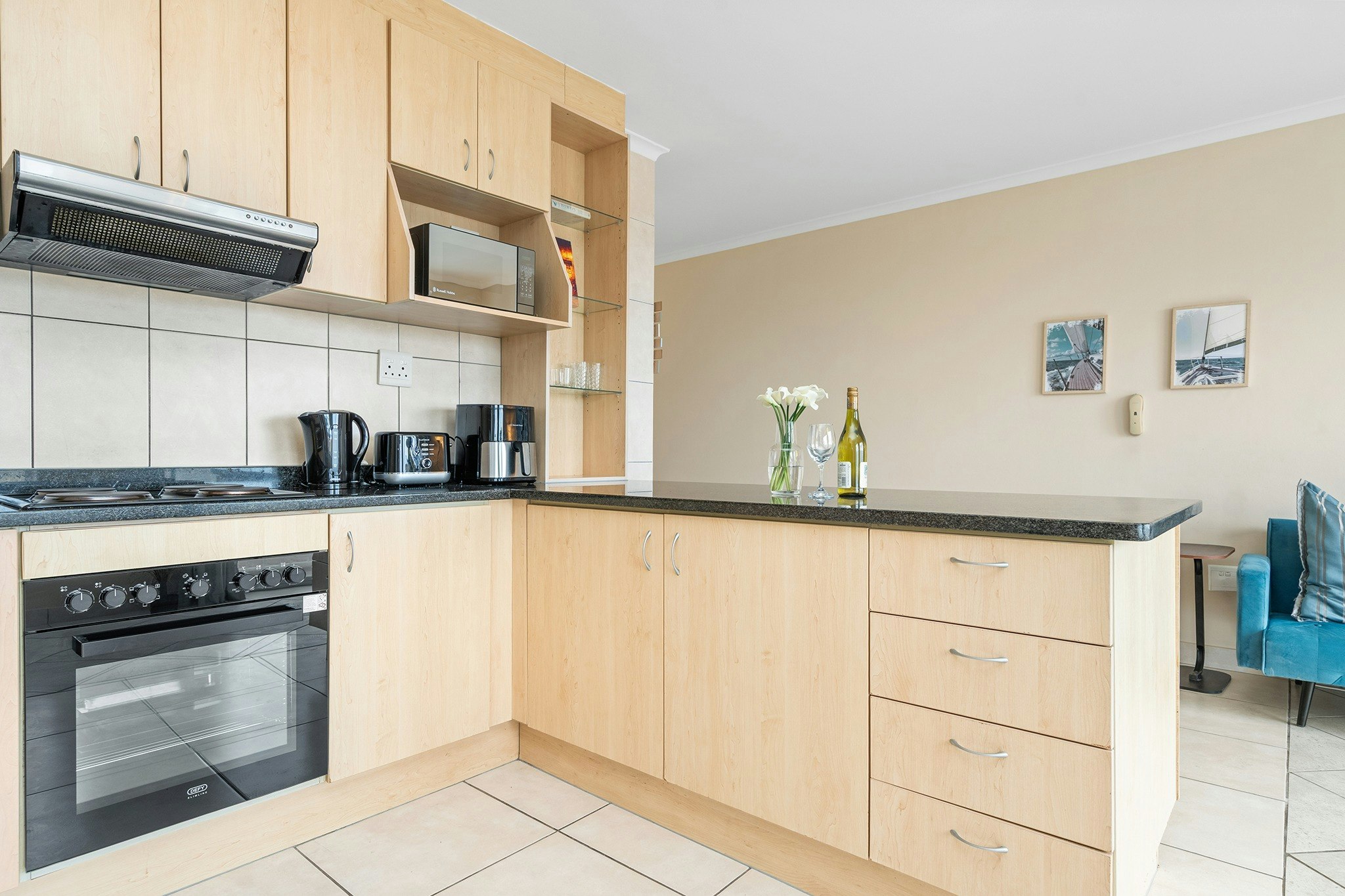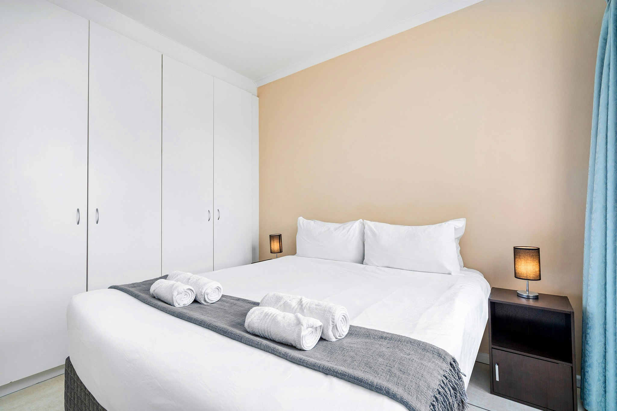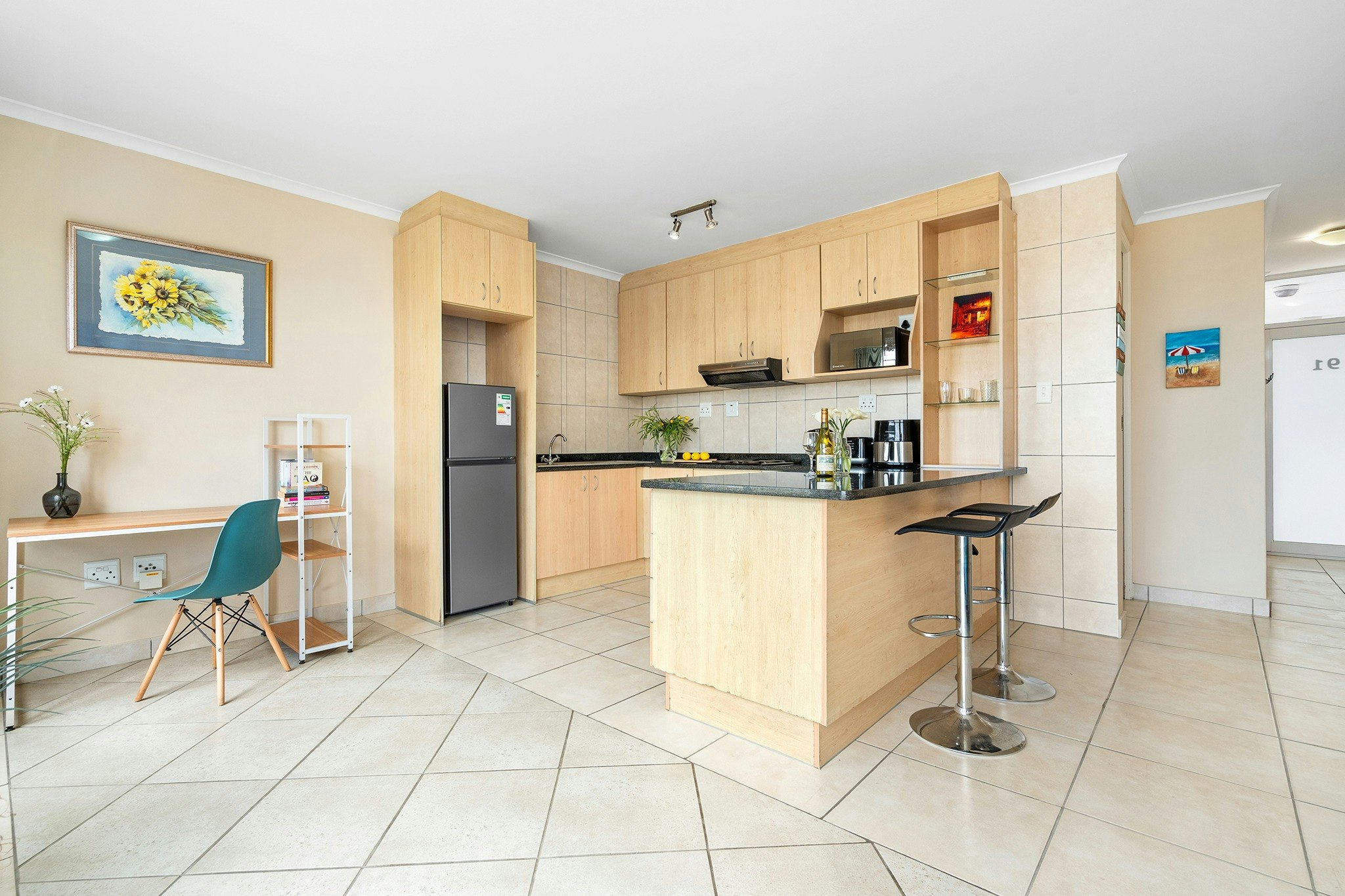 Guests have access to a communal swimming pool as well as secure onsite parking. The property is within walking distance of the beach and conveniently close to shops, restaurants, and the vibrant atmosphere of Muizenberg, making it an ideal choice for leisure or business stays.
