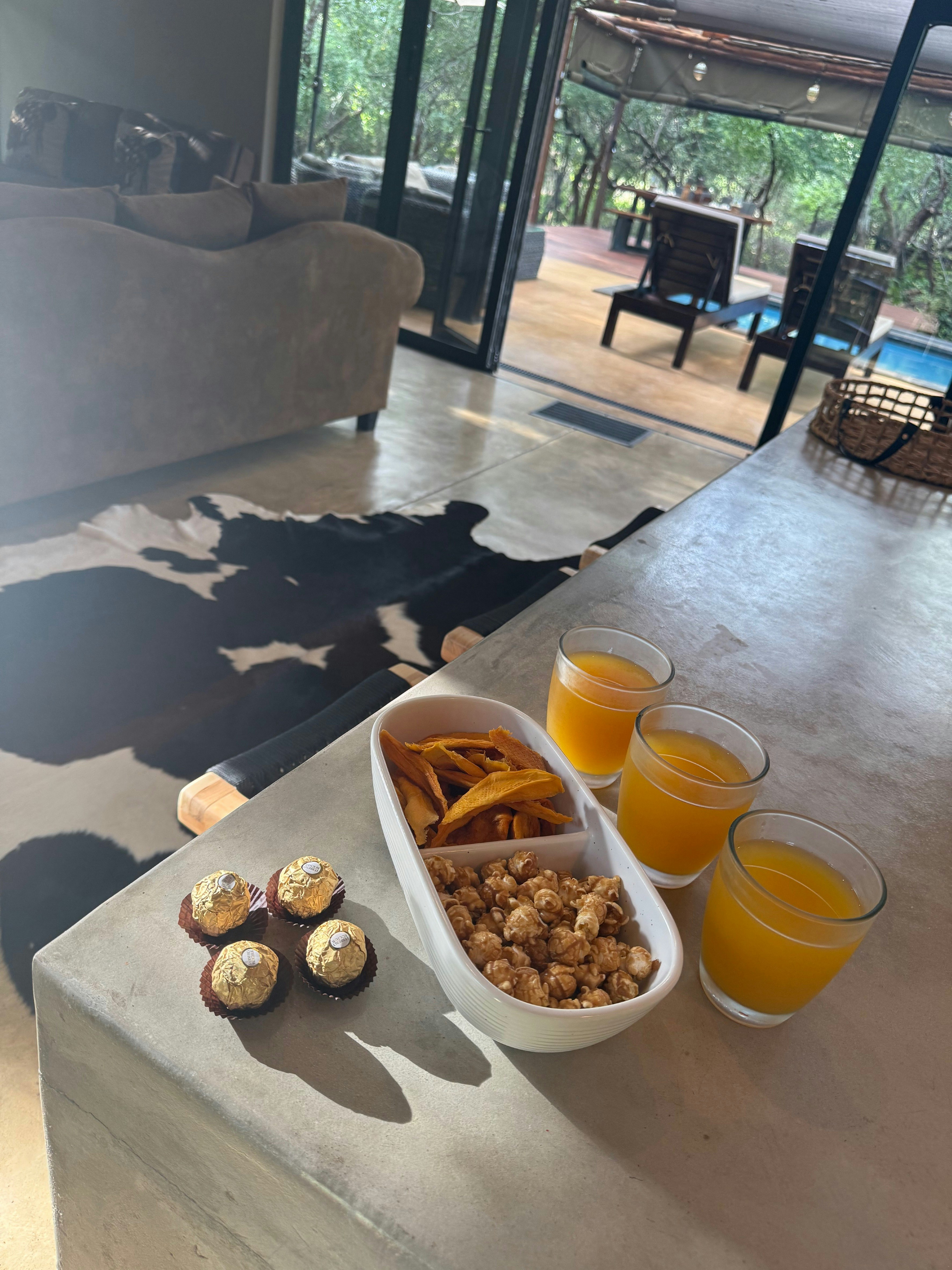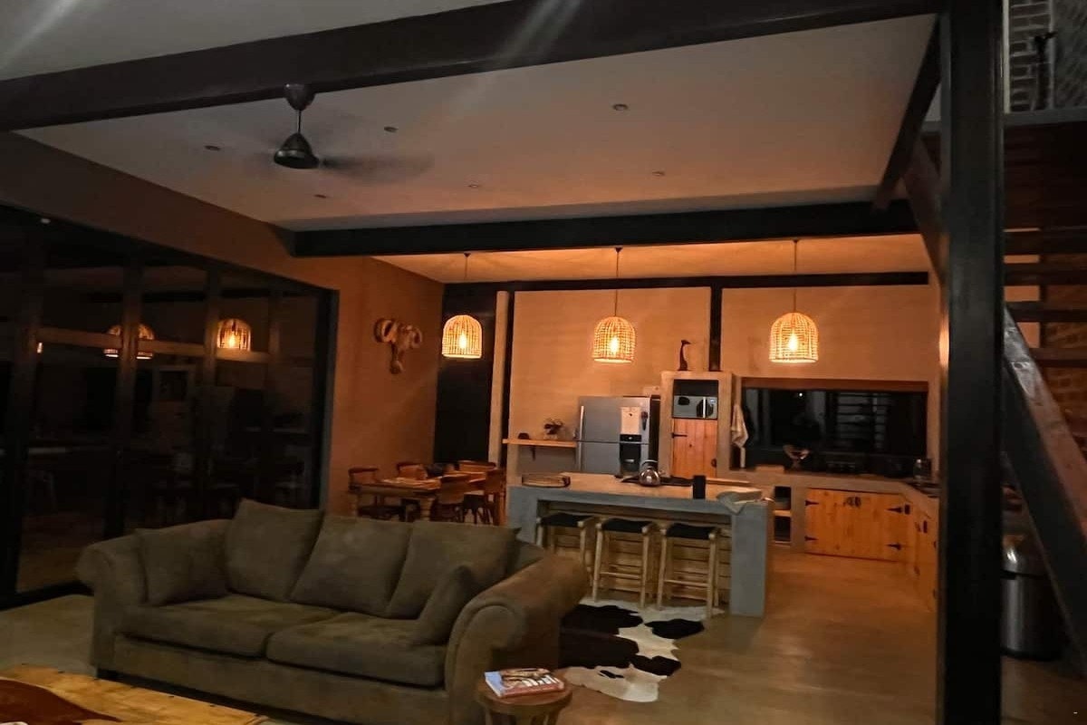 Gaste kan ontspan in die buitelug-vermaaklikheidsarea, wat 'n patio, 'n balkon met 'n hangmat, 'n privaat plonspoel, 'n vuurput, braaigeriewe en 'n boma insluit. 'n Buitestort bied 'n unieke natuurervaring. Gaste kan 'n privaat uitkykpunt met 'n 180-grade-uitsig oor die Krugerwildtuin geniet, kompleet met 'n tafel en vier regisseursstoele. Veilige, onderdakparkering is op die perseel beskikbaar. Die eiendom is volledig toegerus vir laaikrag met 'n kragopwekker, 'n omsetter, sonpanele en herlaaibare lampe. Verder word die eiendom besoek deur vrylopende wildlewe soos sebras, koedoes, kameelperde en vlakvarke, en gaste kan begeleide half- of voldag-safari's in die Krugerwildtuin of sonsondergang-rivierritte in Marlothpark teen 'n ekstra koste bespreek.