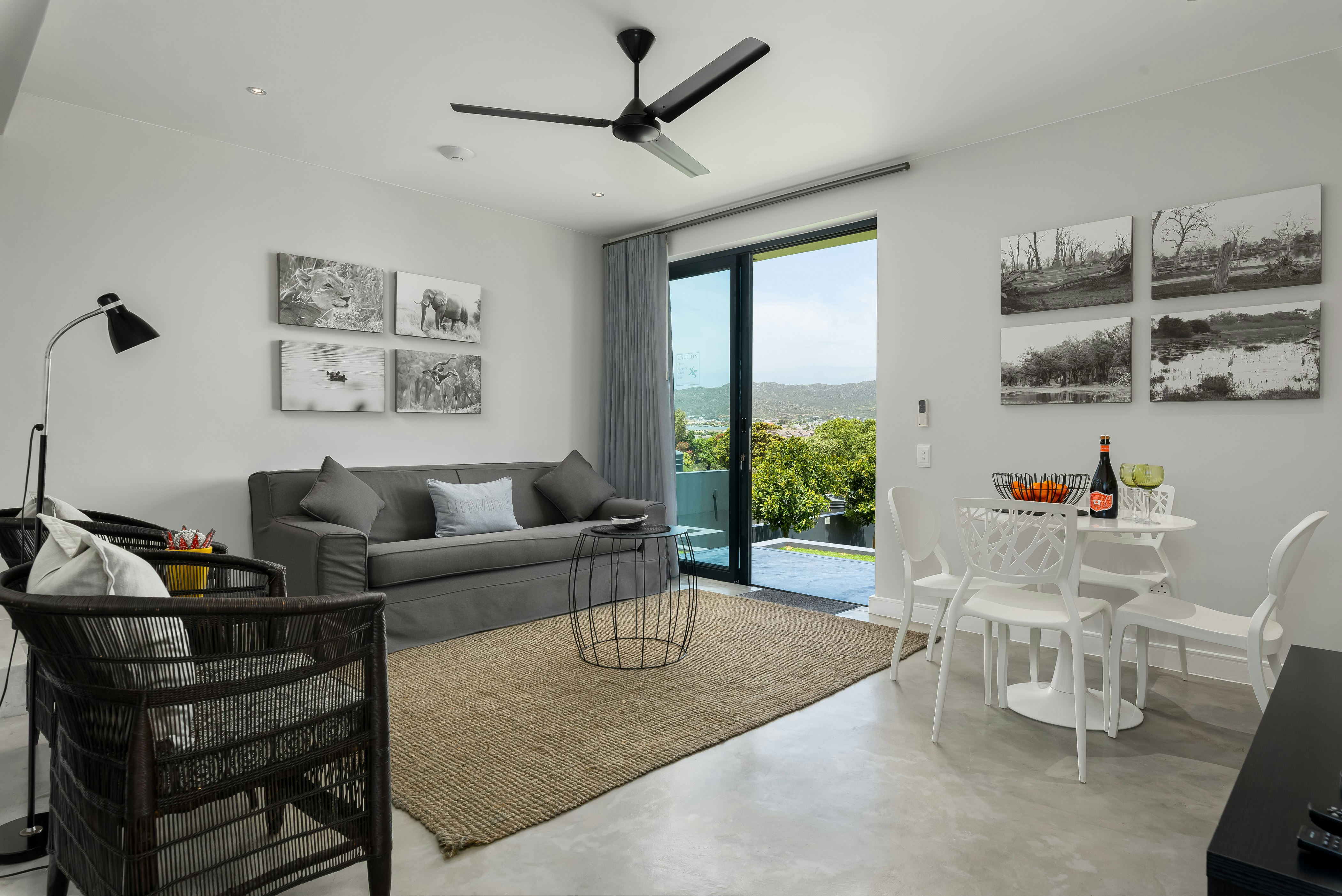 Sunset Splendour Guesthouse has 5 spacious apartments decorated with modern furniture and fully equipped kitchenettes. All the apartments have an open-plan living area with a lovely family lounge and a dining area which leads onto a private patio and garden overlooking the beautiful views of the sea, lakes and mountains surrounding us.