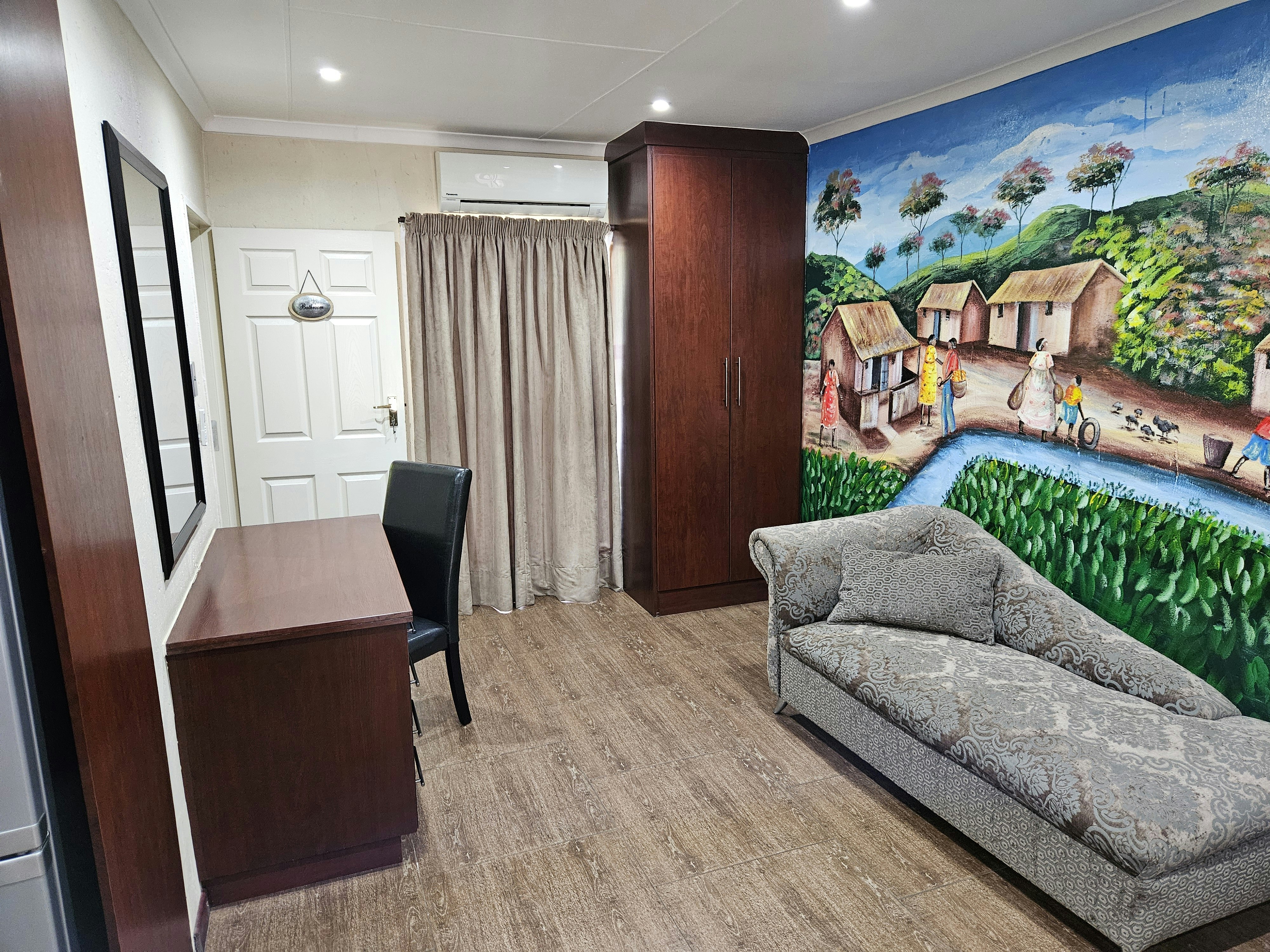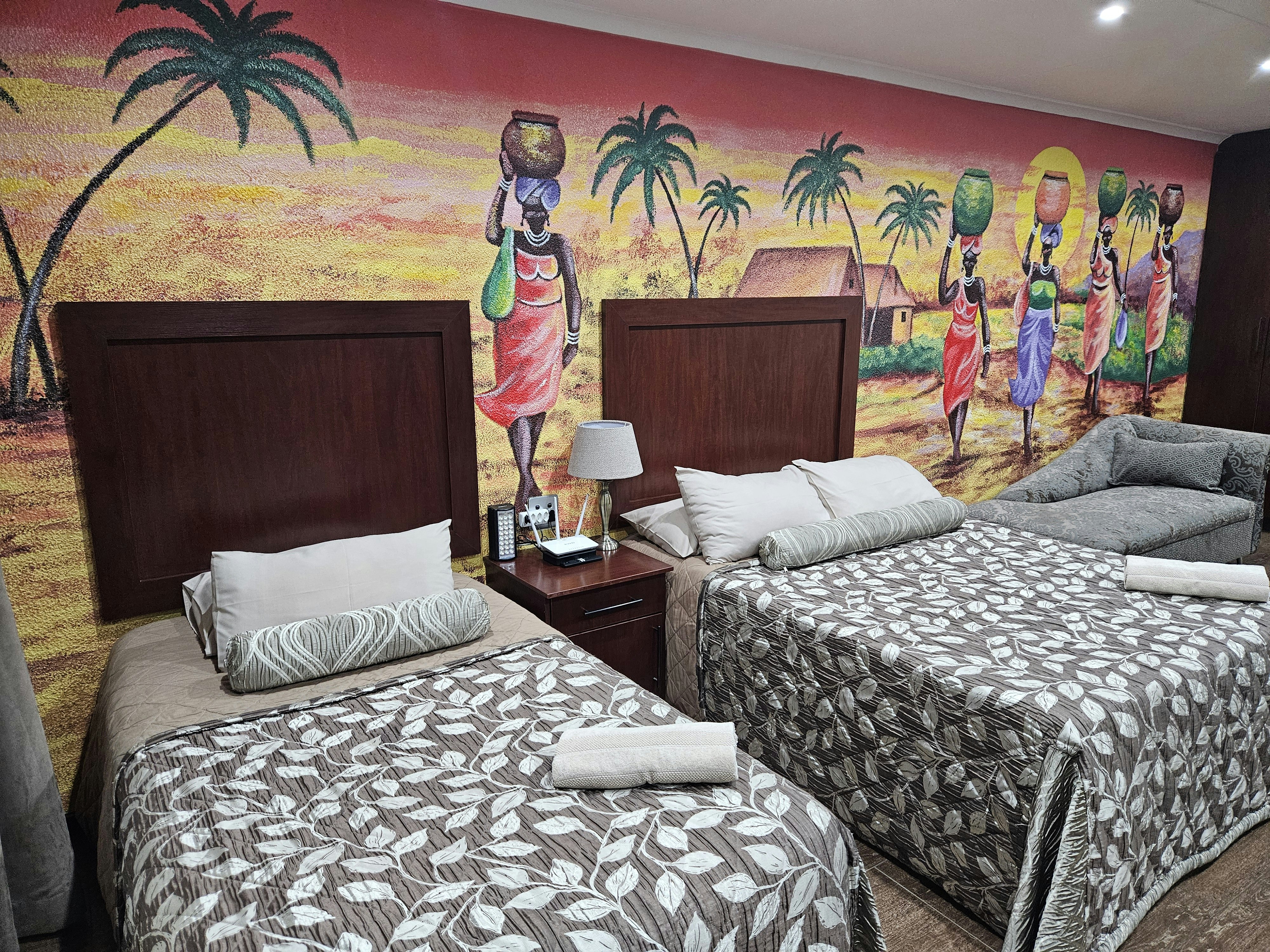 We have five beautifully designed self-catering units, all with individual entrances. Each self-catering unit has a fully equipped modern kitchen, an en-suite bathroom, a TV with My Family Cinema and YouTube, Wi-Fi, Air-conditioning, a designer's couch, a desk, built-in wardrobes, secure undercover parking, and daily cleaning services. We have created a restful retreat, a home away from home. It will win your heart. Your comfort is our goal. We believe in good service and value for money.
