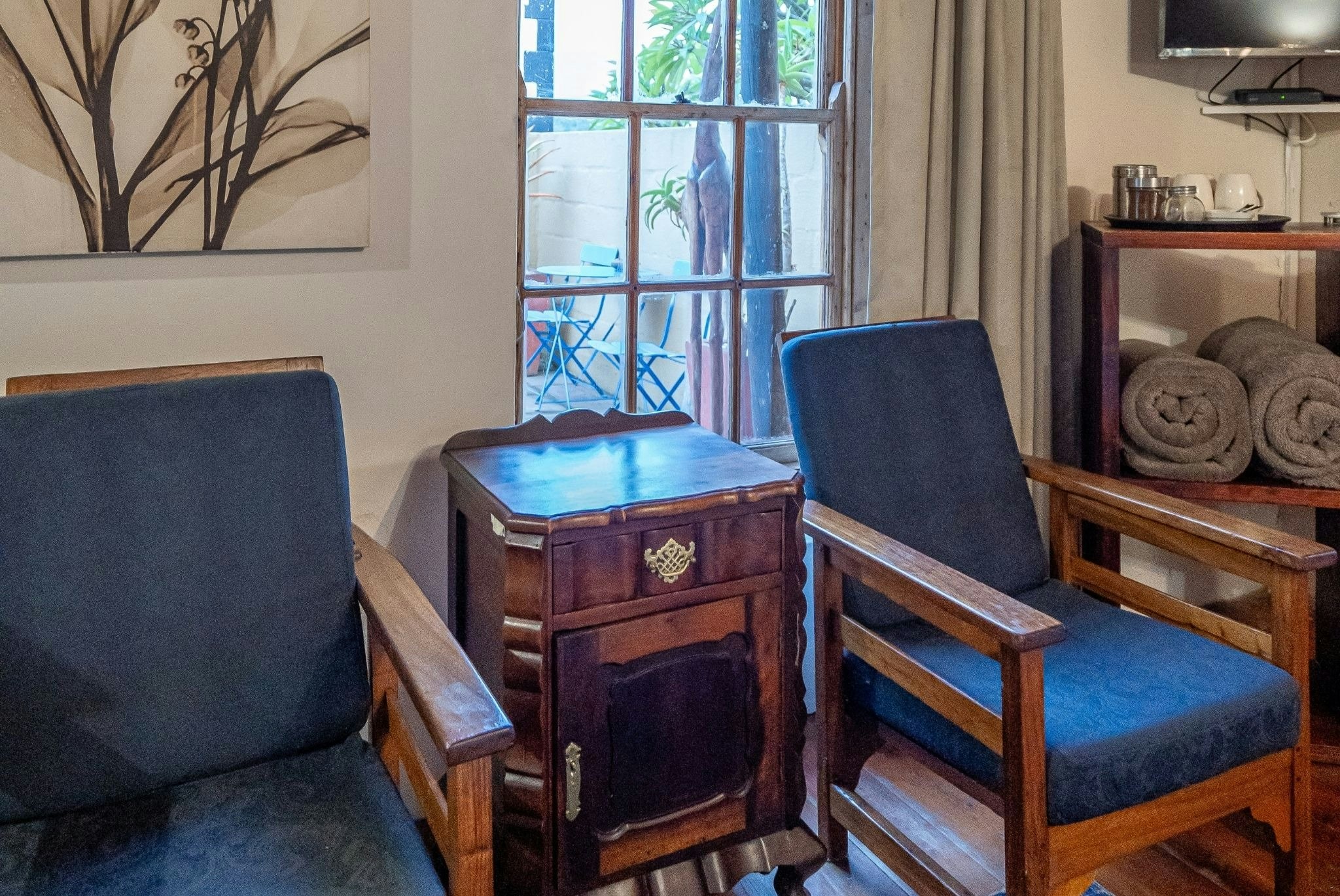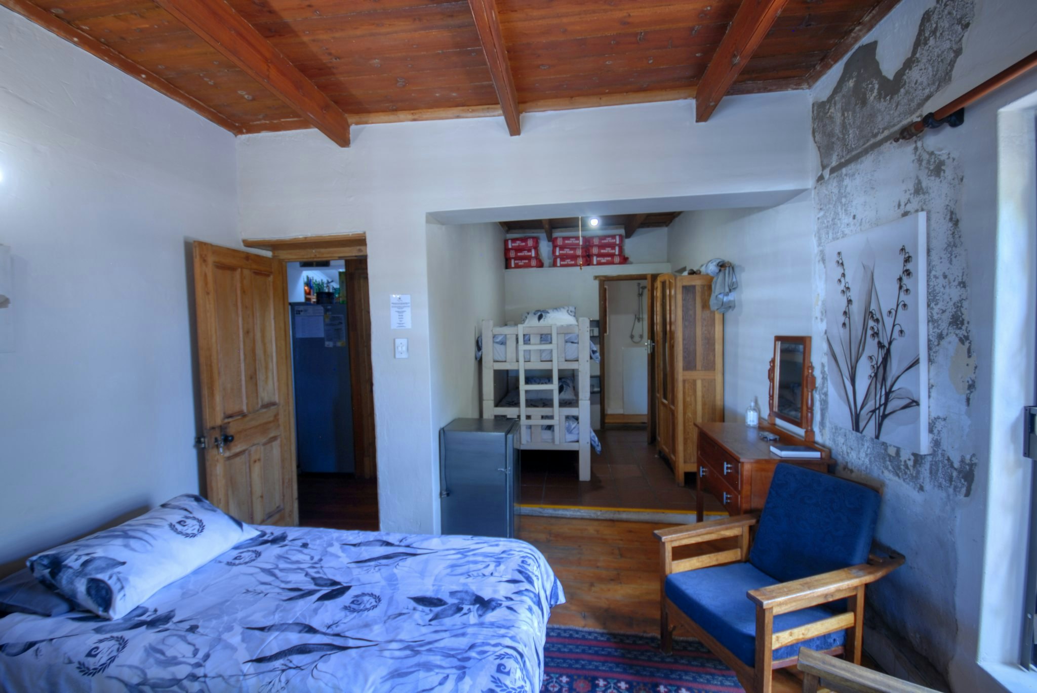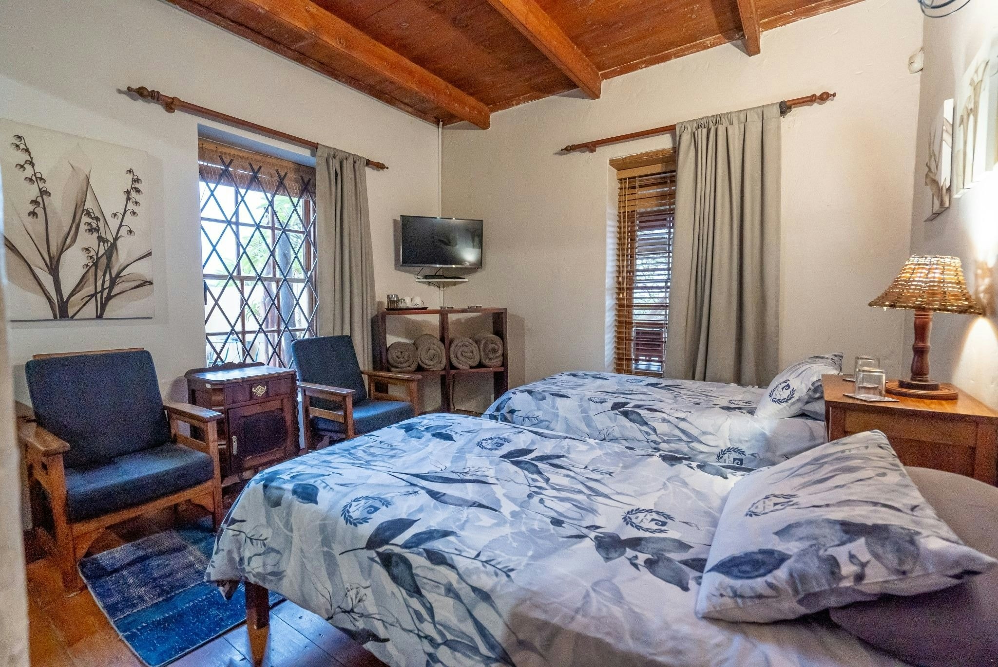 Verblyf word aangebied in 4 gastekamers in die hoofhuis, 1 selfsorgkothuis. Die kamers is individueel versier, en die gaste-sitkamer is toegerus met 'n TV met DStv-kanale. Die meeste van die kamers het elk 'n en suite-badkamer, en sommige het toegang tot 'n gedeelde badkamer. Die selfsorgkothuis is 'n ou skuur op die eiendom wat omskep is in 'n karaktervolle selfsorgkothuis bekend as The Barn.