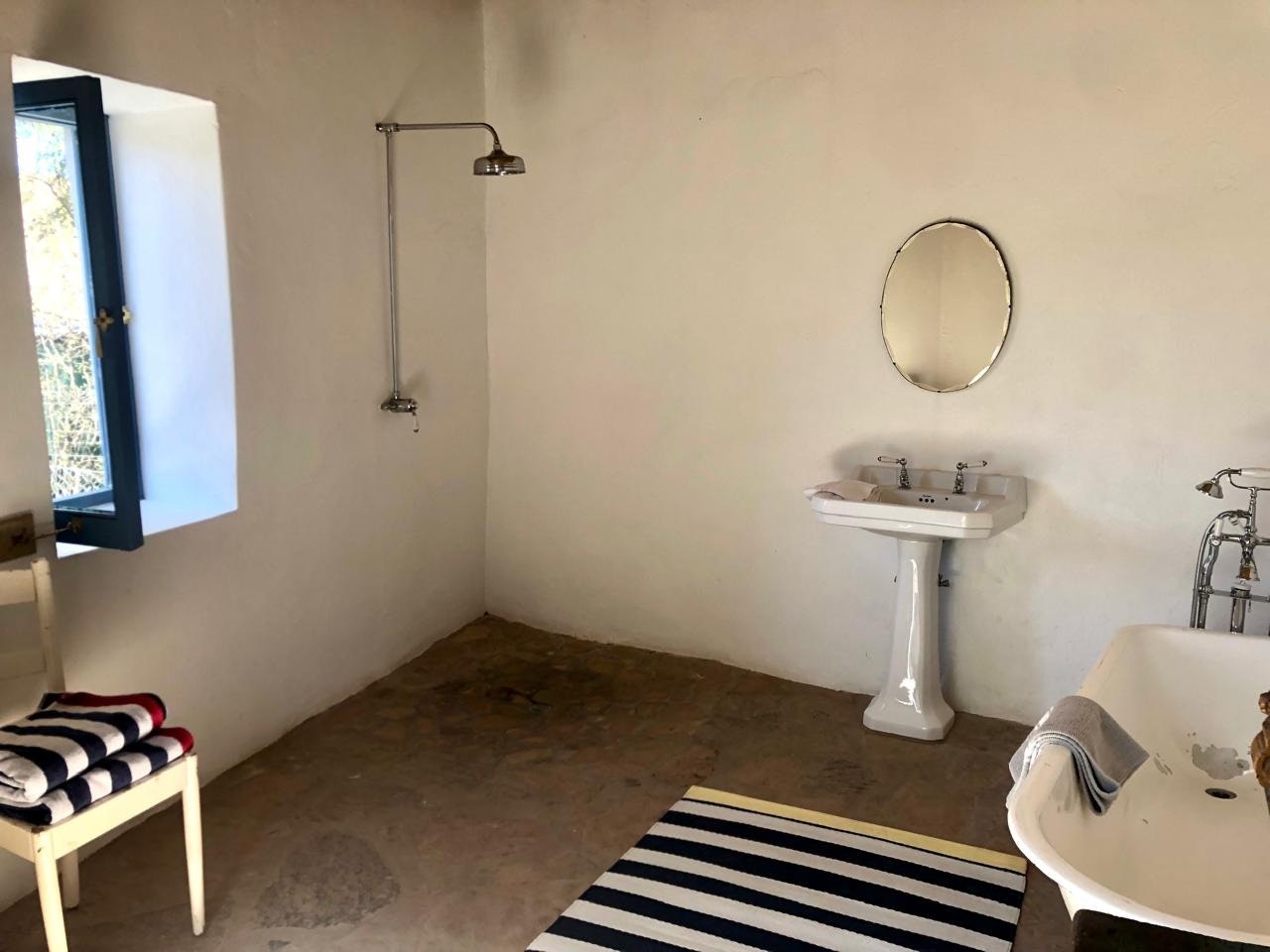 Accommodation is available in the Main House, which can host 8 guests, or in a variety of outside rooms that can accommodate 4 guests. Together, the Main House and outside rooms can host up to 12 guests. All bedrooms feature a double bed, and one outside room includes an additional single bed and a bunk bed. Each unit has a private bathroom with a toilet, washbasin, and either a bath with a shower or just a bath.