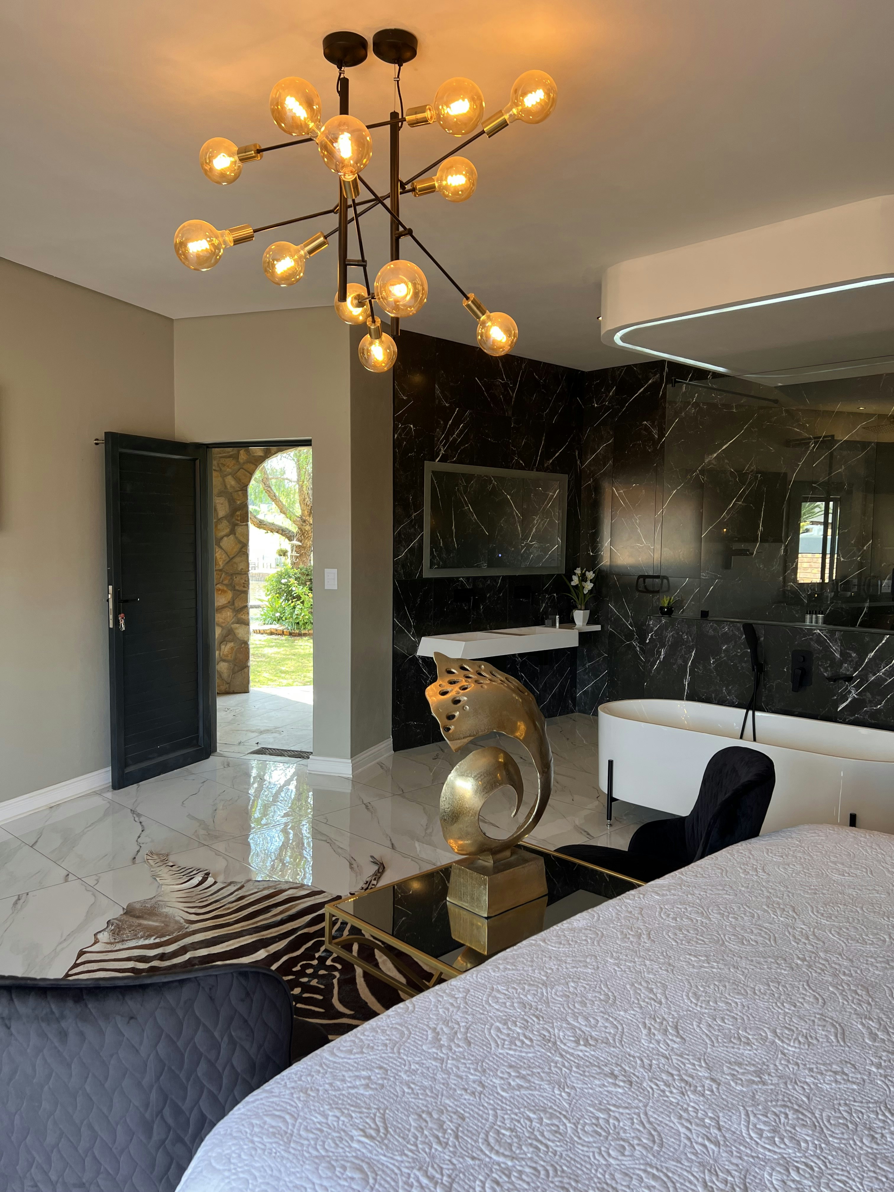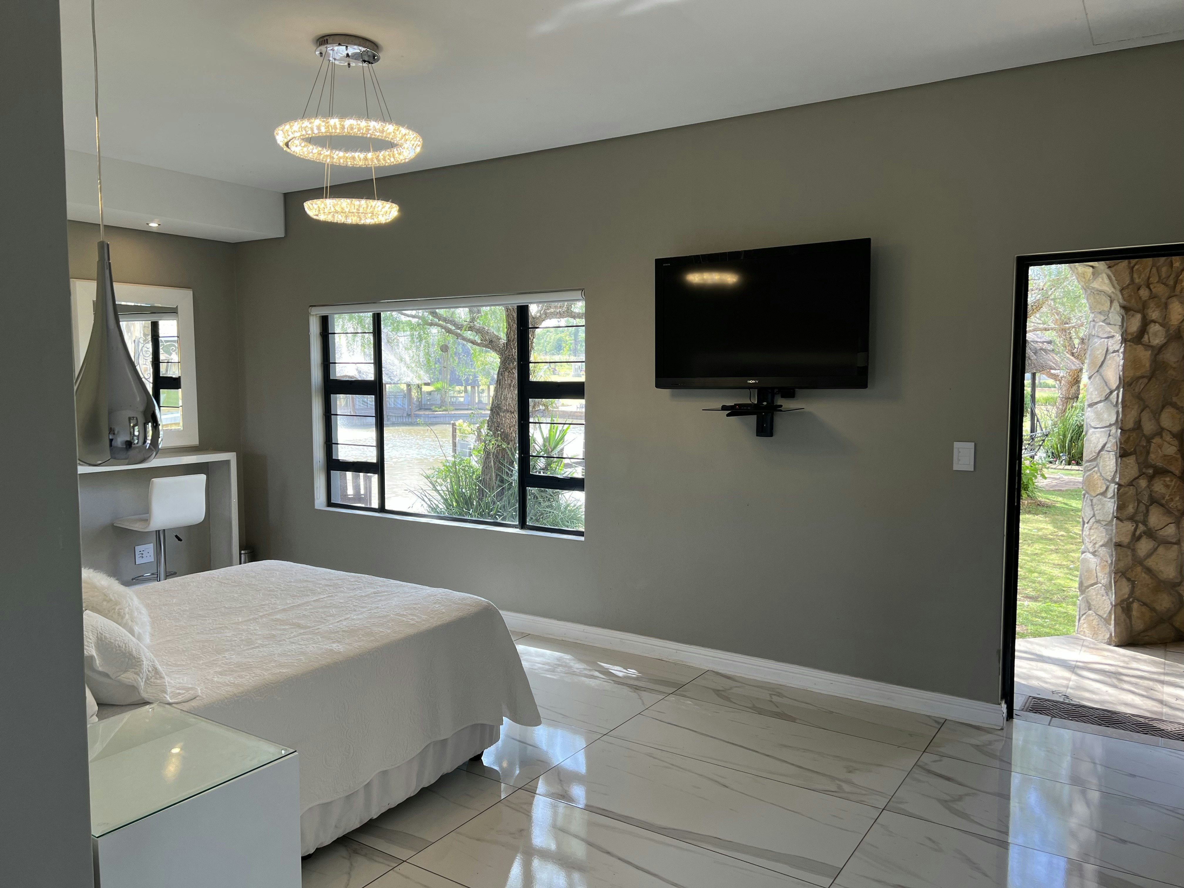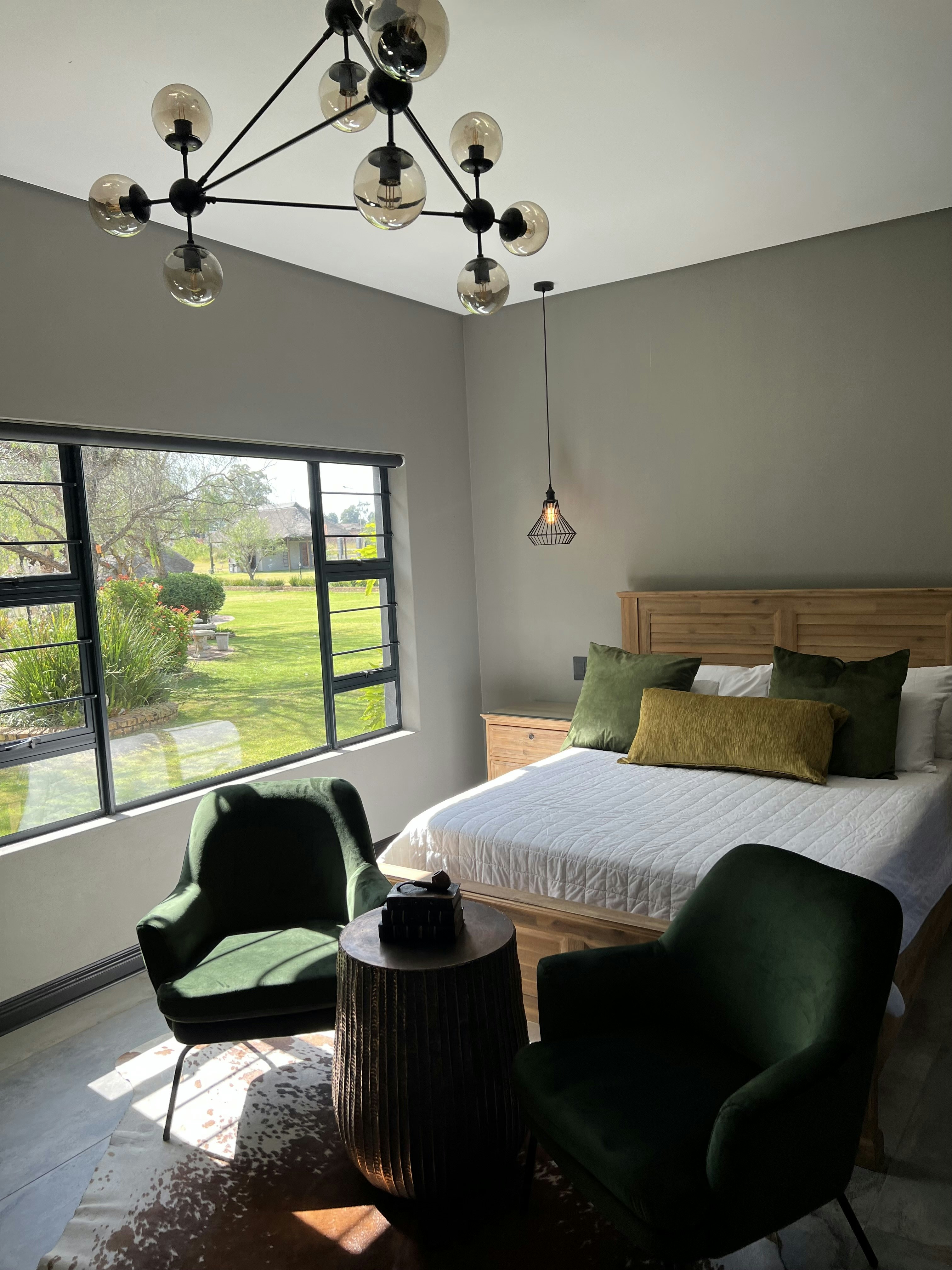 Guests are offered a selection of 3 beautifully appointed suites, each featuring en-suite bathrooms for added convenience. The rooms are tastefully furnished with comfortable beds, soft duvets and crisp linen. Private entrances ensure privacy and ease of access. All rooms are equipped with complimentary amenities such as free Wi-Fi, a TV, microwave, bar fridge, and a tea and coffee tray. Imagine the joy of waking up next to the serene lake, enveloped by the calming sounds of peacocks and exotic ducks.
