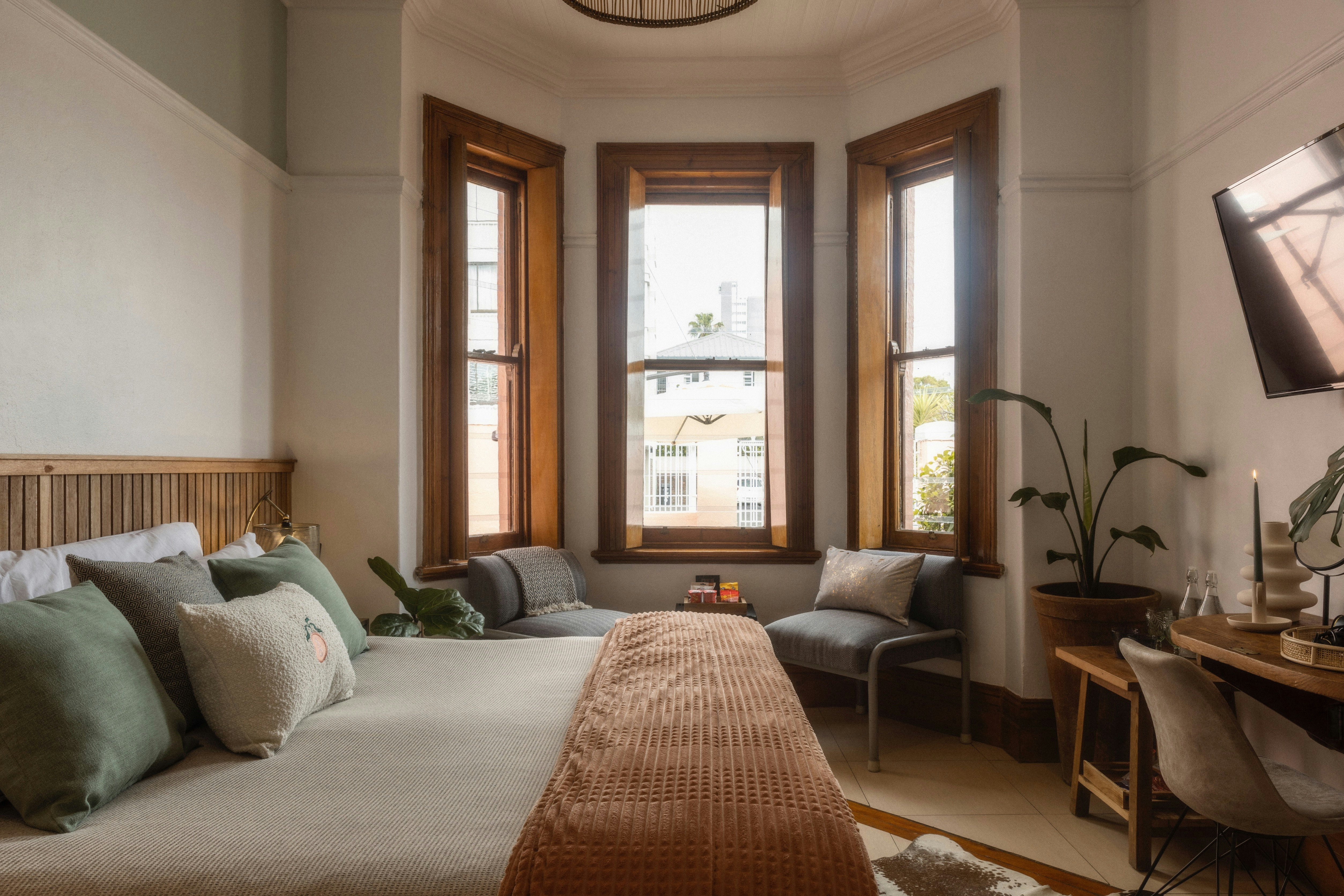 The guest house provides guests access to shared living spaces like a dining area with a fireplace and an outdoor area with a communal swimming pool, a lounging area and a firepit. A laundry service, and airport transfers can be arranged on request. Various local amenities such as bars, cafe’s, shops and restaurants are within close proximity, with Sea Point Promenade being approximately 400 m away. Attractions in the area include the V&A Waterfront, Clifton beaches, DHL Stadium, CTICC, Table Mountain and Lion’s Head.