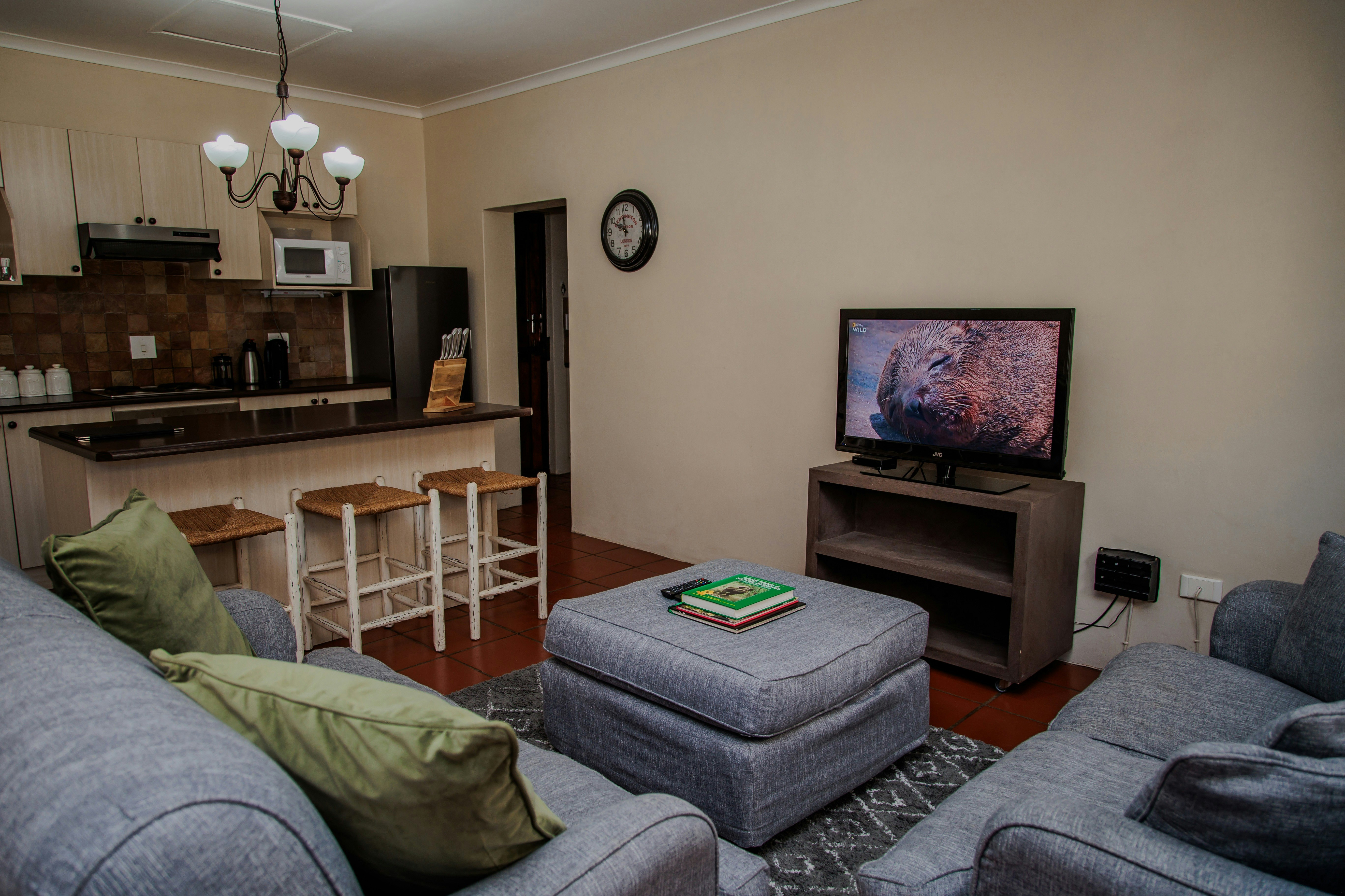 The units features a main living area with a kitchen equipped with a microwave, fridge-freezer, stove , kettle, toaster cutlery and crockery. Leading from the kitchen is a lounge with comfy seating and a TV to enjoy quality time with loved ones. Guests have access to a scullery equipped with a washing machine, iron and iron board within each unit.