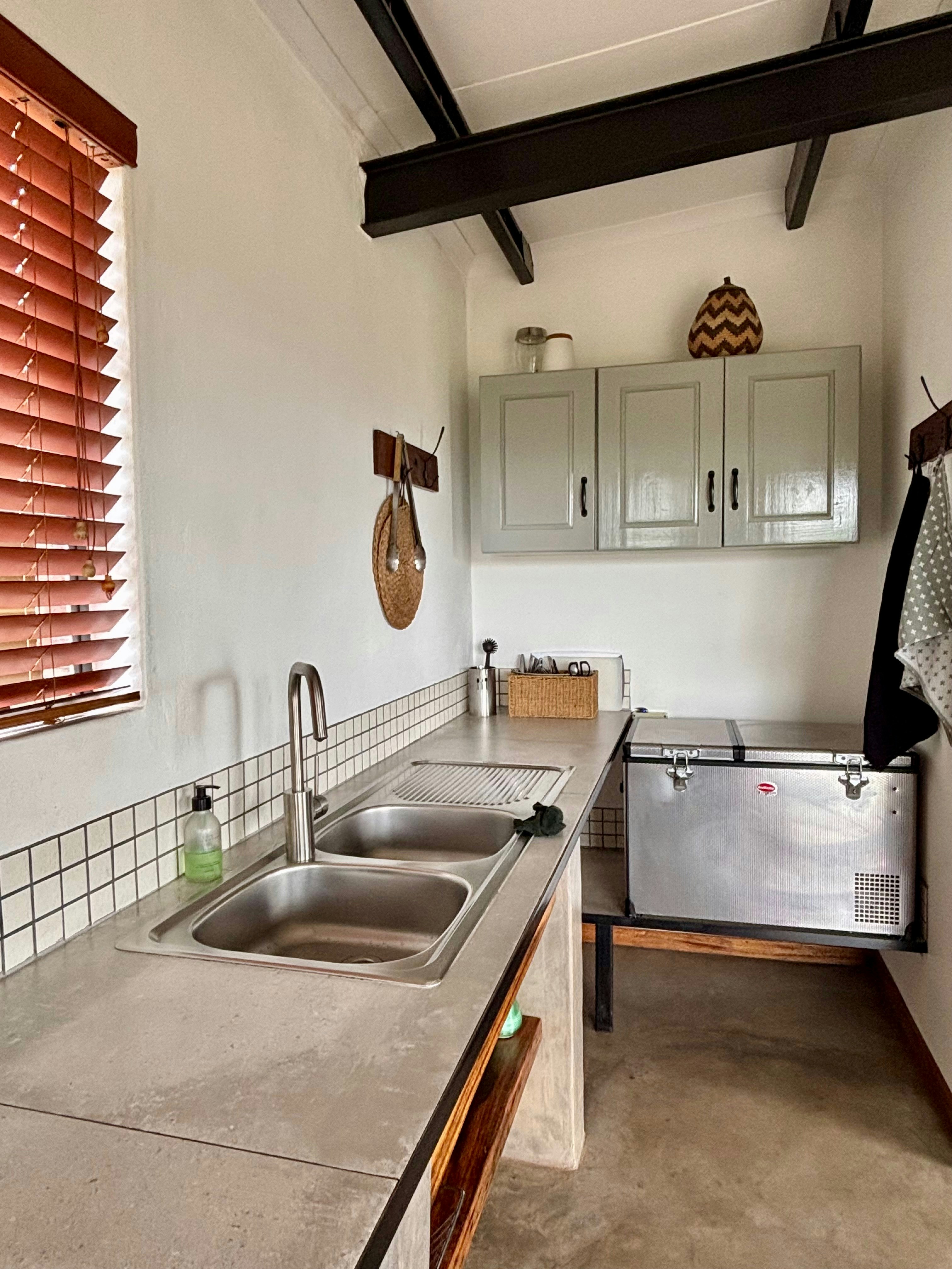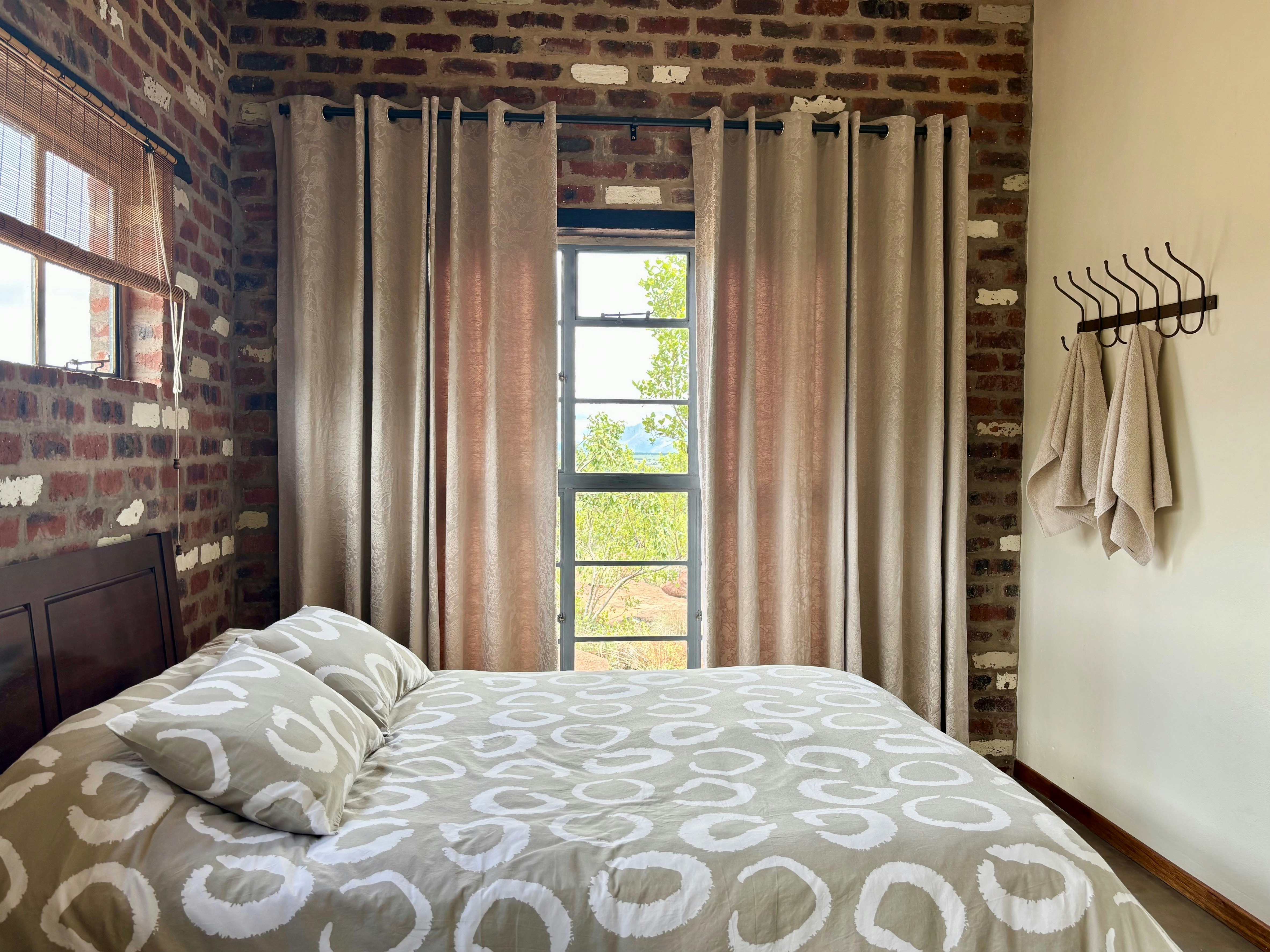 This secluded cottage offers uninterrupted vistas, rugged natural surroundings, breathtaking sunsets, and complete privacy. The unit comprises 1 bedroom, 1 bathroom, and an open-plan kitchen and living area. The bedroom is furnished with an extra-length queen-size bed, as well as a single bed for guests who prefer separate sleeping arrangements. The bathroom is fitted with a basin and toilet, and features a private outdoor shower.